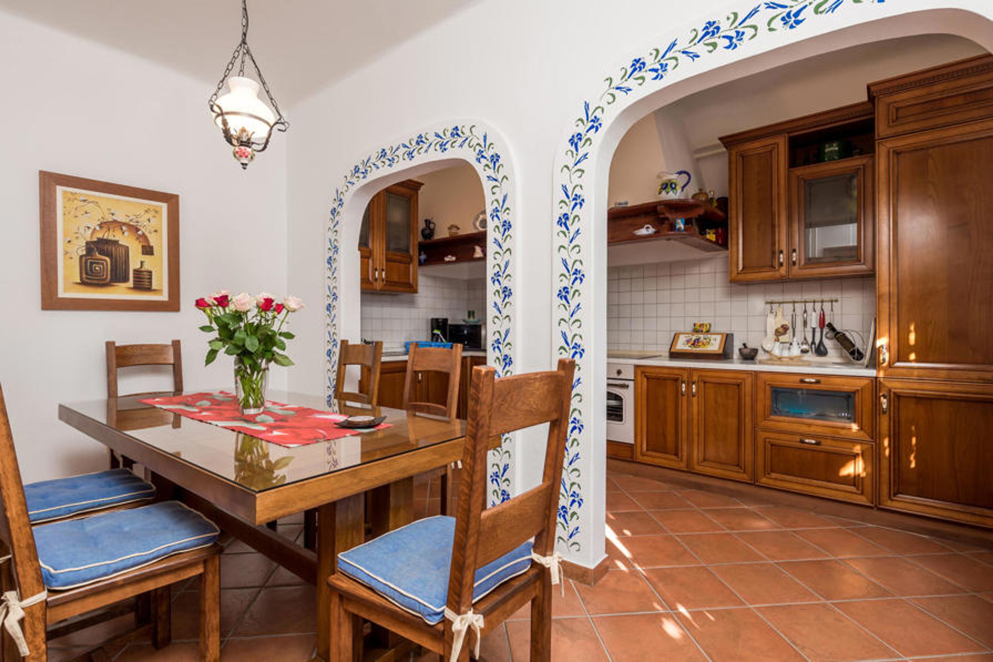 A spacious terrace surrounded by greenery and another covered terrace equipped with a stone barbecue allow you to socialise and enjoy good food during the day with a glass of wine and a unique view.