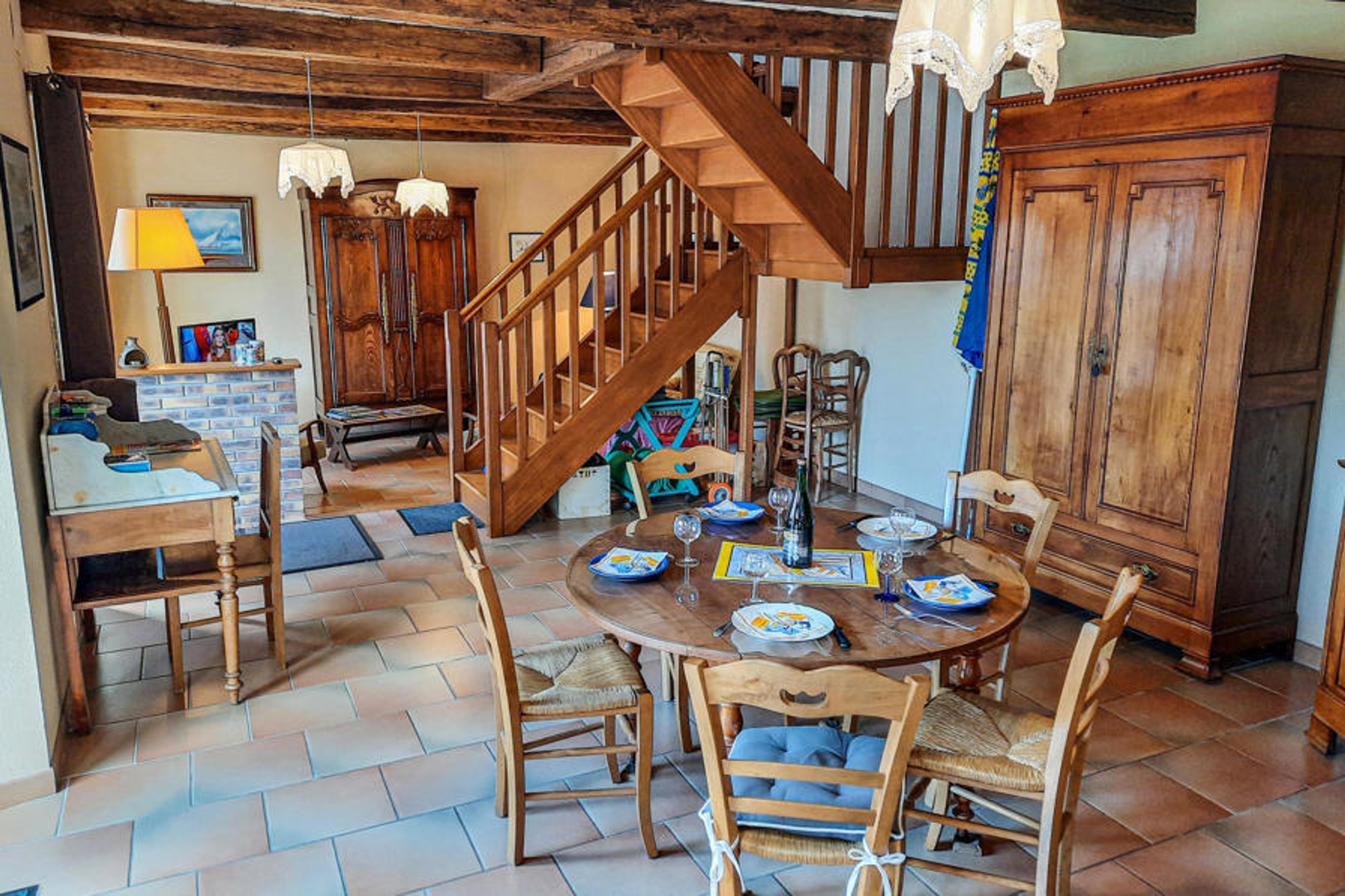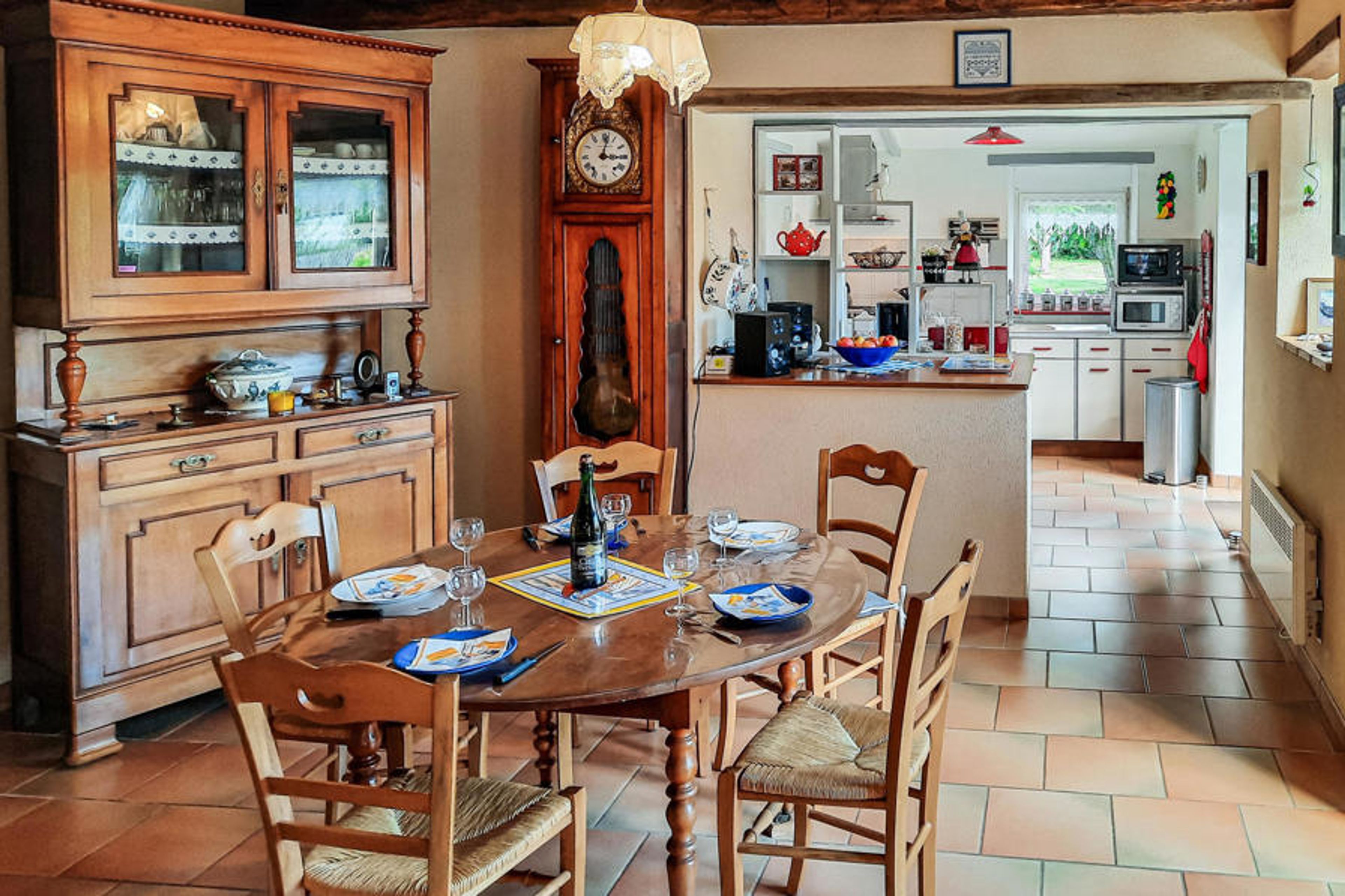 This charming and rustic furnished stone house invites you to a wonderful and relaxing vacation. The beautiful living room is dominated by the exposed beams and old wooden furniture and has a pleasant rural atmosphere. At the dining table you can enjoy dinner together and talk about the experiences and impressions of the day.