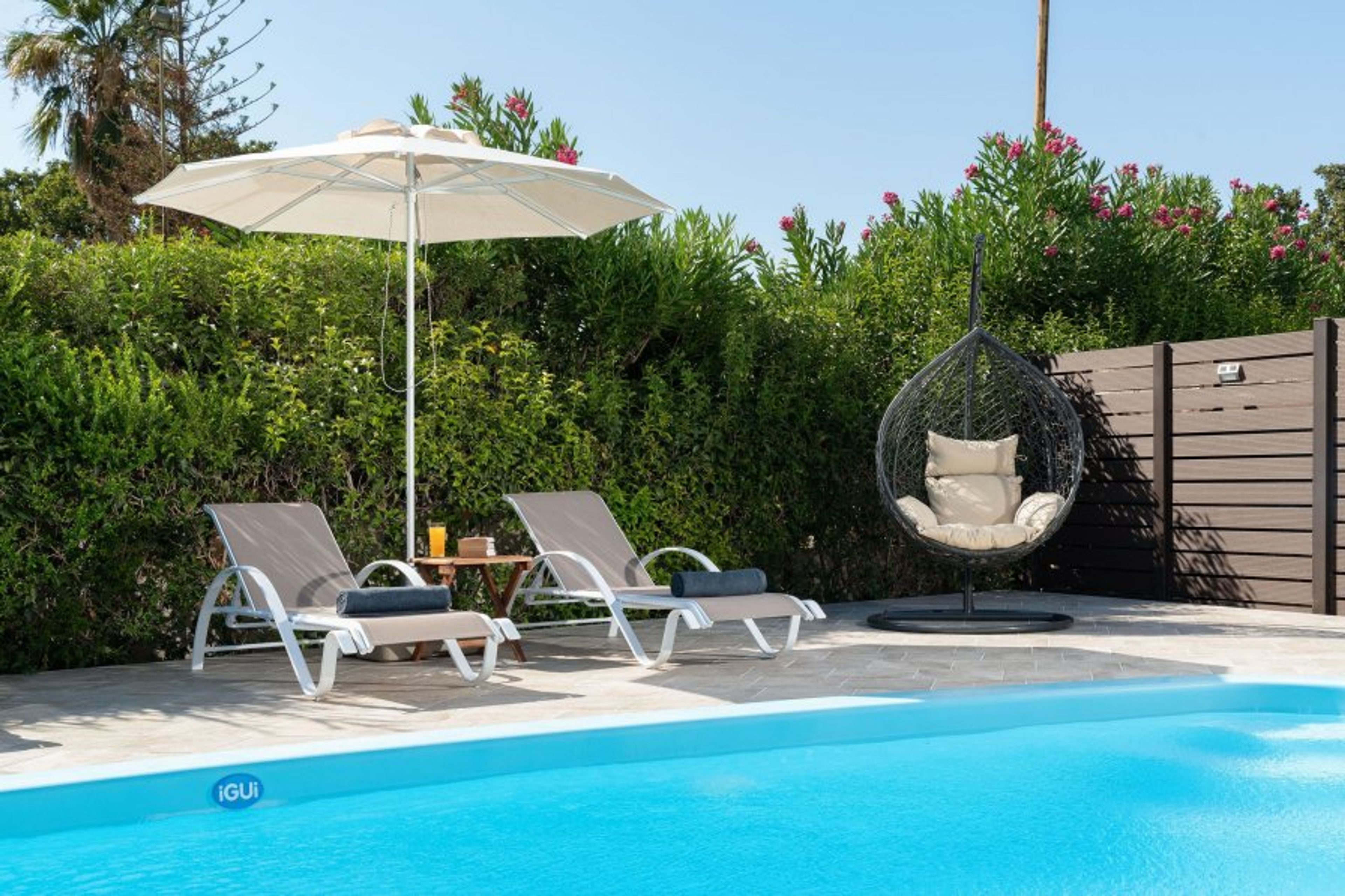 Villa Montefile is set on a beautiful side of Ialysos and offers a wonderful private swimming pool and a heated jacuzzi. Its great advantages are the great location, you’ll find it only a 6-minute drive from the beach as well as its contemporary interior design. As you face the property from the entrance, Villa Montefile is on the left. The airport of Rhodes is found at a driving distance of only 15 minutes. As you face the whole property, villa monte file is the left building. It conveniently accommodates up to 8 guests and offers everything you might need during your holidays in Rhodes!