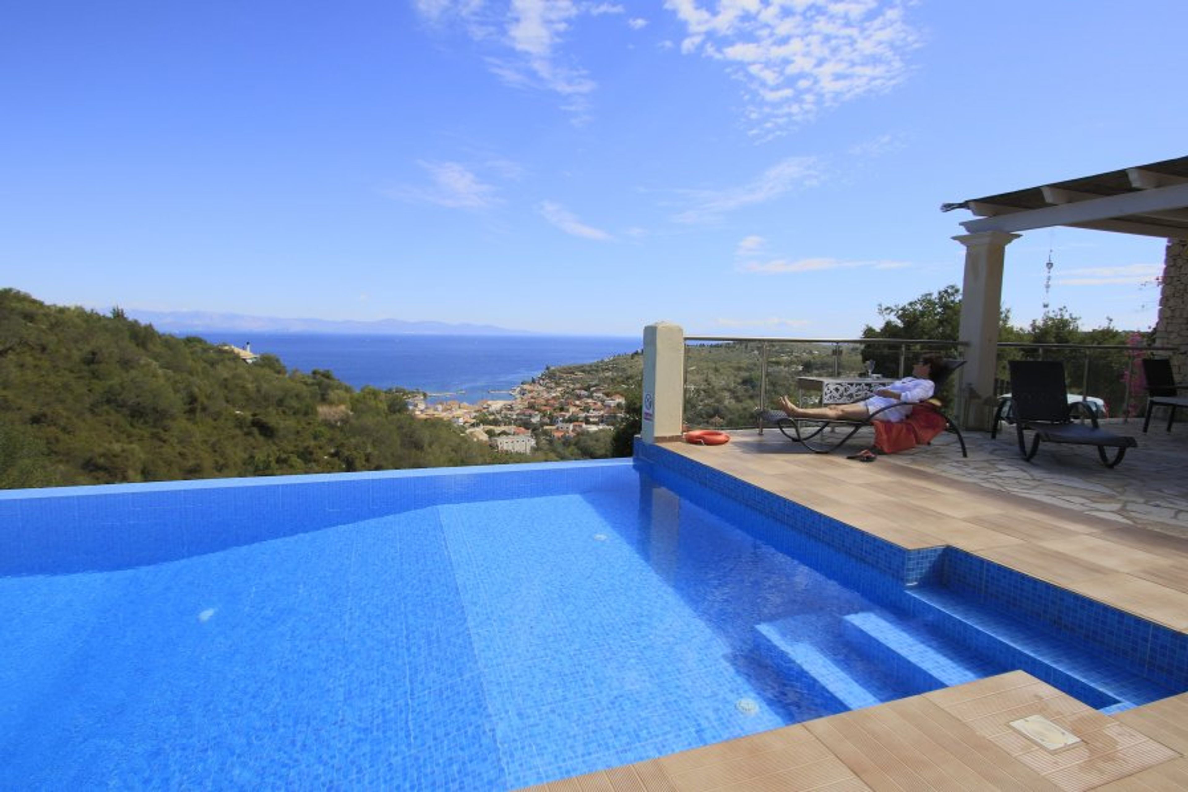 A wonderful stone villa with a breathtaking view, built on a hill just 10 minutes drive from Gaios..With a pool with a waterfall next to the magnificent view gives you the feeling that the pool water with the sea become one..In the big Absolutely private courtyard of the villa, there are cafes for coffee with shade next to the pool as well as a dining table next to the large BBQ.The 6 sunbeds next to the pool, the outdoor shower, as well as various other small furniture and the lighting inside the pool as well as around your yard make a wonderful outdoor space to spend a wonderful day and night ..The interior of the villa is decorated with artistic mood, with large handmade works of art made by the owner teacher of fine arts ..