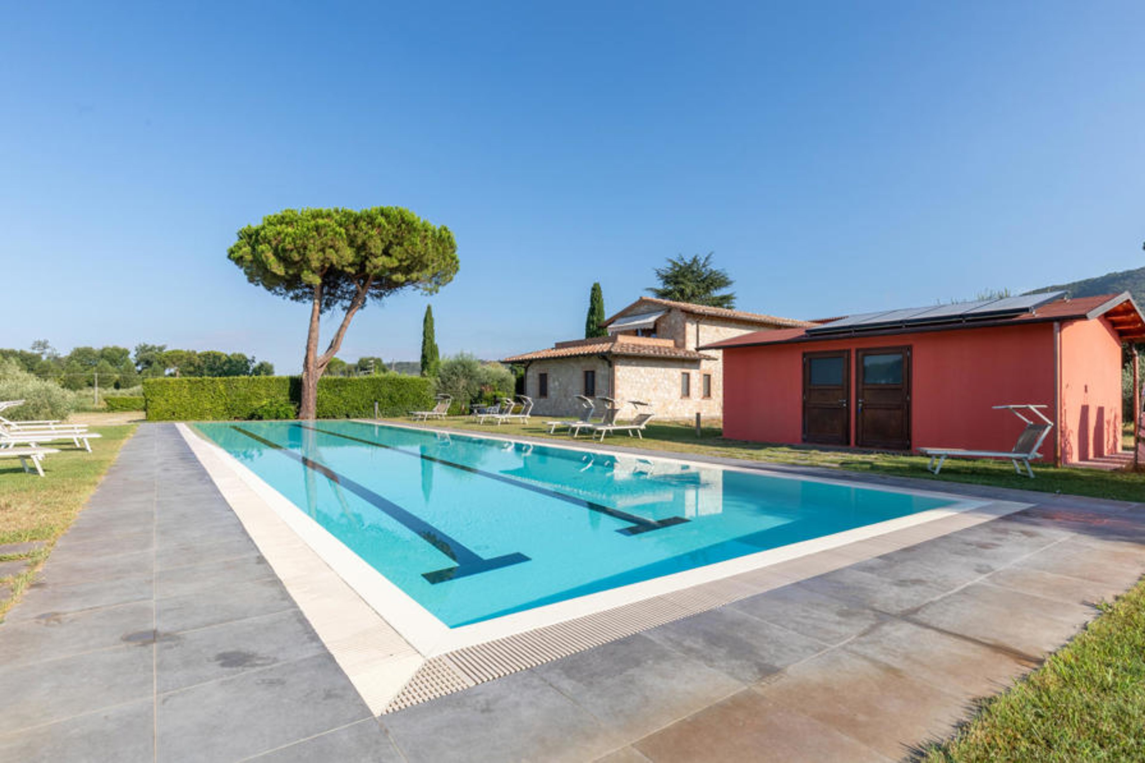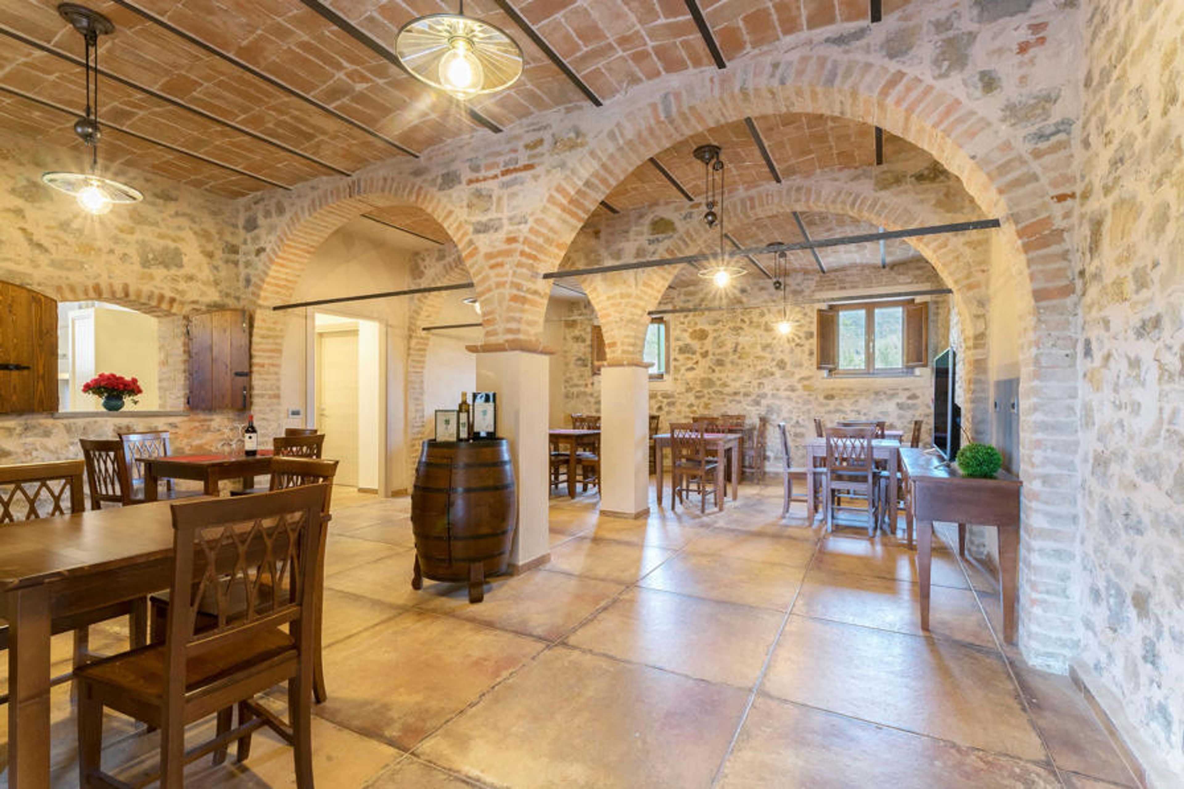 This country house is located in beautiful surroundings on Lake Trasimeno. The house is suitable for several families or a larger group of friends who want to spend their vacation together. The rooms are bright and modernly furnished, some with natural stone walls and vaulted ceilings. Look forward to feeling the charming rural atmosphere.