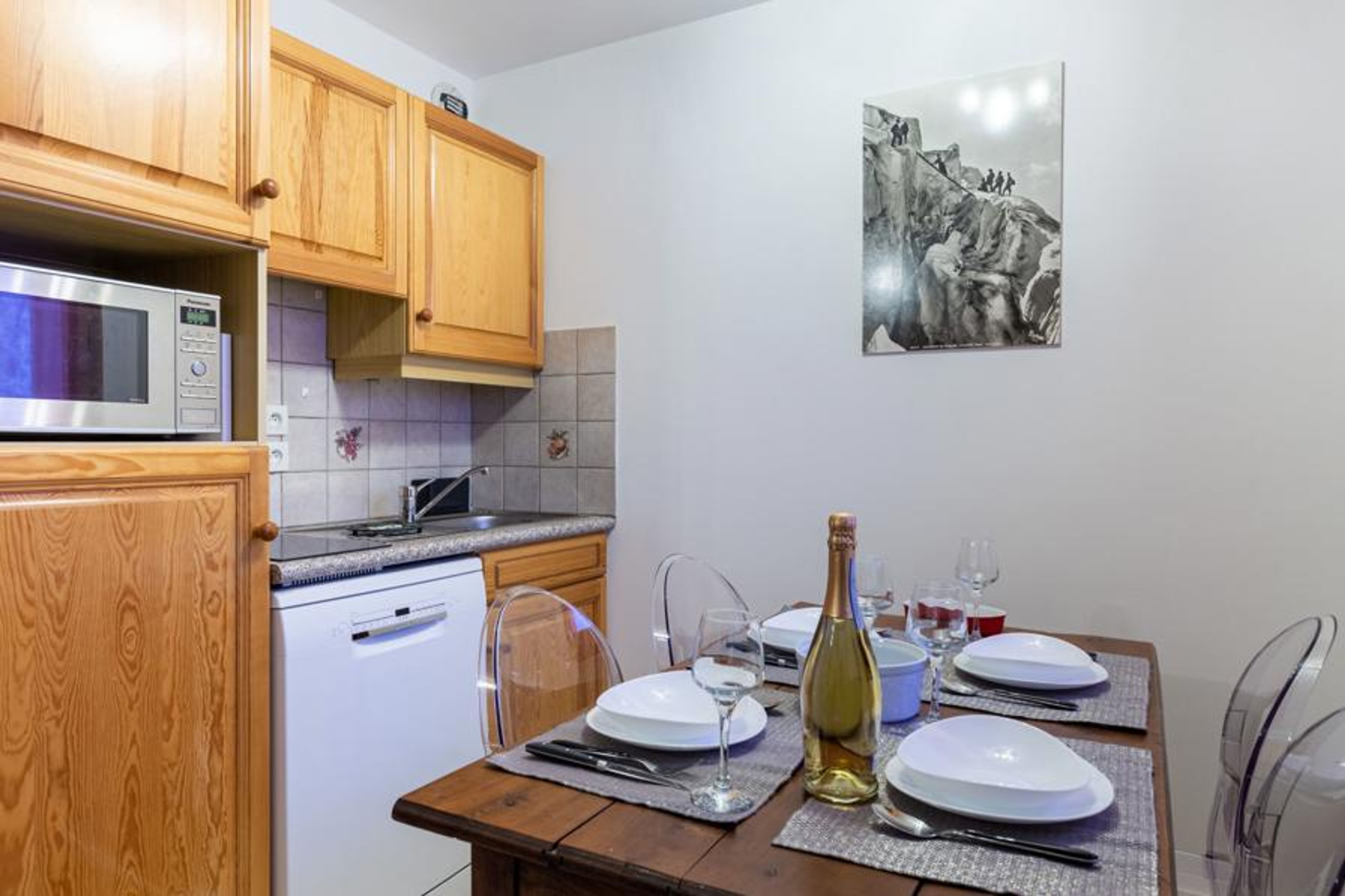 Residence "L'Espace Montagne", 4 storeys. 50 m from the centre. In the complex: lift. Shop 100 m, shopping centre 200 m, restaurant 30 m, bus stop "Place Mont-Blanc" 150 m, railway station "Chamonix Mont-Blanc" 300 m. Golf course (18 hole) 3 km, sports centre 500 m, skisport facilities 900 m, ski bus stop 300 m, ski school 450 m, cross country ski track 500 m. Nearby attractions: Téléphérique de l'Aiguille du Midi 900 m, Train du Montenvers Mer de Glace 400 m. Please note: the photograph shows a typical example. Additional accommodations can be booked.