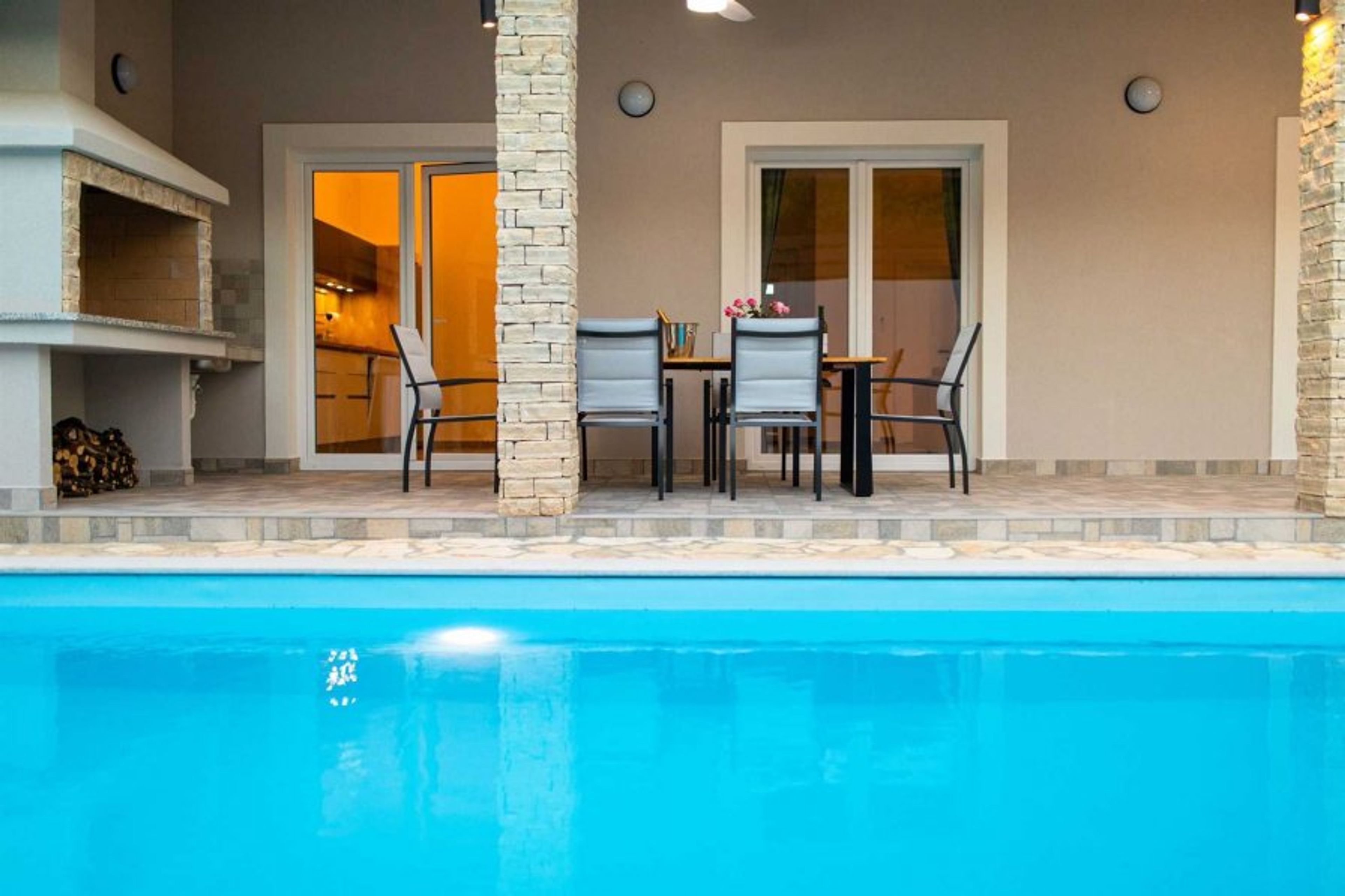 Villa SANDRINA in Vrh for 6 persons spreads over two levels and has three bedrooms and three bathrooms, a fully equipped kitchen with dining area, living area and a covered terrace. A private pool with sun loungers, outdoor shower and construction fireplace for barbecue are at your disposal. Private parking spot is provided. WiFi, air conditioning, SAT-TV included in the rental price.