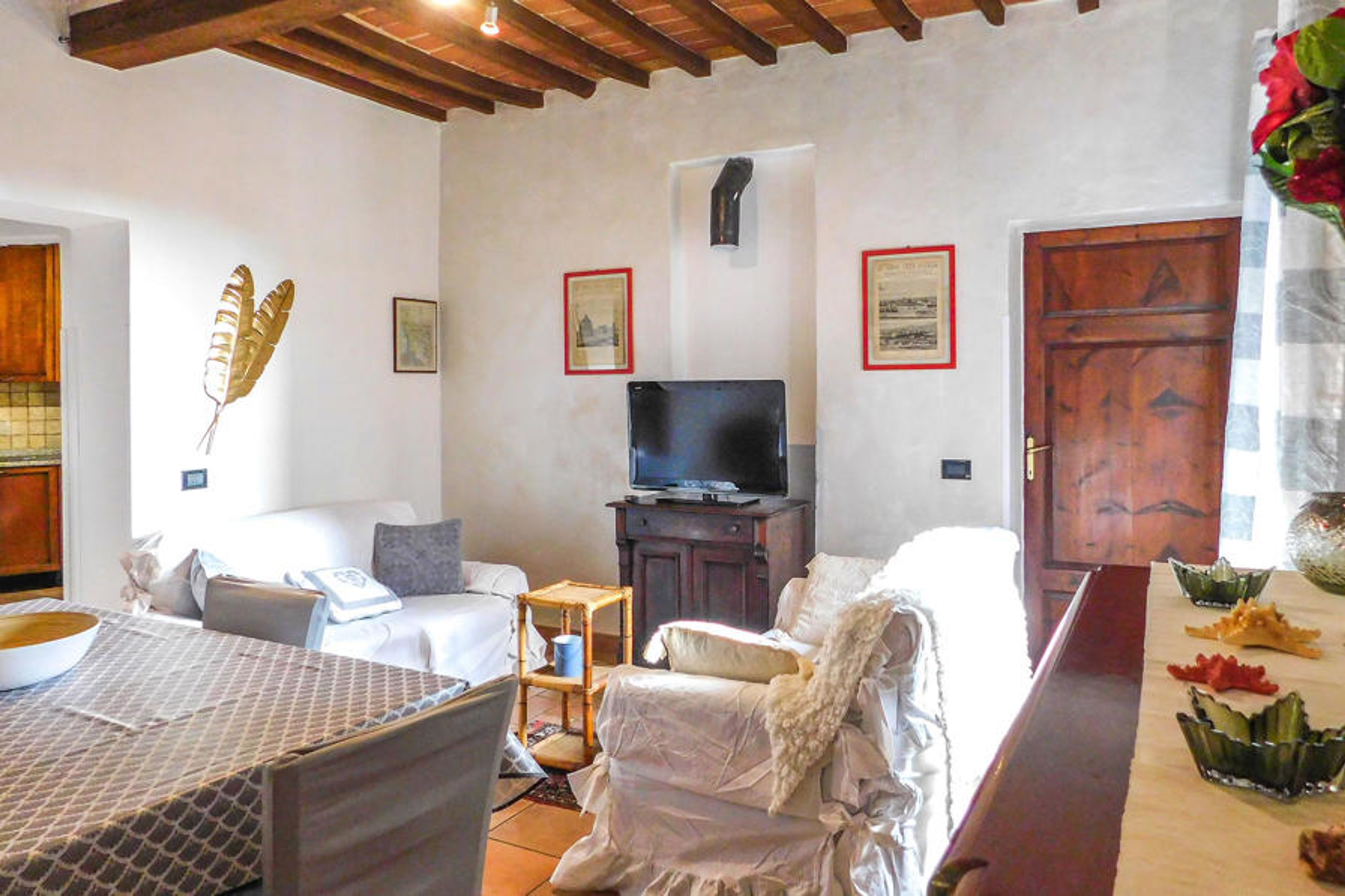 In the old alleys and stone houses you will feel partly as if you were transported to another time. The old Aldobrandesca Castle in the village also adds to the historical atmosphere. From your second-floor balcony, you look out over the rooftops of the town along with the green hills in the background, and fall inspired into a unique vacation mood. In the homely, authentic furnishings of the apartment you will feel right at home.