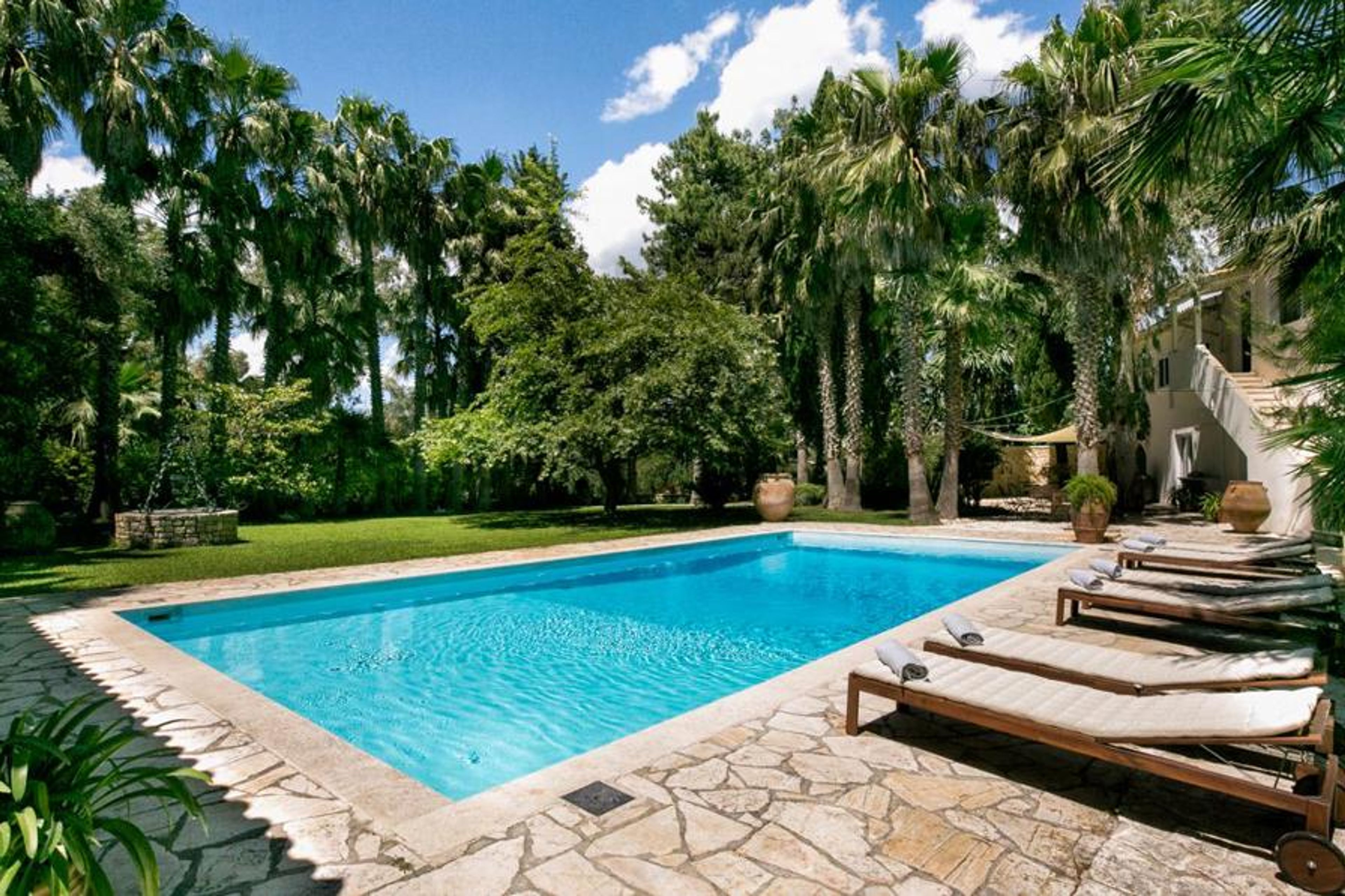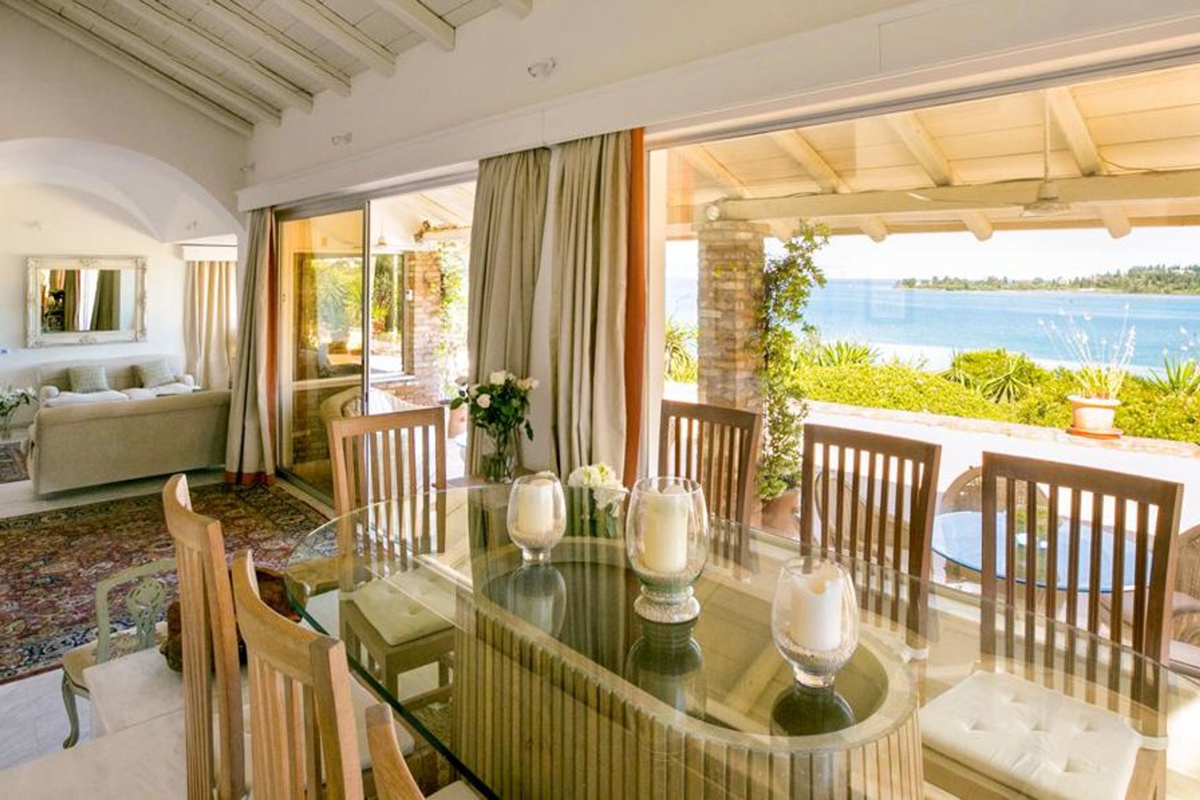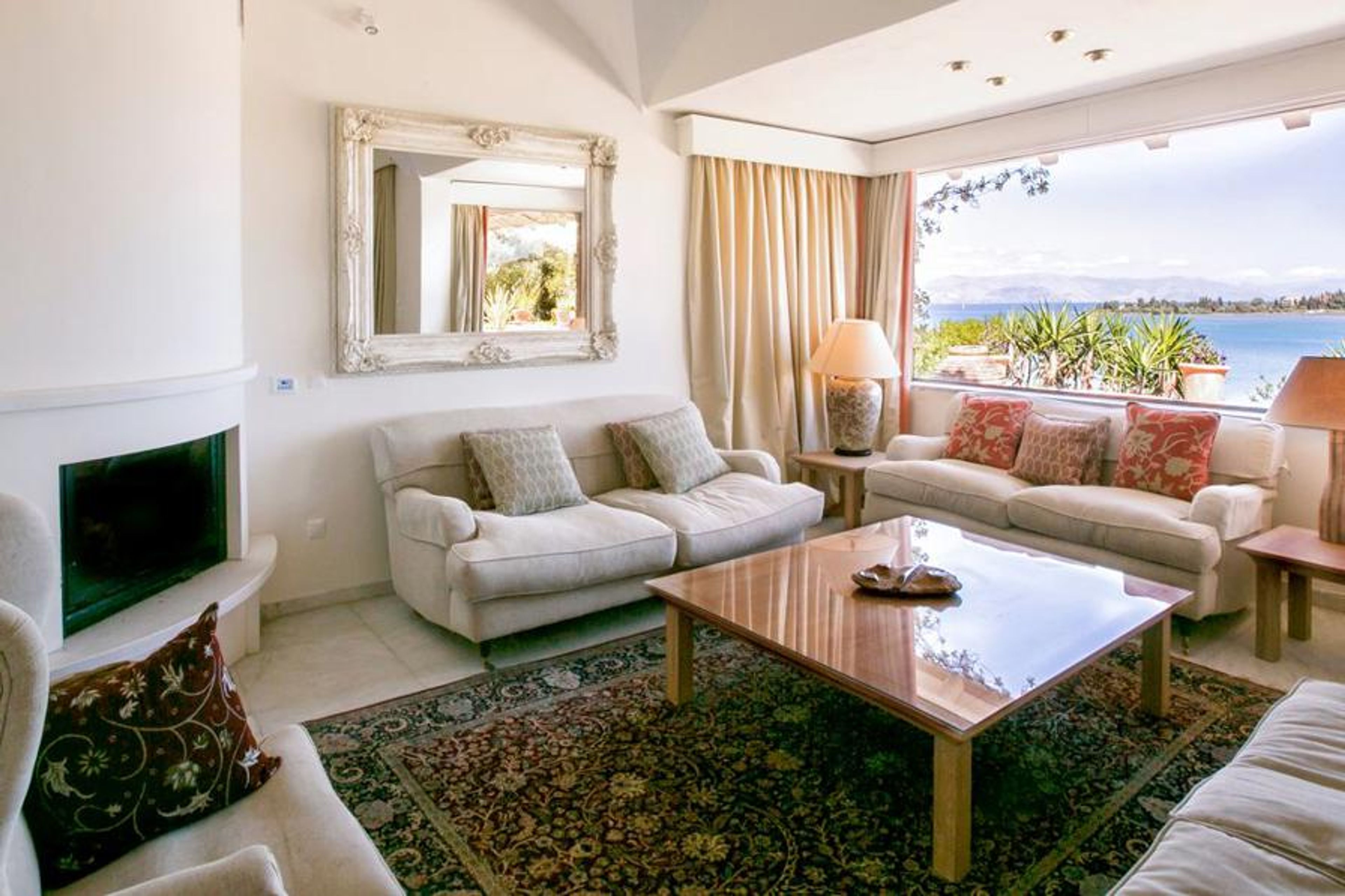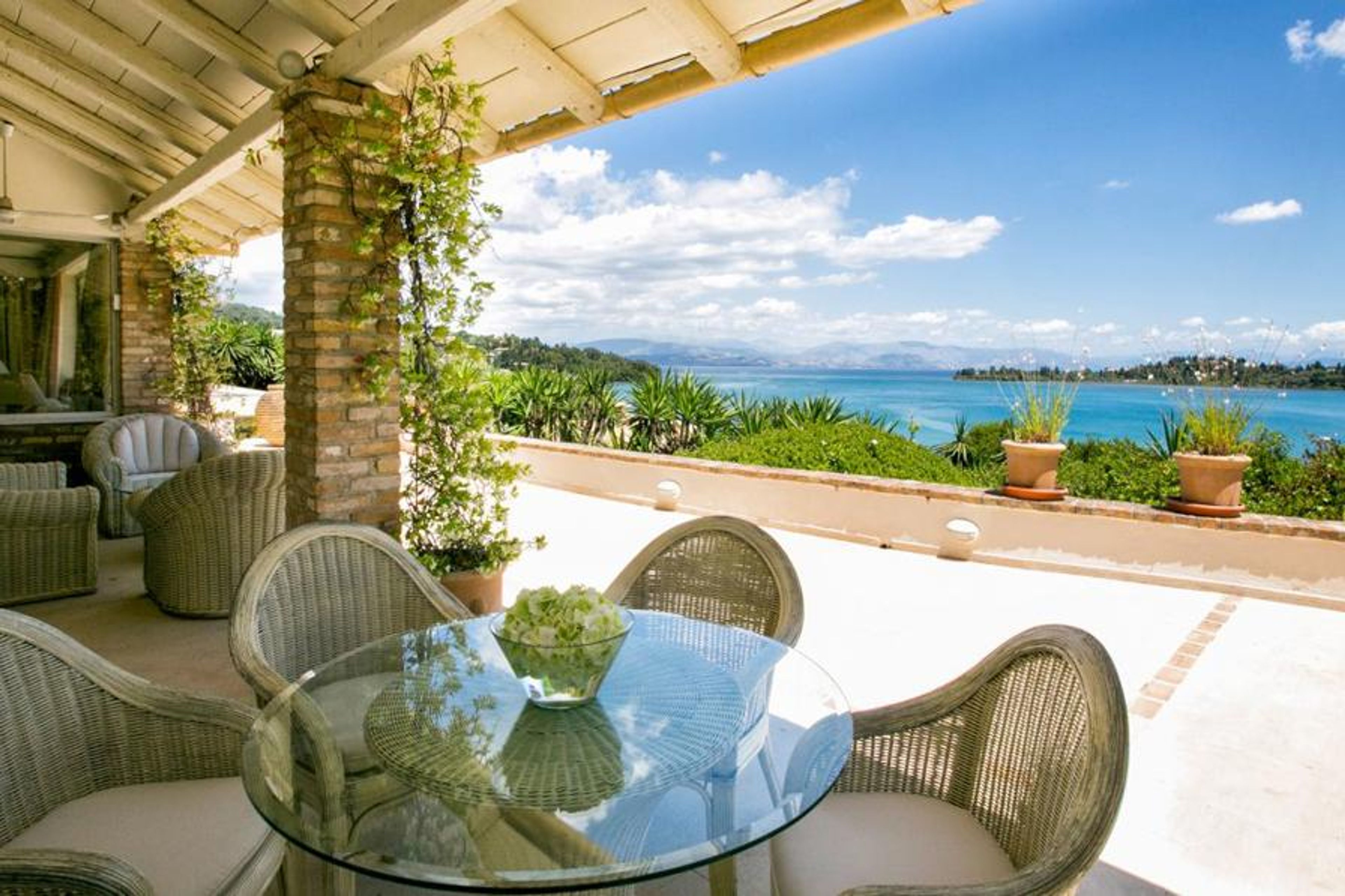 The outside grounds are truly magnificent. The gorgeous large swimming pool is surrounded by beautiful plants as well as deluxe loungers. The stone gazebo alongside the pool adds so much character, a good spot to sit and plan the day’s adventures. The front terrace is the ideal place for evening drinks and looking out to the bay.Corfu is one of the most beautiful, lush green islands of Greece. With countless beaches, stunning scenery stretching from the crystal clear dazzling sea to the mountains, it is a dream destination. Together with fantastic cuisine, excellent shopping and a historic main town brimming with Venetian architecture and charm, it has something for everyone.