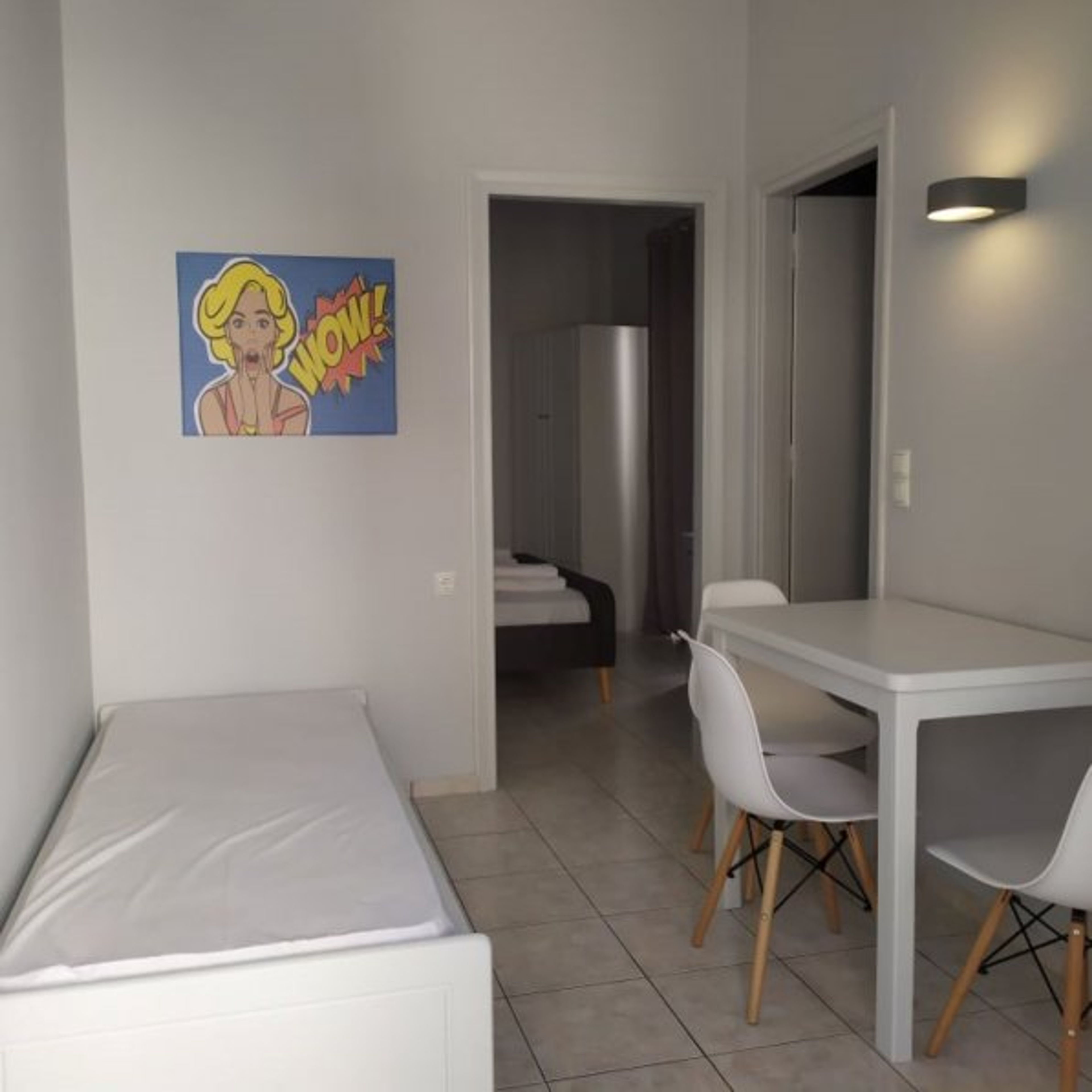 Apartment nu 7 consists of a kitchenette with a single bed, a bedroom with double bed (160*200) and a bathroom with shower. There is an AC in the bedroom along with a safe and a closet. The apartment offers a balcony with pool view.