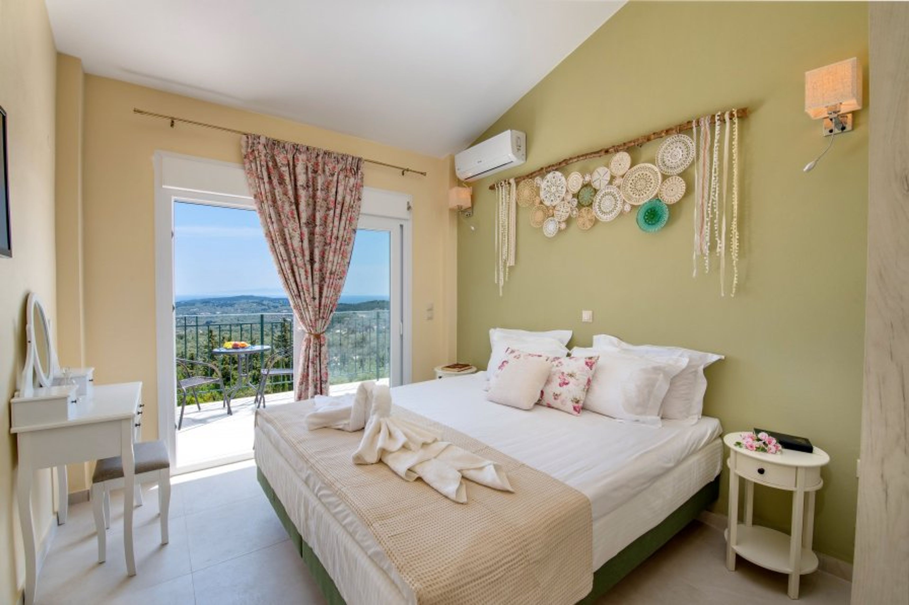 .From our balcony you can gaze the South part of Corfu, Lefkada, Epirus and when the weather is good Keflaonia.Our king beds (cocomat brand) with extra upper mattresses and fantastic pillows will provide you an unforgettable sleeping experience in our air conditioned bedrooms.Fully equipped kitchen (even with a pop corn machine) is waiting for you to create heavenly made dishes and enjoy them in our dining room inside or outside.