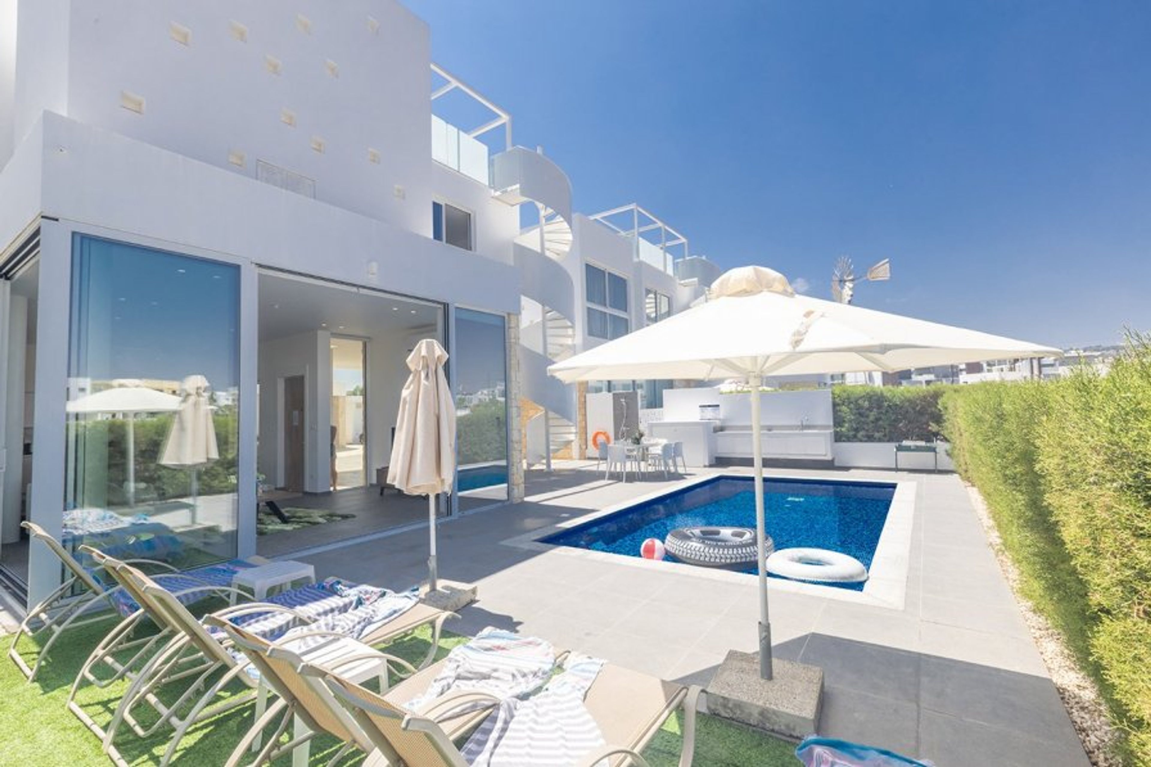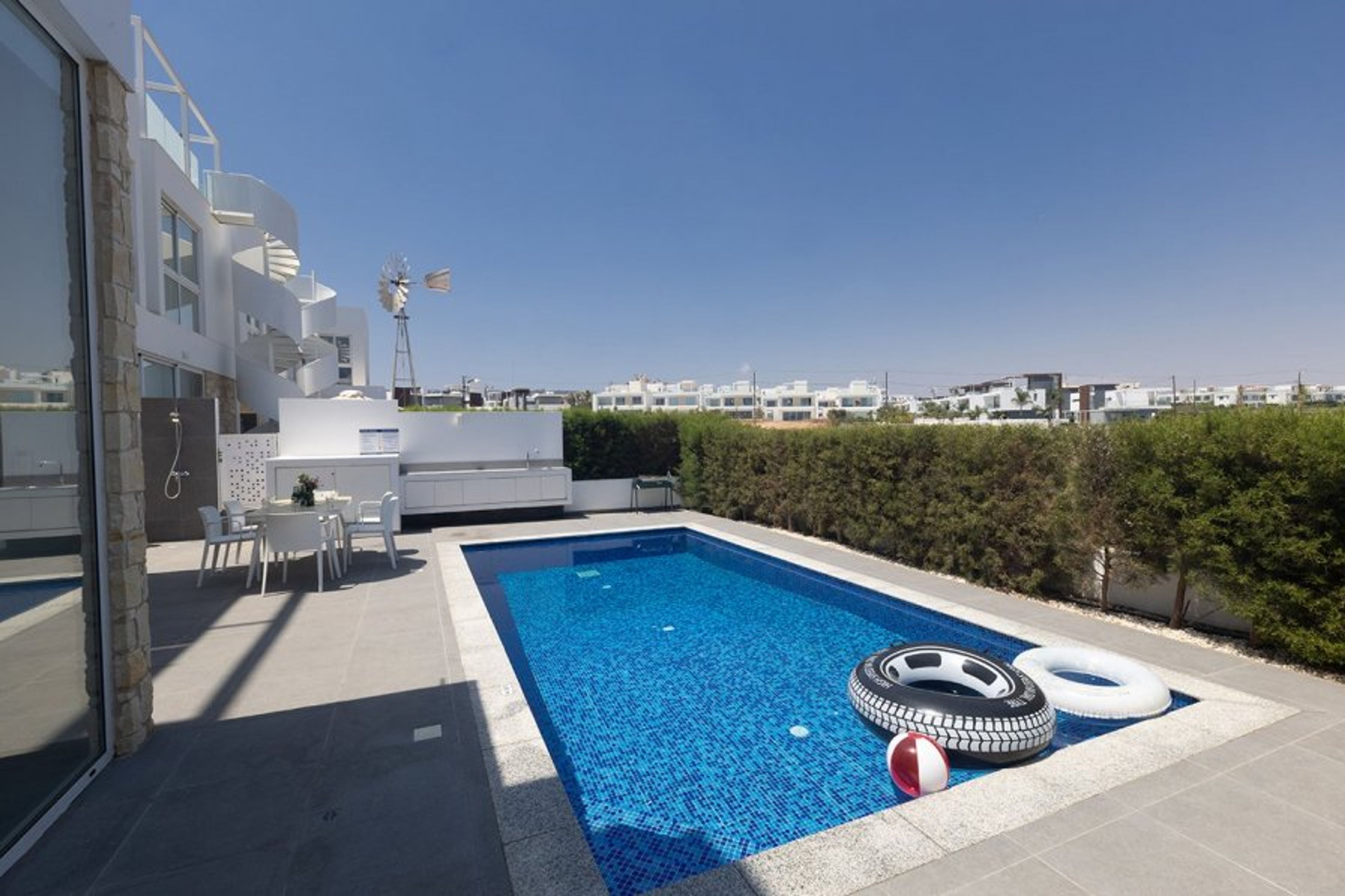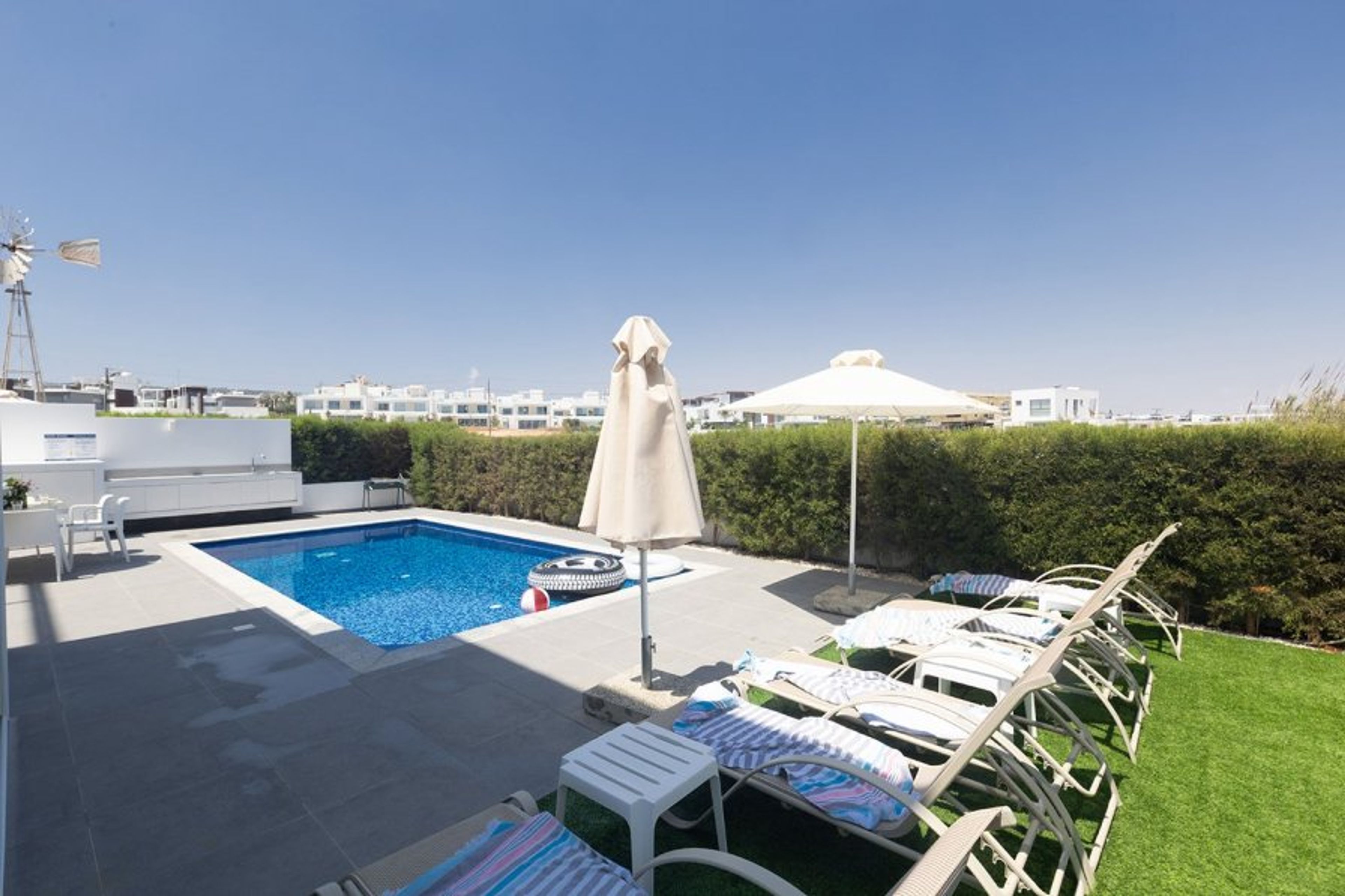Close Beach 10/10 - Facilities 9/10 - Sea Views 9/10 - Imagine Rating 9/10 - Overall 9/10. This new 3 Bedroom villa is located in Protaras center.