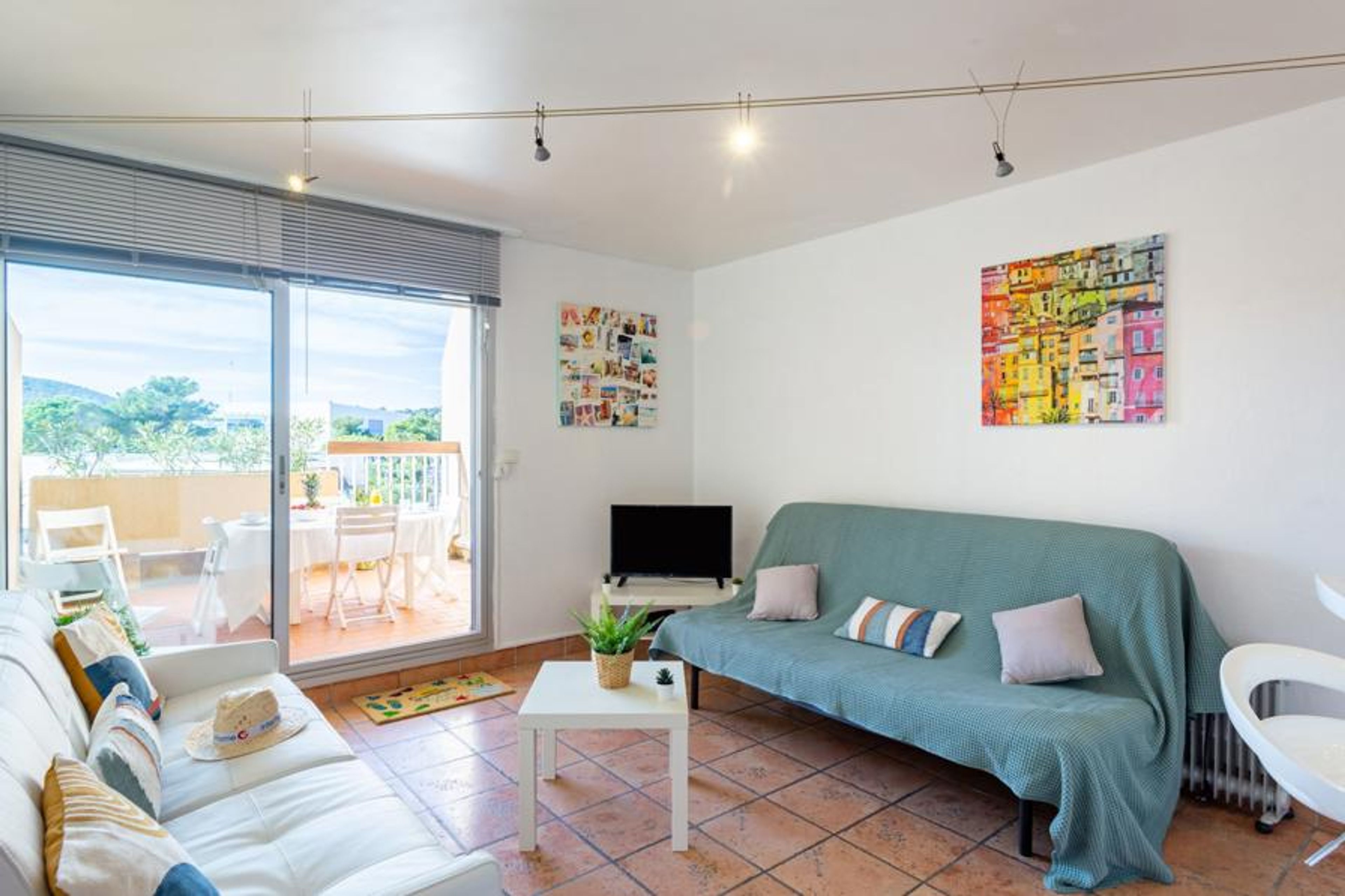 2-room apartment 40 m2 on 1st floor. Bright, comfortable furnishings: living room with 1 double sofabed (160 cm, length 190 cm), TV (flat screen). Exit to the terrace. 1 room with 1 french bed (160 cm, length 200 cm). Exit to the balcony. Open kitchen (oven, dishwasher, 4 induction hot plates, toaster, kettle, electric coffee machine). Shower/WC, hydro massage shower. Electric heating, air-conditioning, boiler (200 litres). Terrace 20 m2, south-west facing position. View of the port. Facilities: washing machine, iron, hair dryer. Internet (WiFi, free). Please note: non-smokers only, no parking. TV only FR. Smoke alarm, no lift. 830190010310R