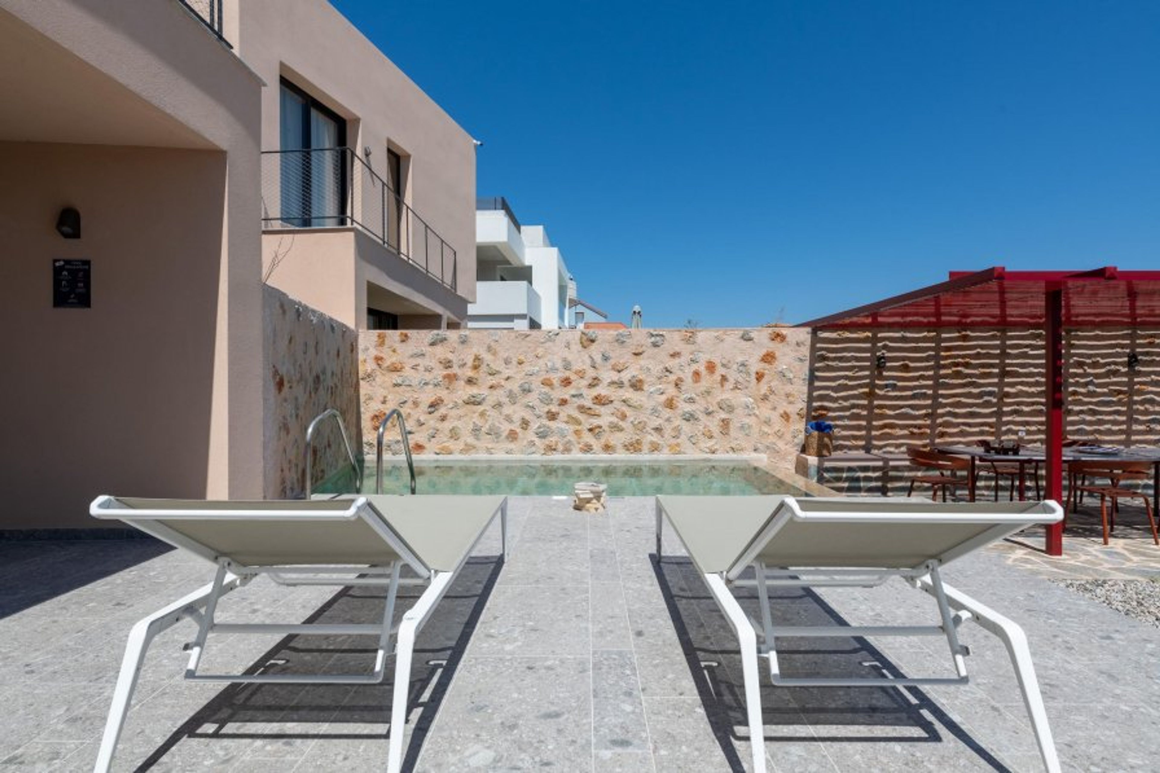 Rhodes hosts up to 7 guests. On the first floor, it has 2 beautiful airconditioned bedrooms with a double bed in a unique decoration. One of these bedrooms has a bathroom with a shower. Also, there is a bedroom with a single bed. Also, there is another bathroom with a shower and a WC. On the ground floor there is an open plan fully equipped kitchen, suitable for any meal preparation accompanied by the seating area and the living room. In the same area, there is a double bed. There’s a smart TV and free WIFI access throughout the property. Outdoors, there’s a private swimming pool with sunbeds, a pergola and a seating area where you can relax under the rays of the Aegean sun. You can spend your time by your private swimming pool or enjoy a fresh meal prepared in the sharing BBQ installation and the wood oven. Also, there is a sharing outdoor seating area. In the basement, all of the boutiques except for Chalki have leading stairs and doors to the parking area. You can lock your door throughout your stay.Also in the basement you will find sharing washing machines. This amazing property and the beautiful location make the perfect match for a memorable stay and unforgettable holidays in Rhodes!