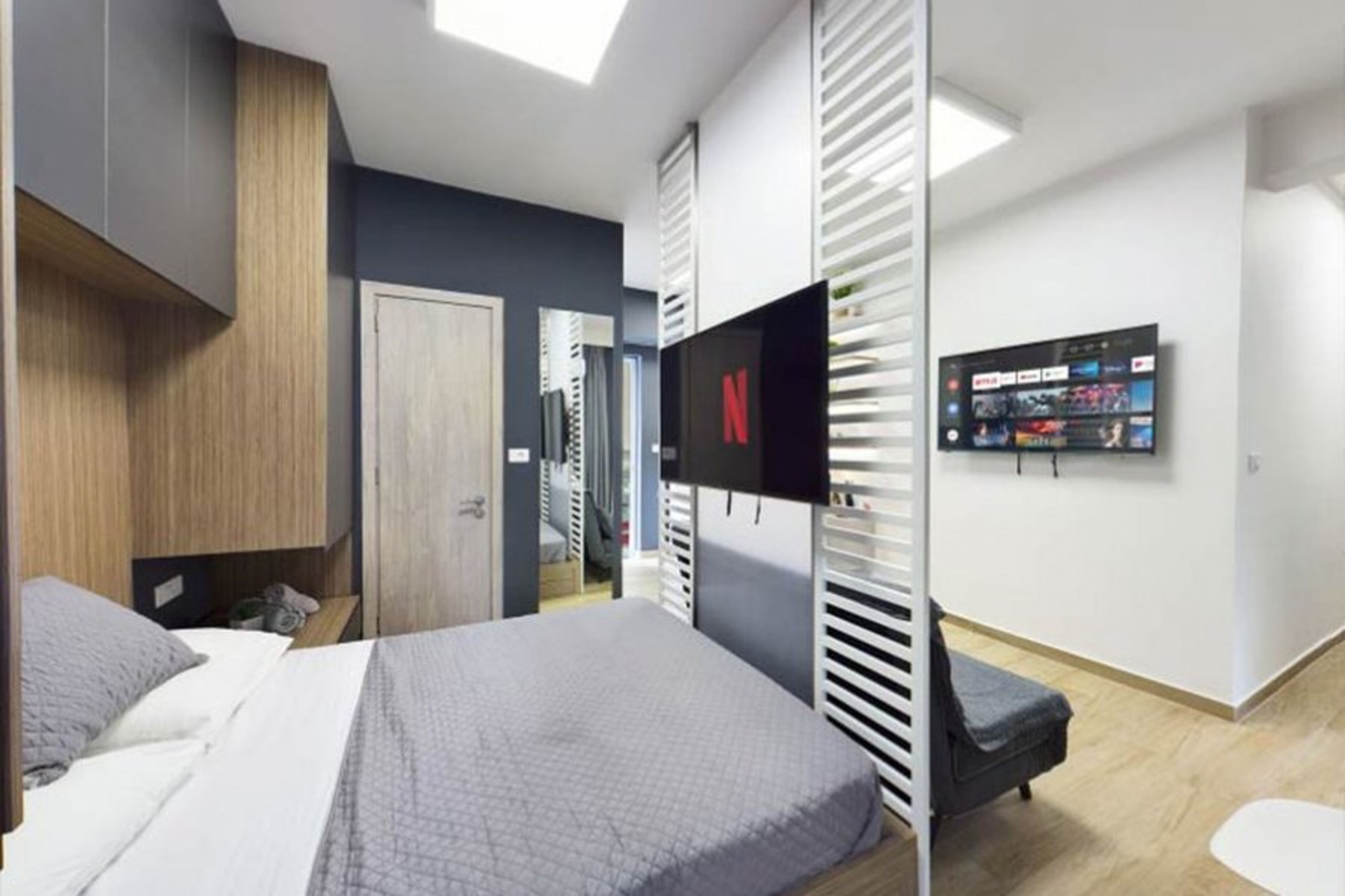 Air conditioning, 300gbps wi-fi internet, and balconies on two sides of the apartment are available.