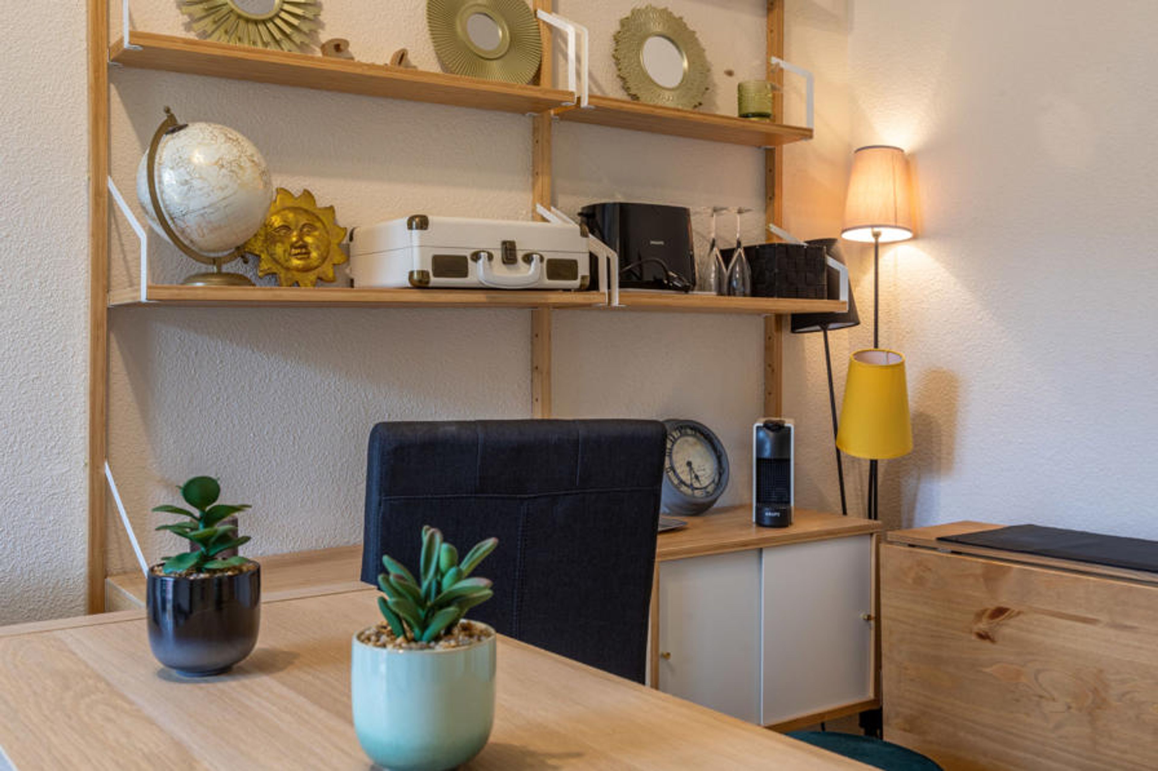 2-room apartment 21 m2 on 1st floor, east facing position. Living/dining room with TV (flat screen). Exit to the balcony. 1 room with 1 french bed (1 x 140 cm, length 190 cm). Kitchenette (2 hot plates, toaster, microwave, electric coffee machine, Capsules for coffee machine (KRUPS) extra). Shower/WC. Electric heating. Small balcony 5 m2. Balcony furniture. Side view of the sea. Facilities: iron. Internet (WiFi, extra). Please note: smoke alarm.