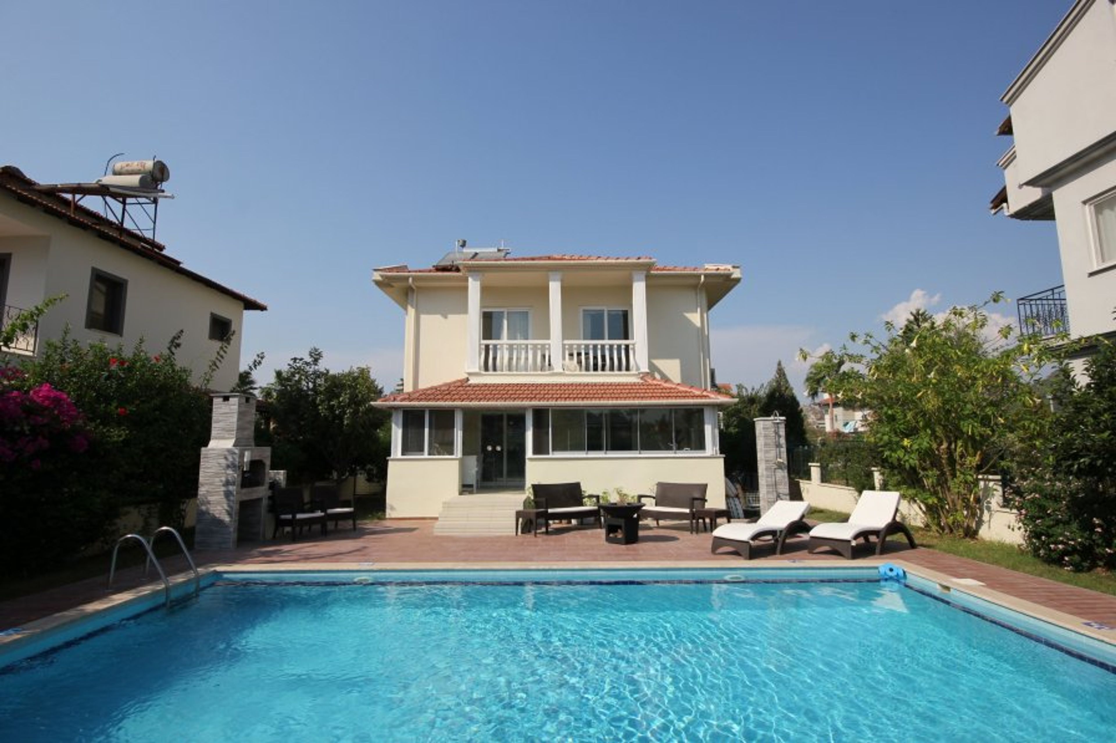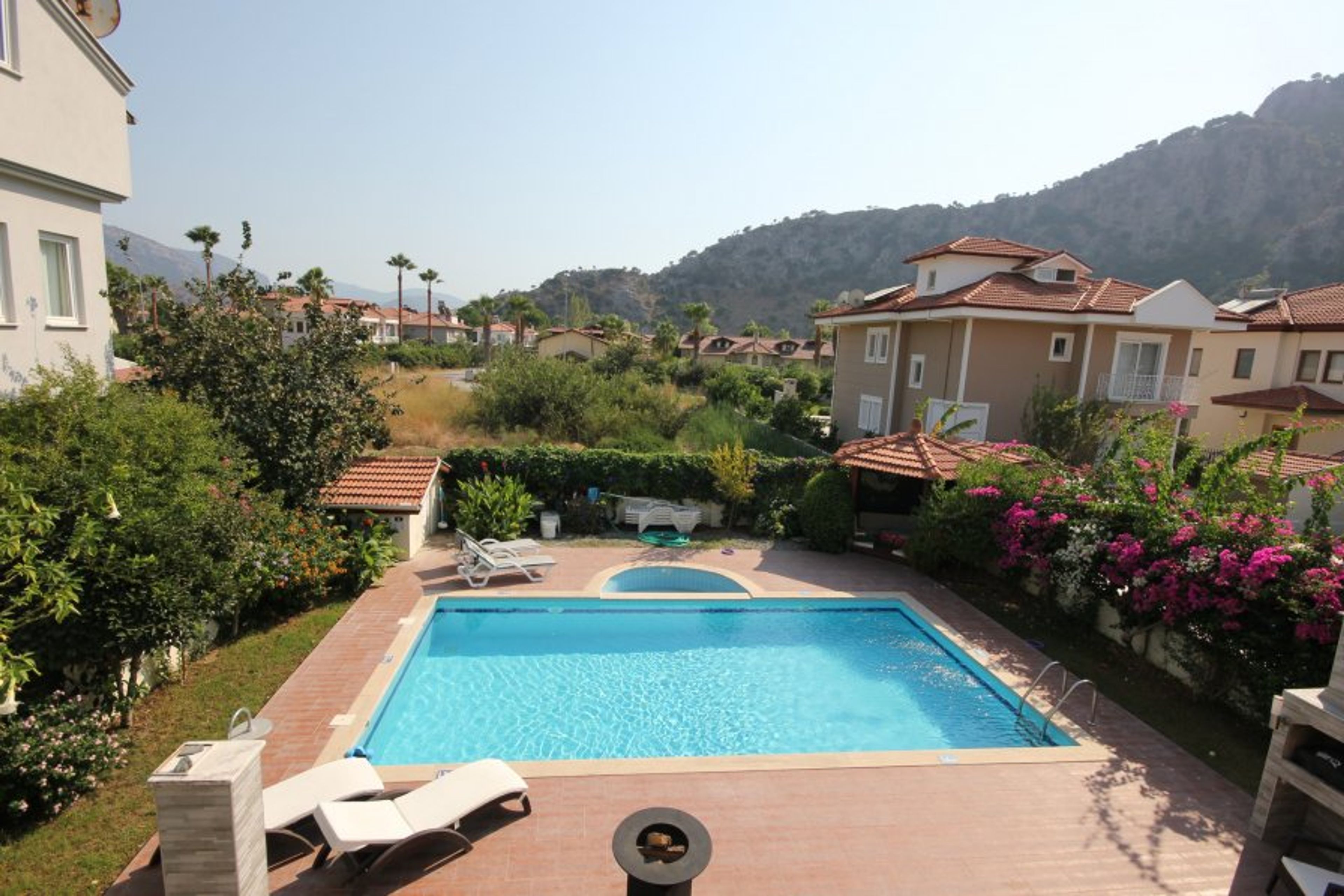 Going outside on the ample terrace provides the opportunity for alfresco dining, with seating for 10. The terrace overlooks the 45m sq pool, which has an oval children's splash pool alongside. A classic Turkish garden “Kosk” awaits your use for relaxing out of the sun. There are 10 poolside sunloungers for you, with sunshades and tables. If you want to freshen up before or after your dip, there is a poolside shower. A purpose built garden BBQ area is available for your use. As well as the grill, there is a food preparation area together with BBQ utensils, these are found in the kitchen. The gardens and pool are maintained throughout your stay to ensure your pleasure and comfort. Both areas get lots of sun. We provide large beach towels for outside use, these are in addition to the house linen.