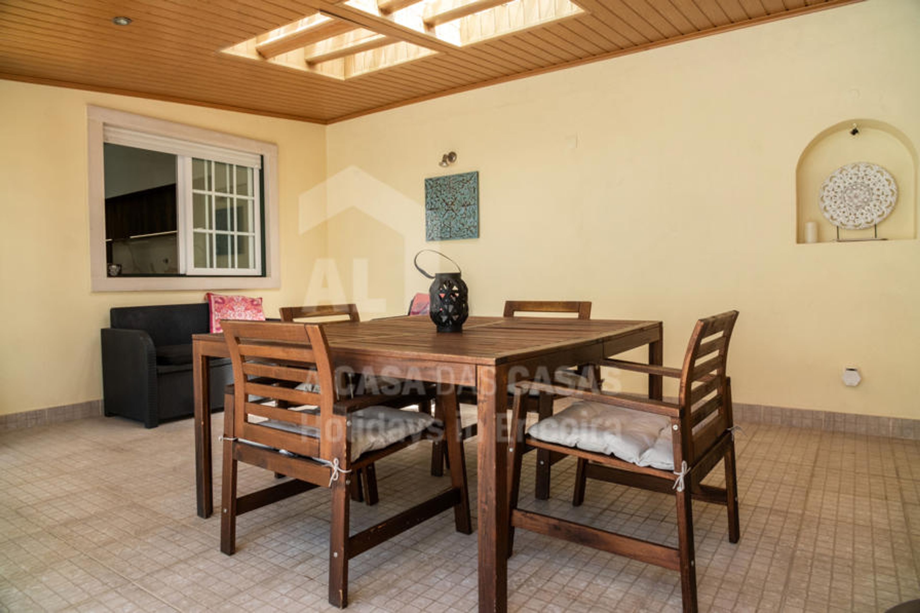 Excellent 200 m² accommodation, very close to the centre of Ericeira, with a pool, 3 bedrooms and capacity for 8 people. It has a living room with a fireplace, sofa, TV and dining area, two bedrooms with a double bed, one bedroom with a double bed and a bunk bed, two shower room, one social wc and a fully equipped kitchen with a fridge, microwave, oven, freezer, washing machine, dishwasher, crockery, cutlery, kitchen utensils, coffee machine, toaster and electric kettle. Externally, it has a pleasant terrace with garden furniture, a barbecue and a pool. It also has internet access (wifi), a hair dryer and an iron.It is located 900m from the São Sebastião beach and the São Sebastião square where you will find a supermarket, cafes with terraces, restaurants, a barbecue, among other shops. The Ribeira D\'Ilhas beach is 3km away.