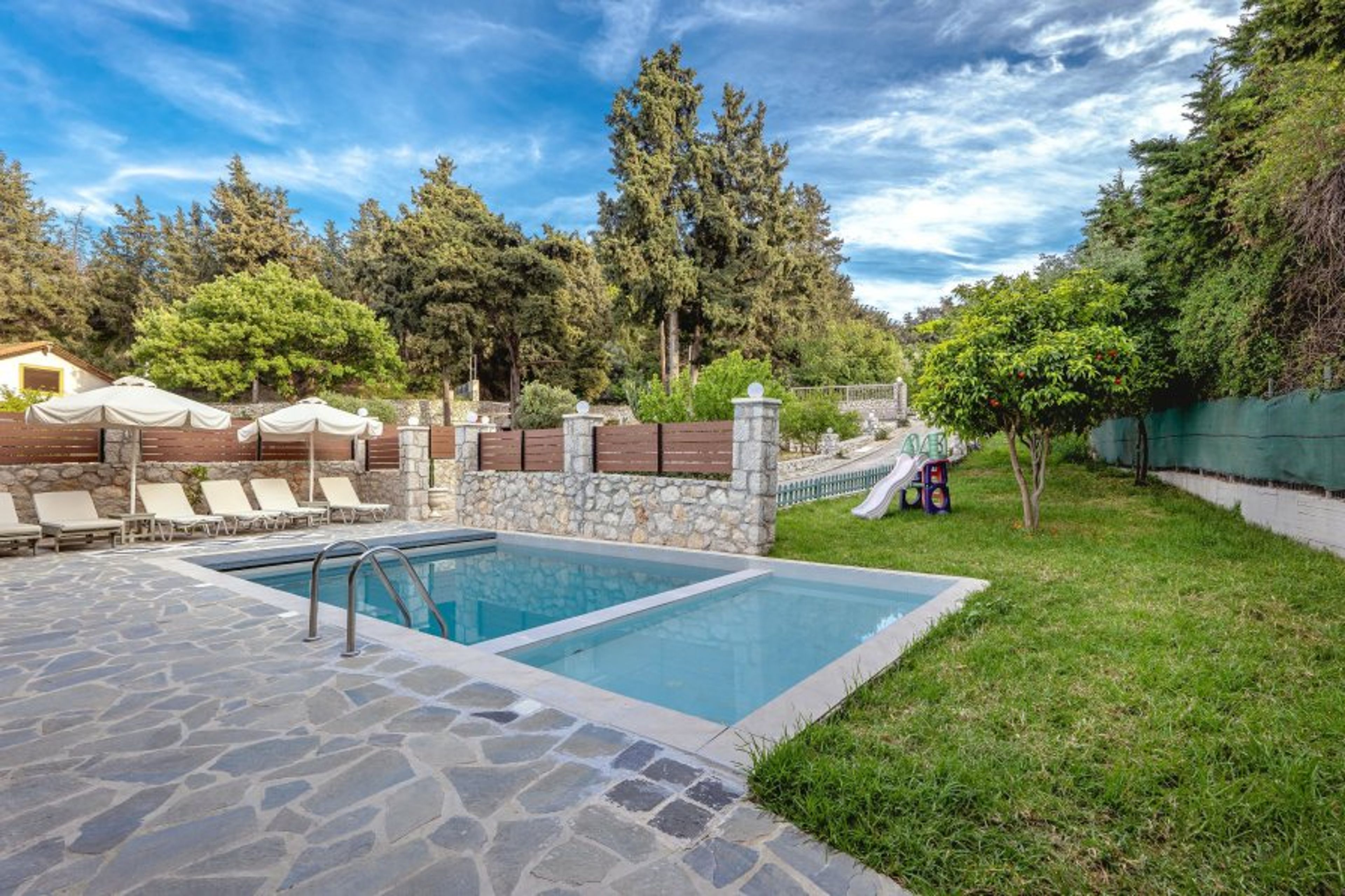 The villa is situated in Koskinou village, which is an ideal location for summer holidays in Rhodes as it is close to most of the island’s major attractions and just a short drive from the centre of Rhodes town. Koskinou is a beautiful village built on the top of a hill overlooking the east coast of Rhodes. At the lively main square of the village, you can find many shops, traditional restaurants, pharmacies etc. You shouldn’t miss visiting Kallithea Springs, only 7 minutes far from the villa. Old Town of Rhodes, an important UNESCO monument of cultural heritage is located less than a 20-minute drive. The magnificent ancient acropolis of Lindos overlooking the picturesque village with the narrow streets and traditional white houses is approximately half hour drive too.