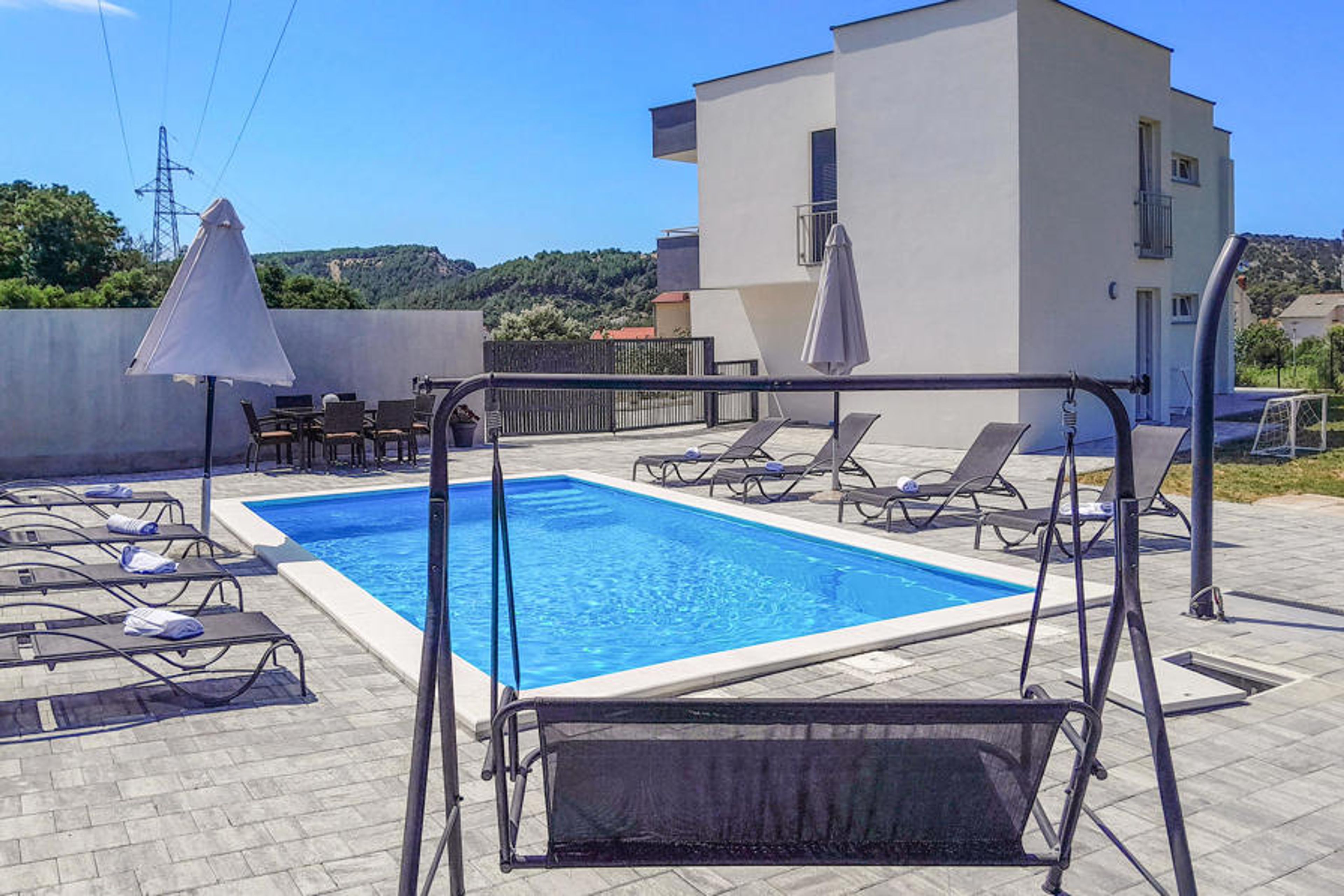 This house is ideal for a larger group or two families who want to spend the summer together and still want comfort and intimacy. In nature it is designed as two separate apartments with separate entrances. Each floor has a separate terrace, and for socializing there is a terrace with barbecue, so you can cook your favorite dishes and enjoy them together. Relax in the outdoor pool and enjoy your favorite reading relaxed in the sun loungers. The interiors are very comfortable and tastefully decorated. An important aspect is the beautiful location, because you can reach the gorgeous sandy beaches very quickly.