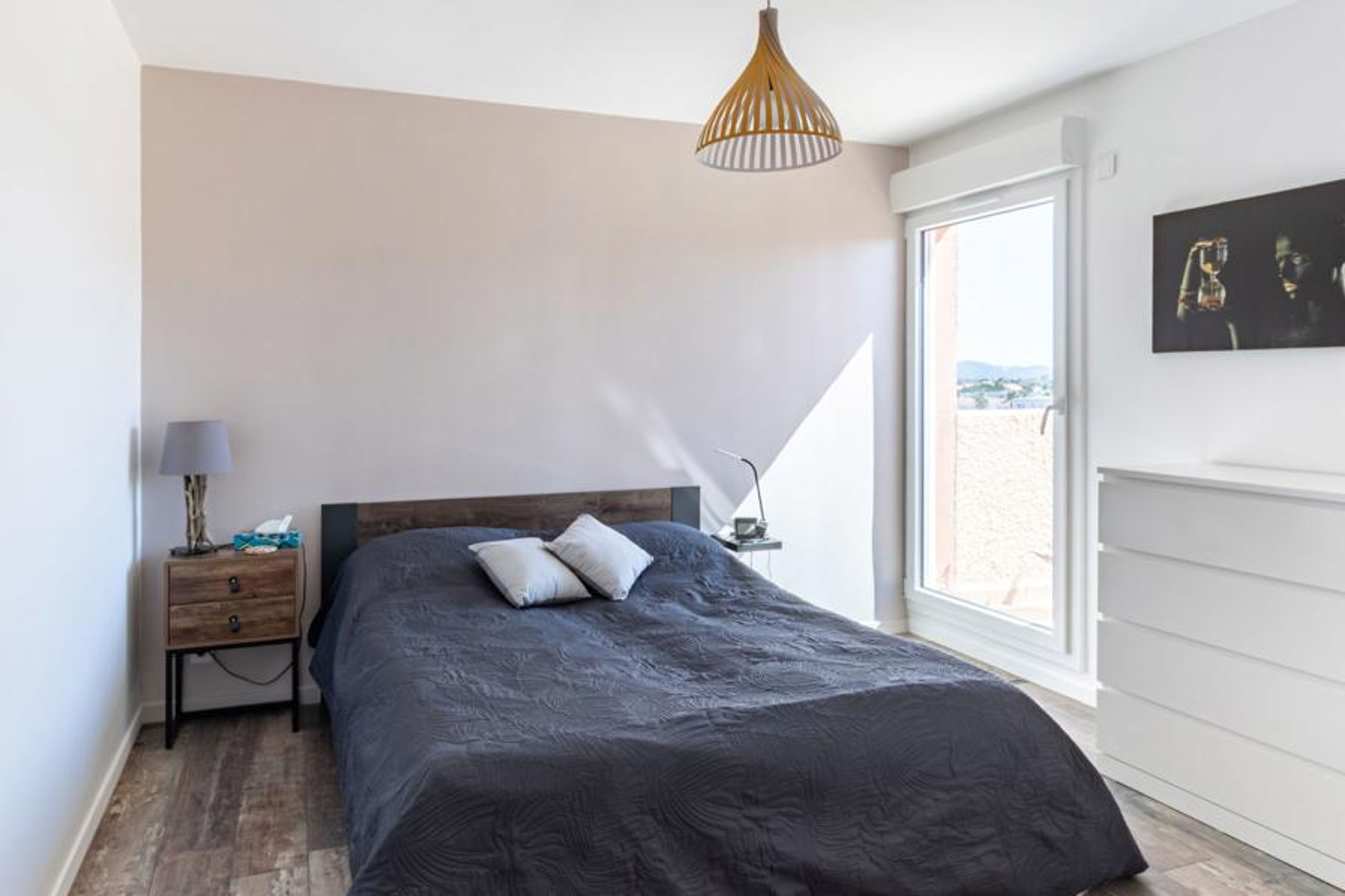 Le Pradet: Residence "Les Roches Bleues", 4 storeys, built in 1977, renovated in 2015. In a sunny position, in the heart of the city, 800 m from the sea, from the beach. In the house: lift. Parking at the house. Shop 650 m, supermarket, restaurant, café, bus stop 50 m, railway station "La Garde" 2 km, sandy beach "des Bonnettes" 800 m, swimming bay 900 m. Golf course (18 hole) 3.8 km. Hiking paths: Espace nature 1.8 km. Please note: the keys‘ handover takes place by the agency INTERHOME in Hyères sur le Port, 15 km. Main road close by.