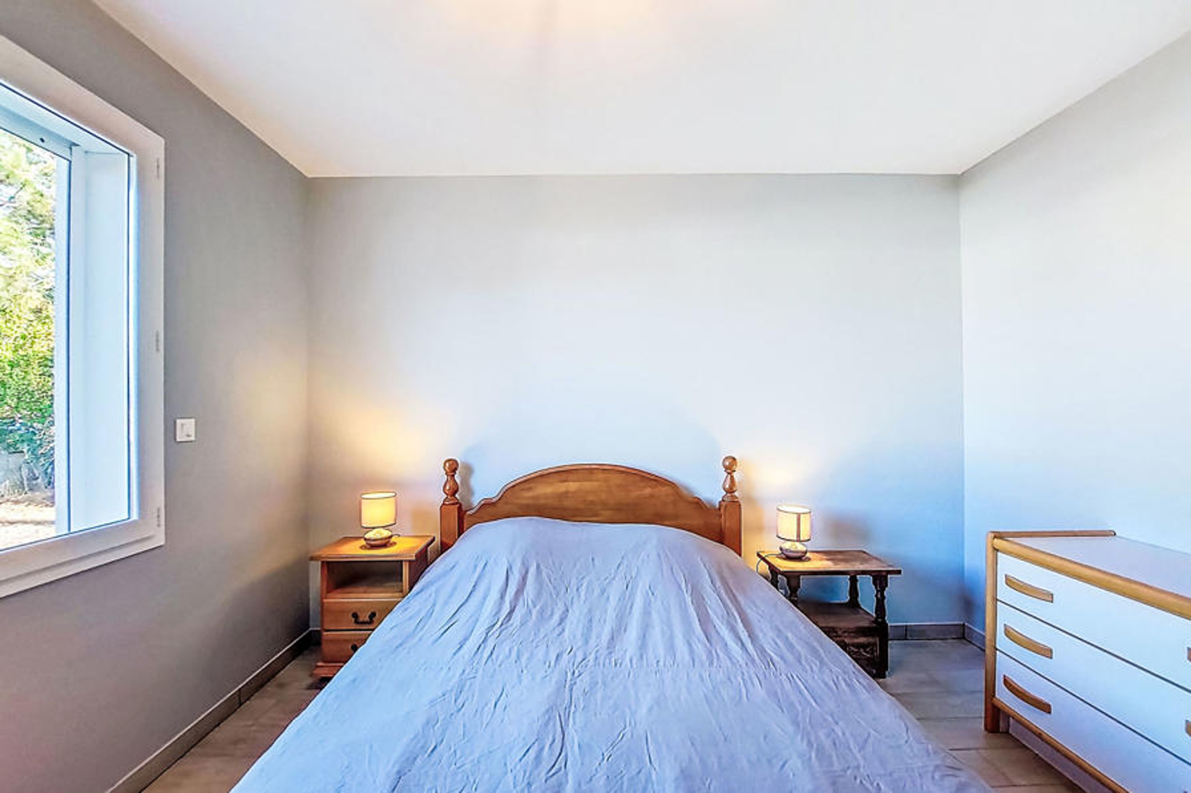 "Les Arbousiers", 4-room house 83 m2. Bright, practical furnishings: living/dining room with dining table and TV (flat screen). Exit to the terrace. 3 rooms, each room with 1 french bed (140 cm, length 190 cm). Open kitchen (oven, dishwasher, 3 induction hot plates, toaster, kettle, microwave, freezer, electric coffee machine). Shower, sep. WC. Wood heating. Terrace roofed. Terrace furniture, barbecue (portable), deck chairs. Facilities: iron. Internet (WiFi, free). Please note: non-smoking house. Maximum 1 pet/ dog allowed. Smoke alarm. Offer by a private individual according to Art. 155, IV of CGI.
