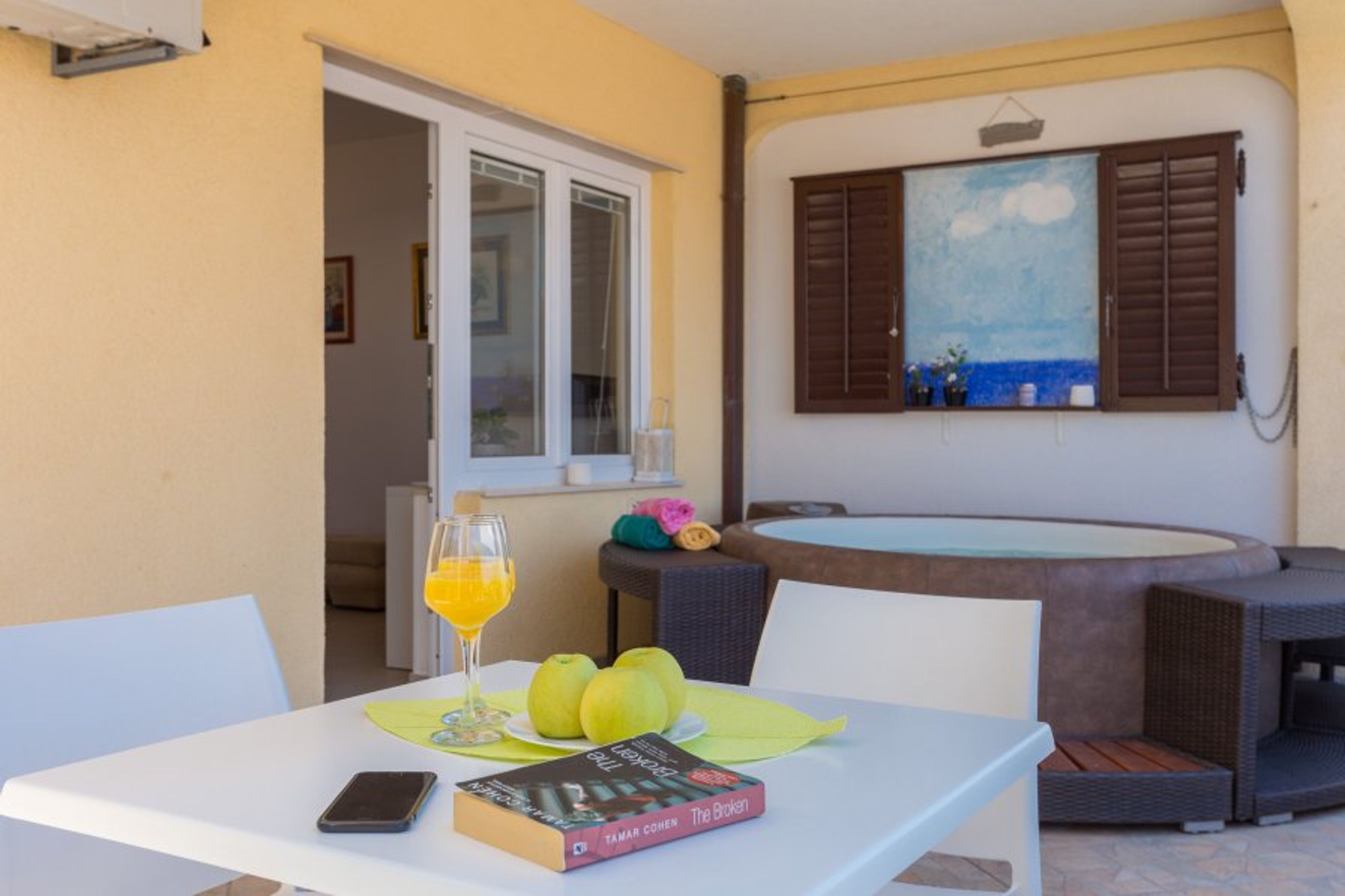 Apartment Romeo has a parking place above the house, two terraces, hot-tub, 2 bedrooms (with double beds), an open space kitchen / dining / living room and bathroom.