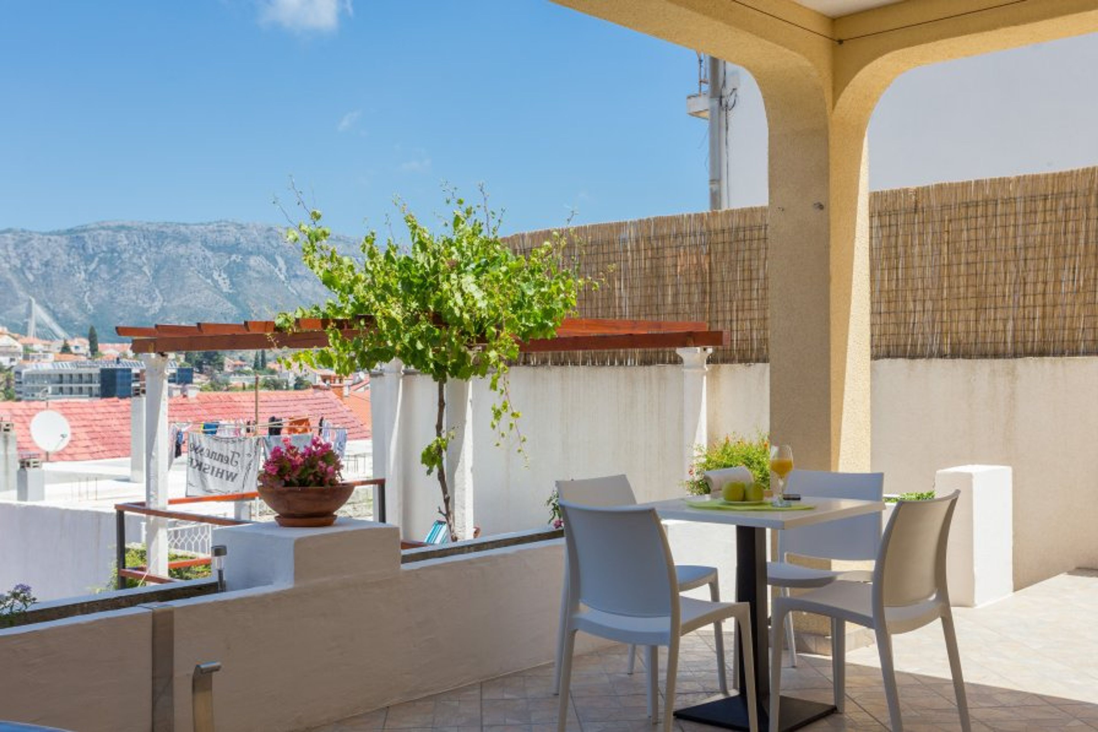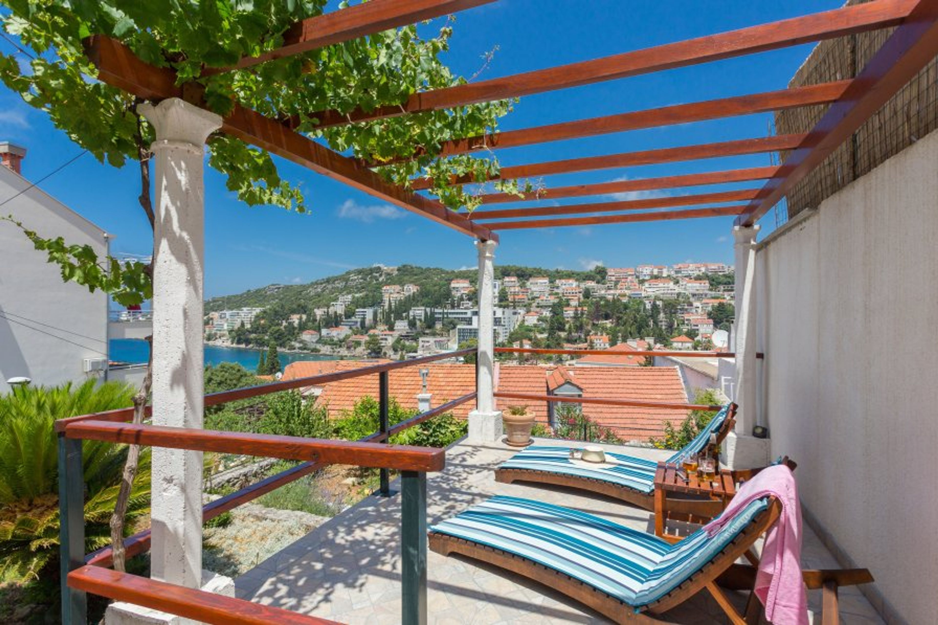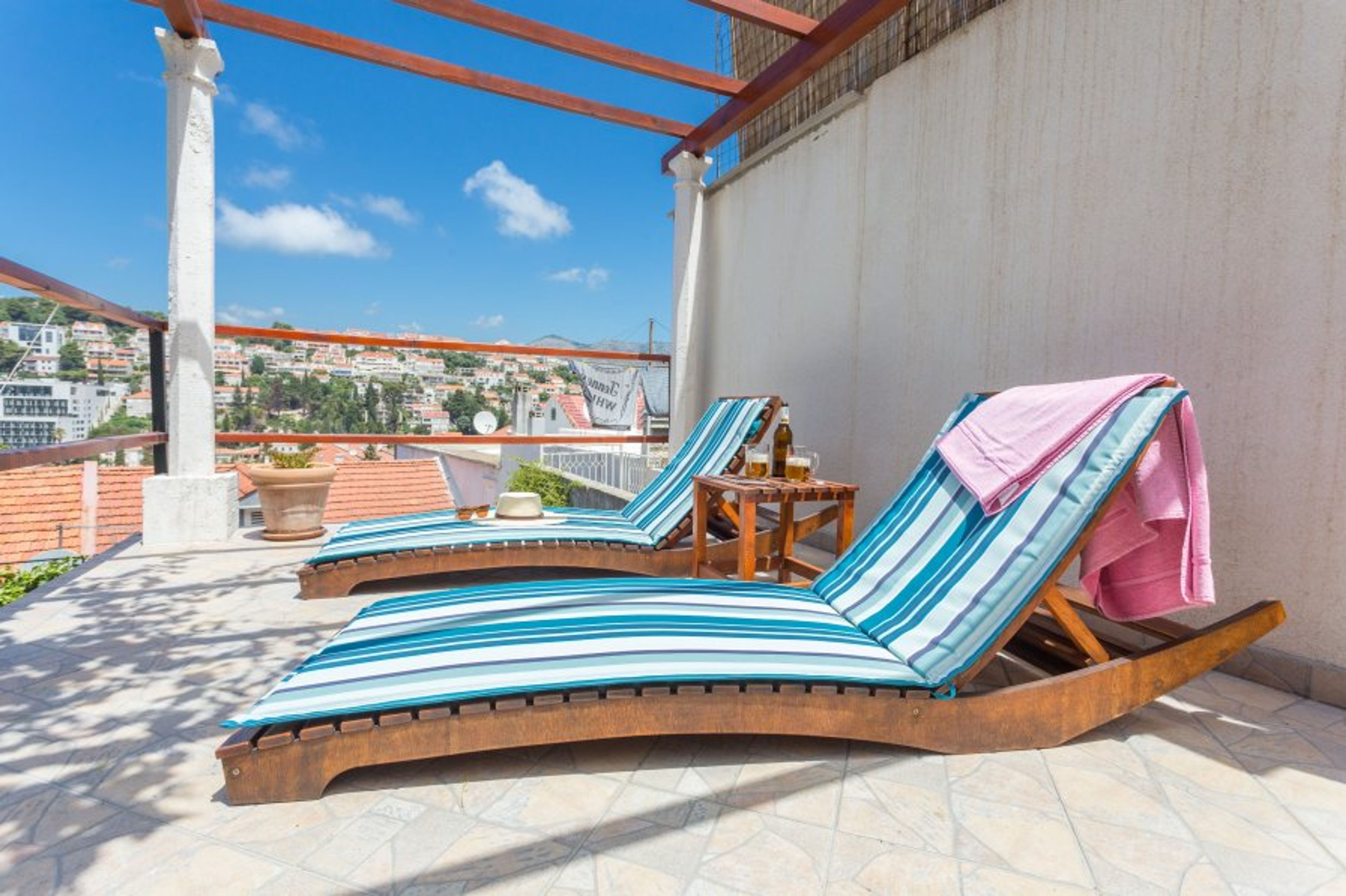 This modern and lovely decorated two bedroom apartment has a veranda with hot-tub and outside dining area and a terrace with sun loungers. Both outside areas are private for the guests. They offer a view to the sea and the Lapad bay.