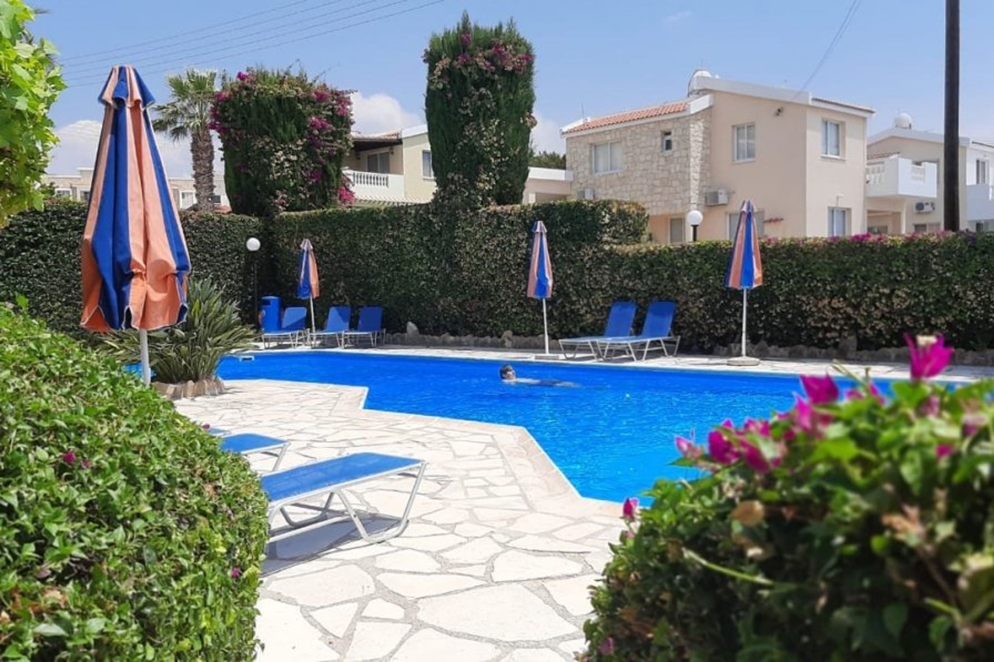The corner house Eva Gardens is located in Lower Peyia in a quiet cul-de-sac next to a protected area with trees. It is only 5 minutes drive from Coral Bay with its sandy beach and 900m from the old village of Peyia on the hillside.