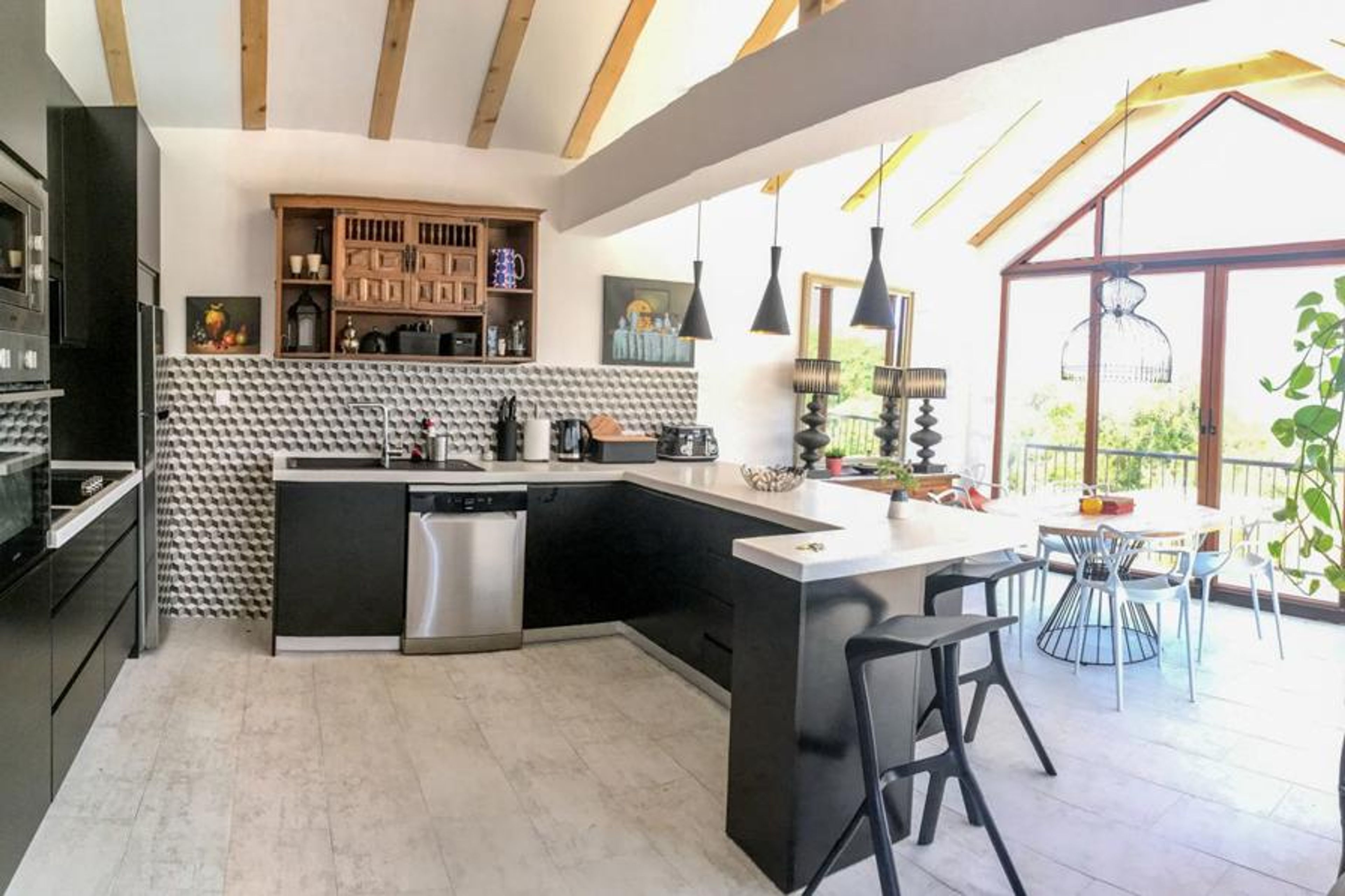 There’s an international feel to this villa, with décor inspired by Spain and North Africa, and this is evident inside and out. The interiors benefit from lots of natural light, with double-aspect, floor-to-ceiling windows also showcasing the gorgeous setting.