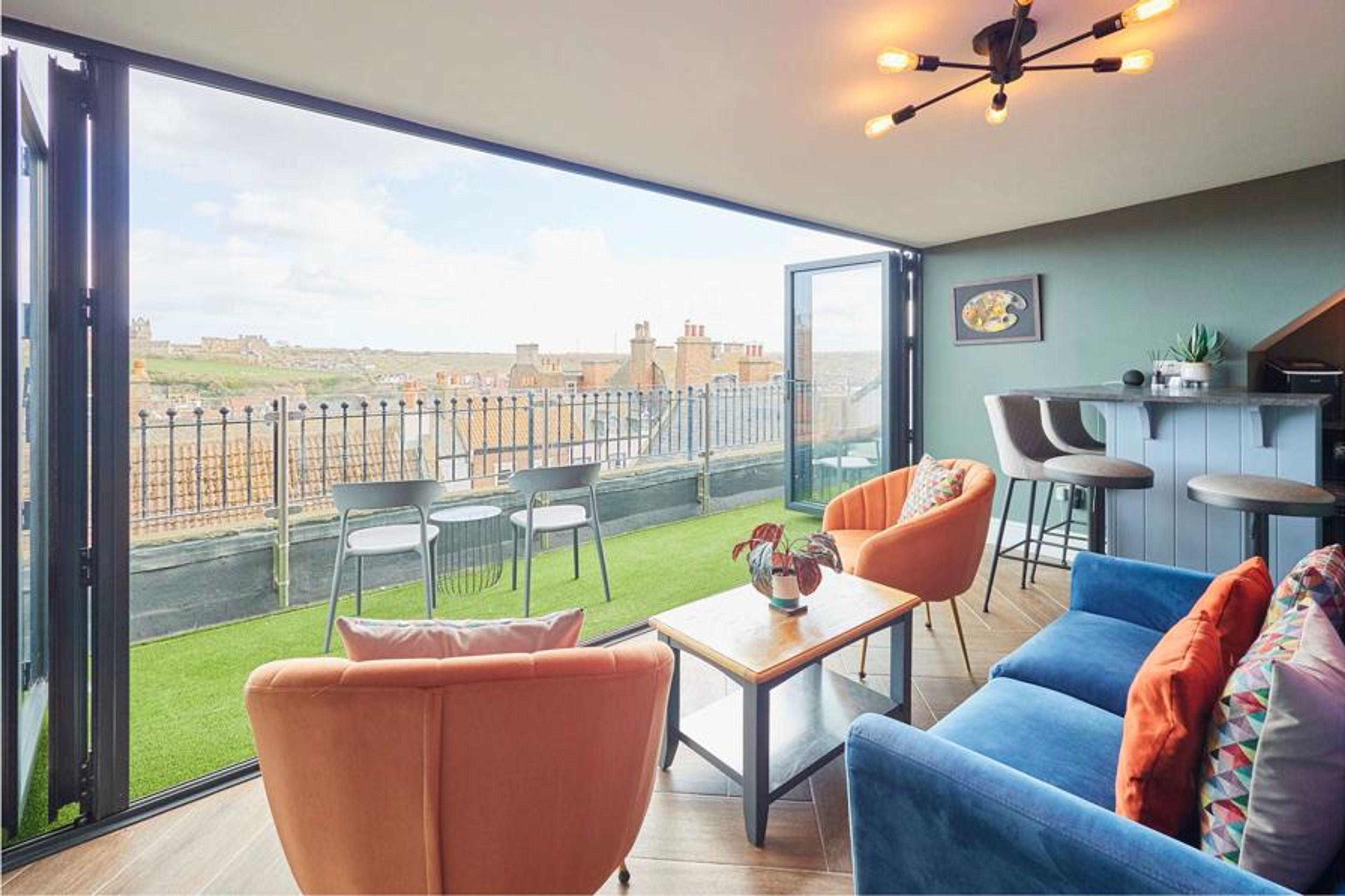 The top floor at Devereux House is where you’ll find the bar and a pleasant living area. The bi-fold doors lead to a large balcony offering far reaching views of beautiful Whitby and the Abbey. With seating and a spacious terrace, this is a great spot to relax and enjoy a drink or two as you reflect on the day gone by whilst watching the world go by in stunning surroundings.