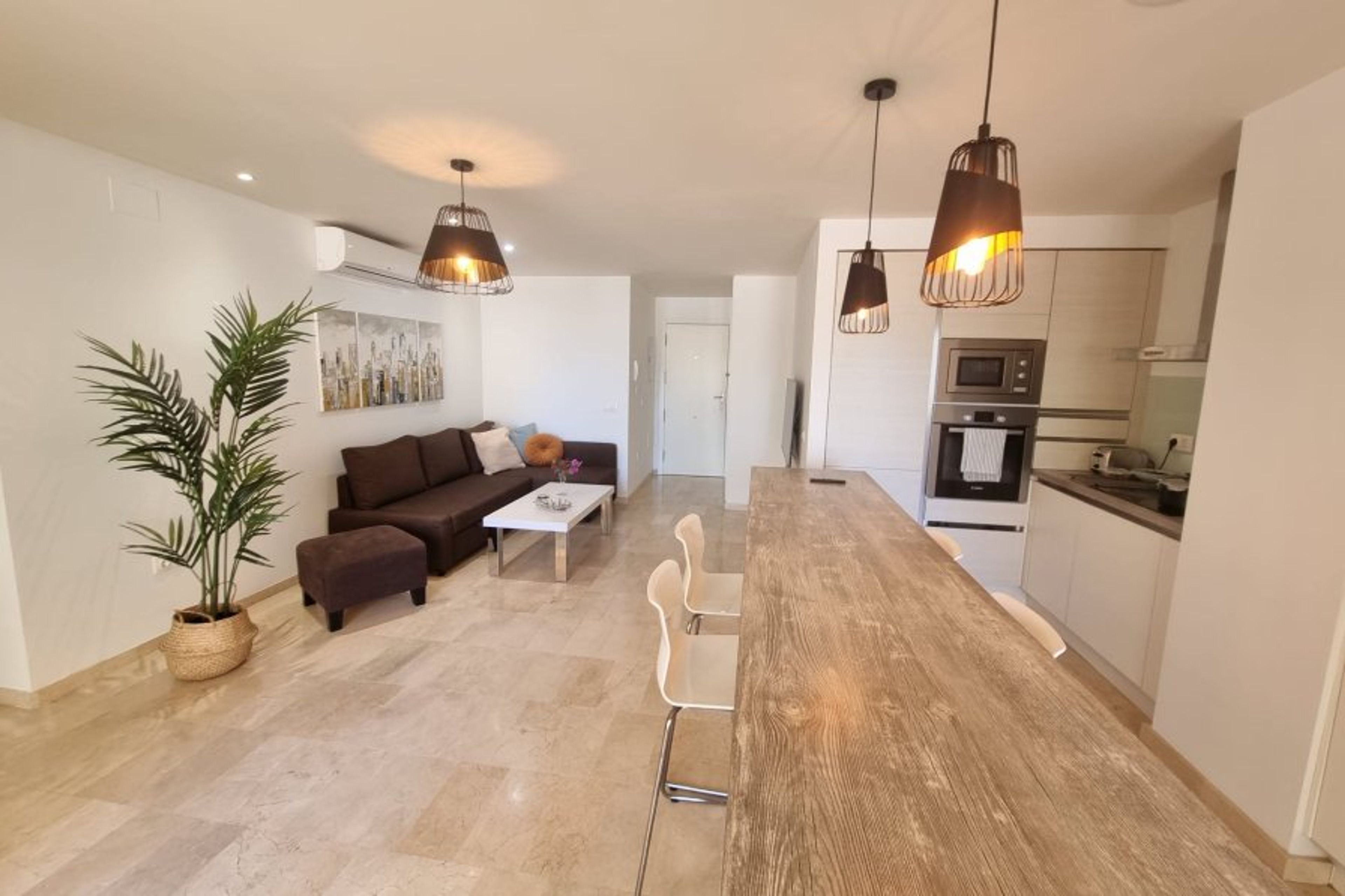 With a lovely terrace with views to the beach this apartment has two bedrooms with double beds and two bathrooms. The living room has seating for 4 persons and a breakfast/dinner with seating for 4 persons. The kitchen is equipped for your self catering vacation.