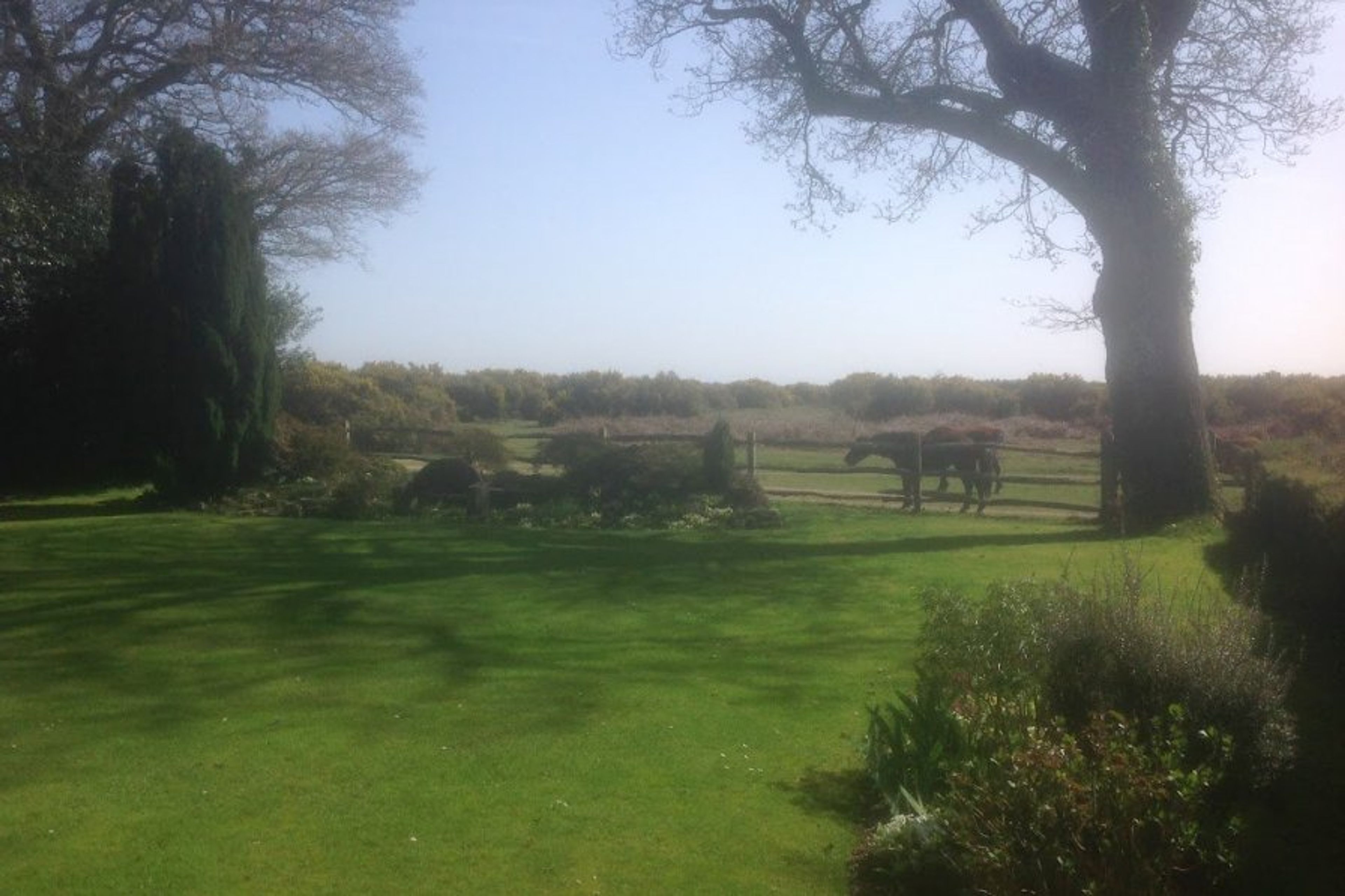 Large south west facing garden laid mainly to lawn with a variety of flower and shrub beds, borders and mature trees together with a lovely terrace to the rear of the property. Garden furniture with seating overlooking the picturesque garden and glorious open views across the New Forest where ponies can often be seen grazing.