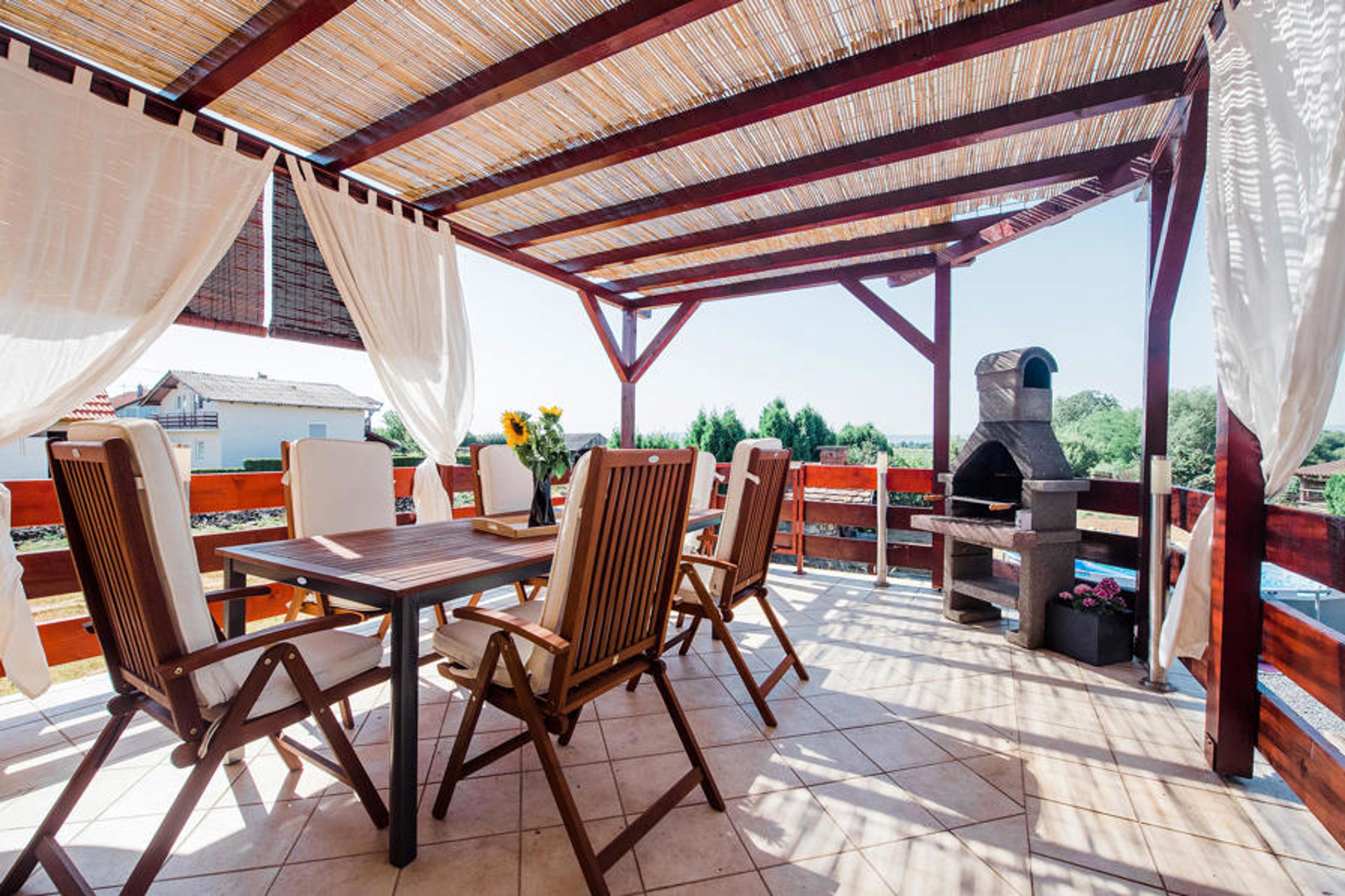 On the fenced natural property you can entertain yourself with the family playing badminton or having fun in the swimming pool. Spend cozy evenings on the terrace and enjoy the beautiful view of the countryside.