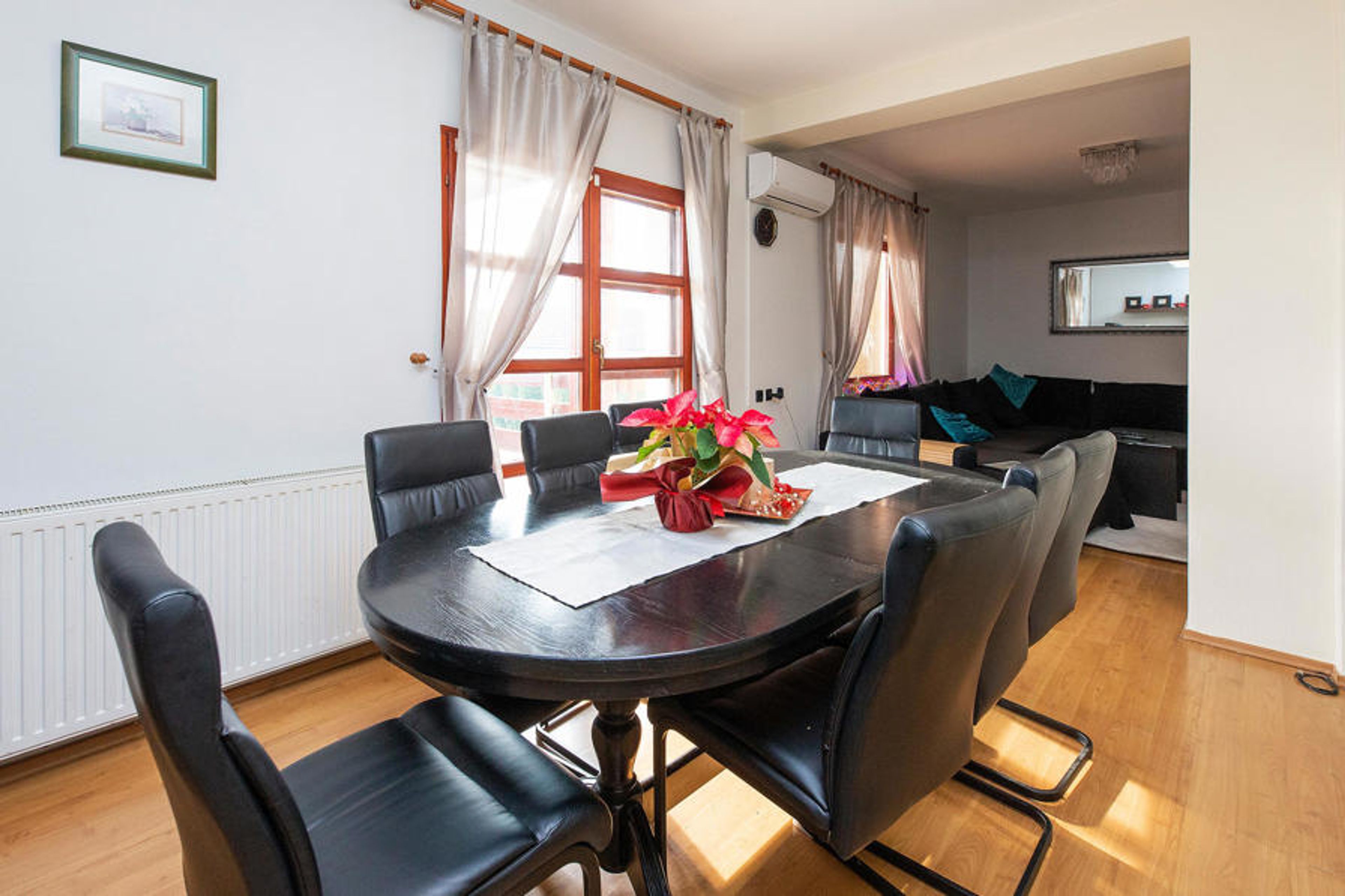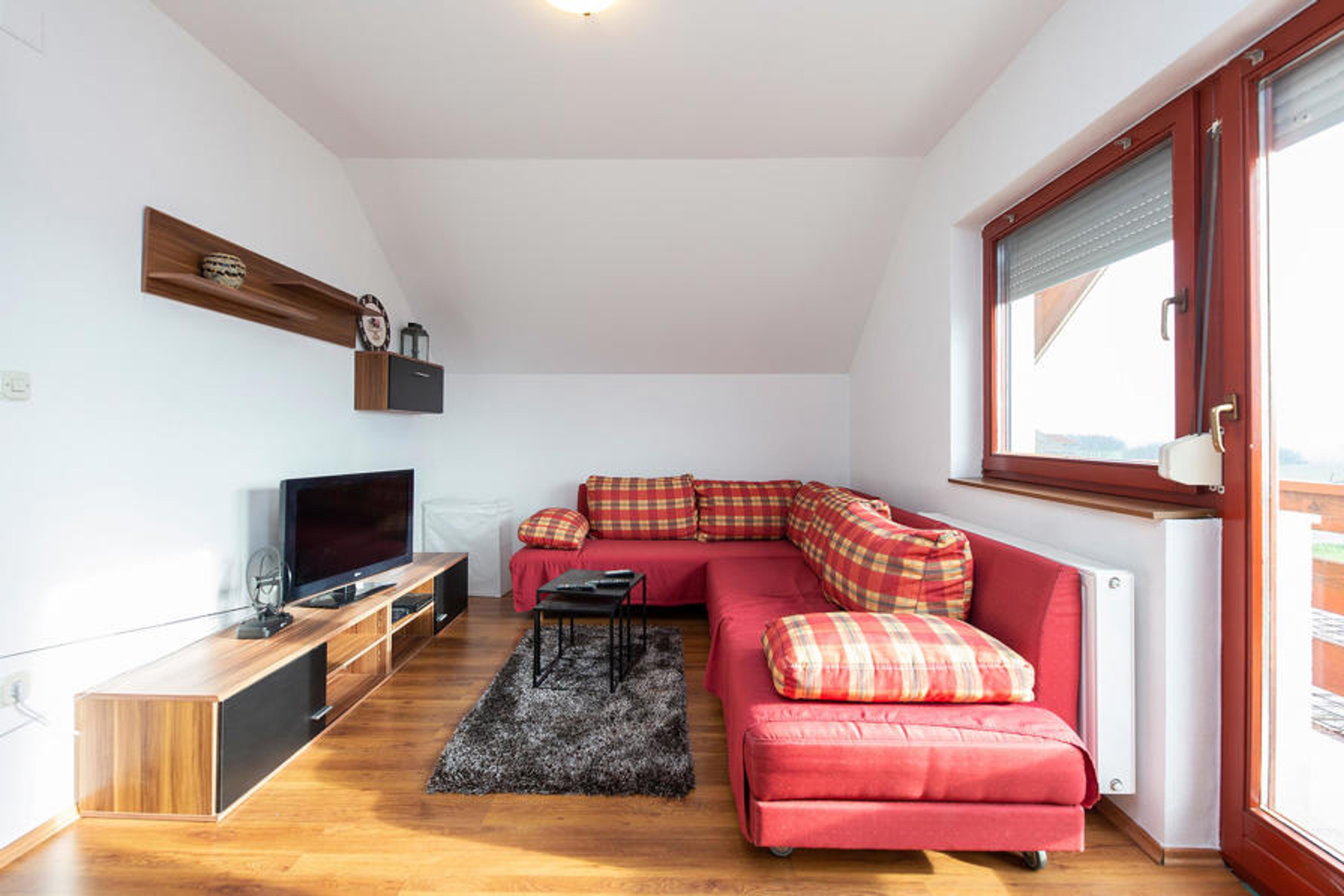 In pretty, rural surroundings, this beautiful vacation home welcomes you. The bright rooms are practically furnished and comfortably equipped, so you will want for nothing. Spend active hours at the fitness or have fun playing table tennis. In the evening you can relax in the living room with a good movie.