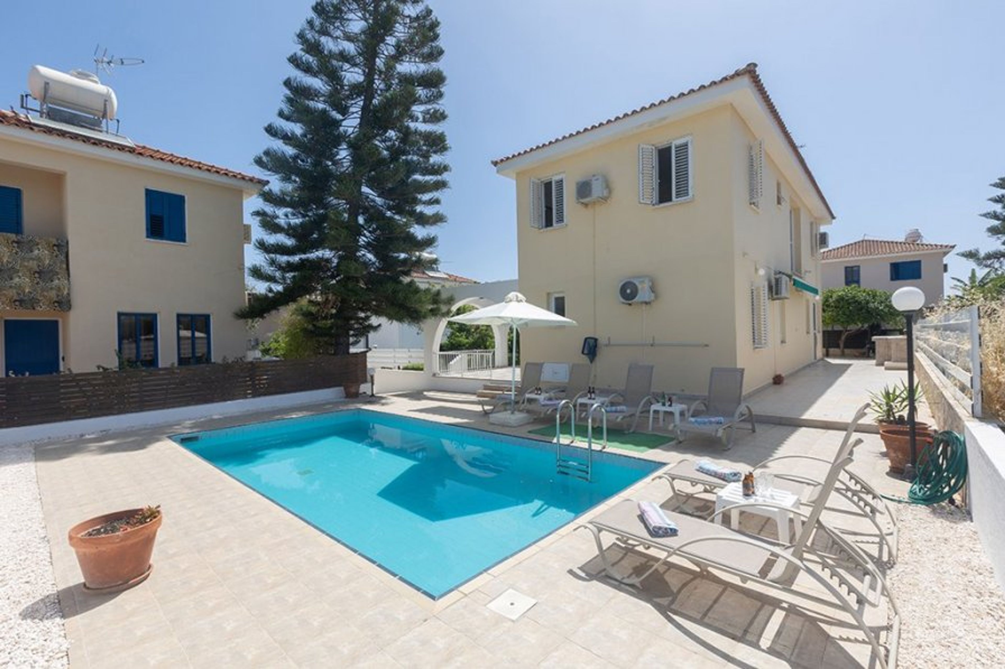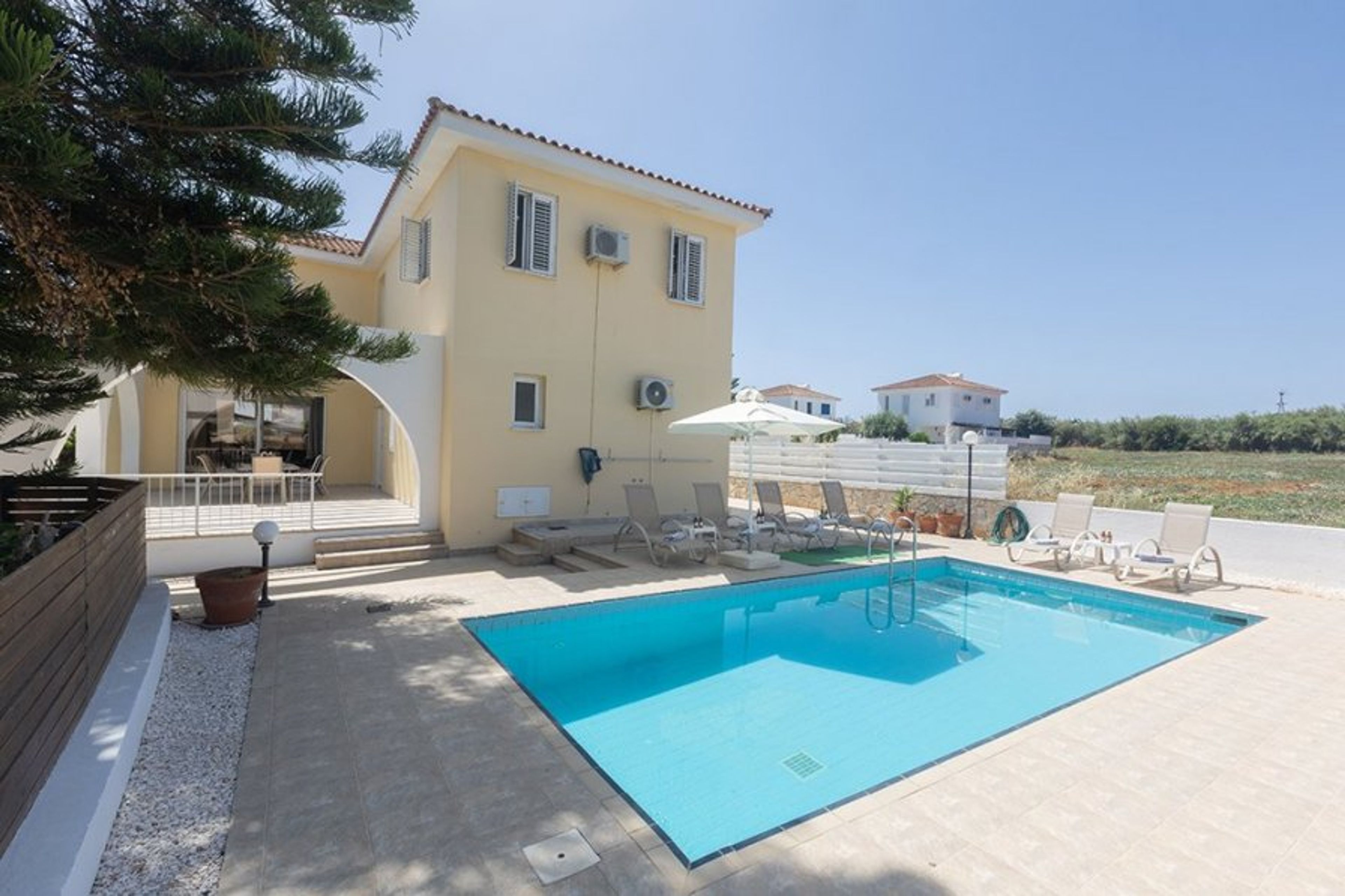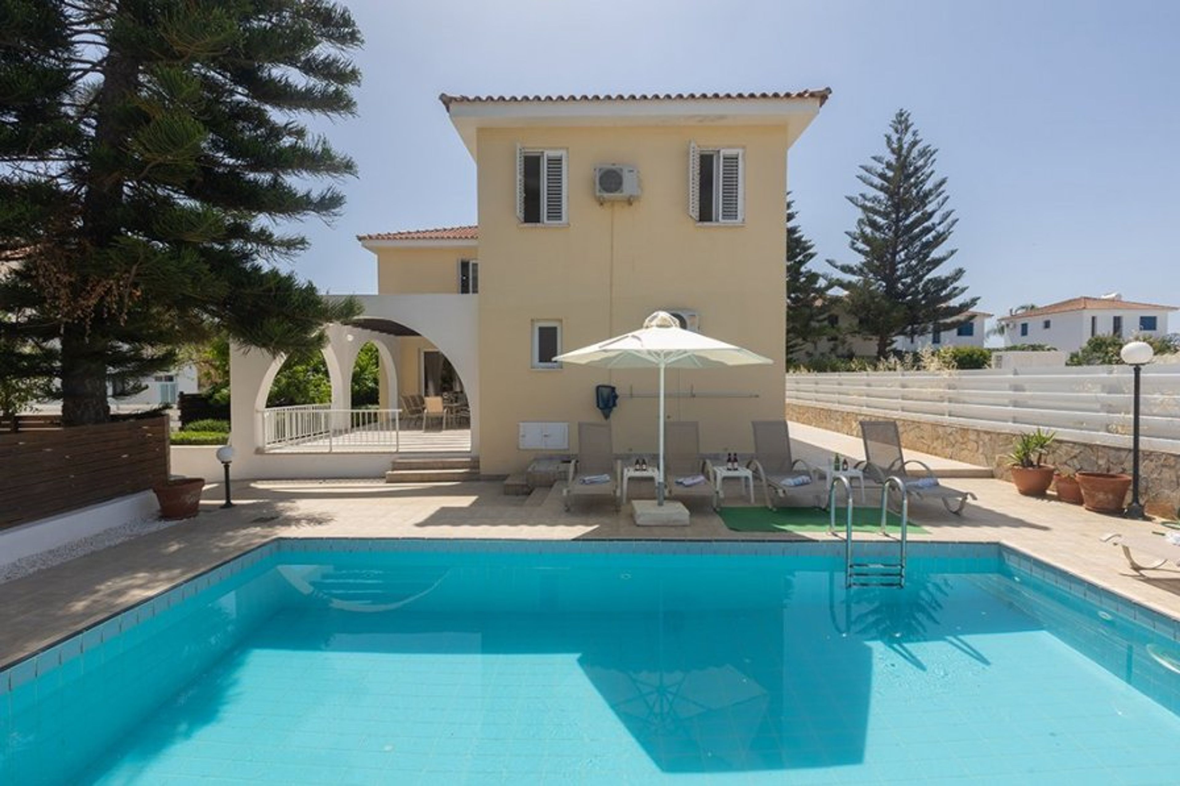This modern 5 bedroom villa with a private pool is located in the Ayia Triada area, and is just a few minutes drive to the resort centres of Kapparis, Pernera and Protaras strip.