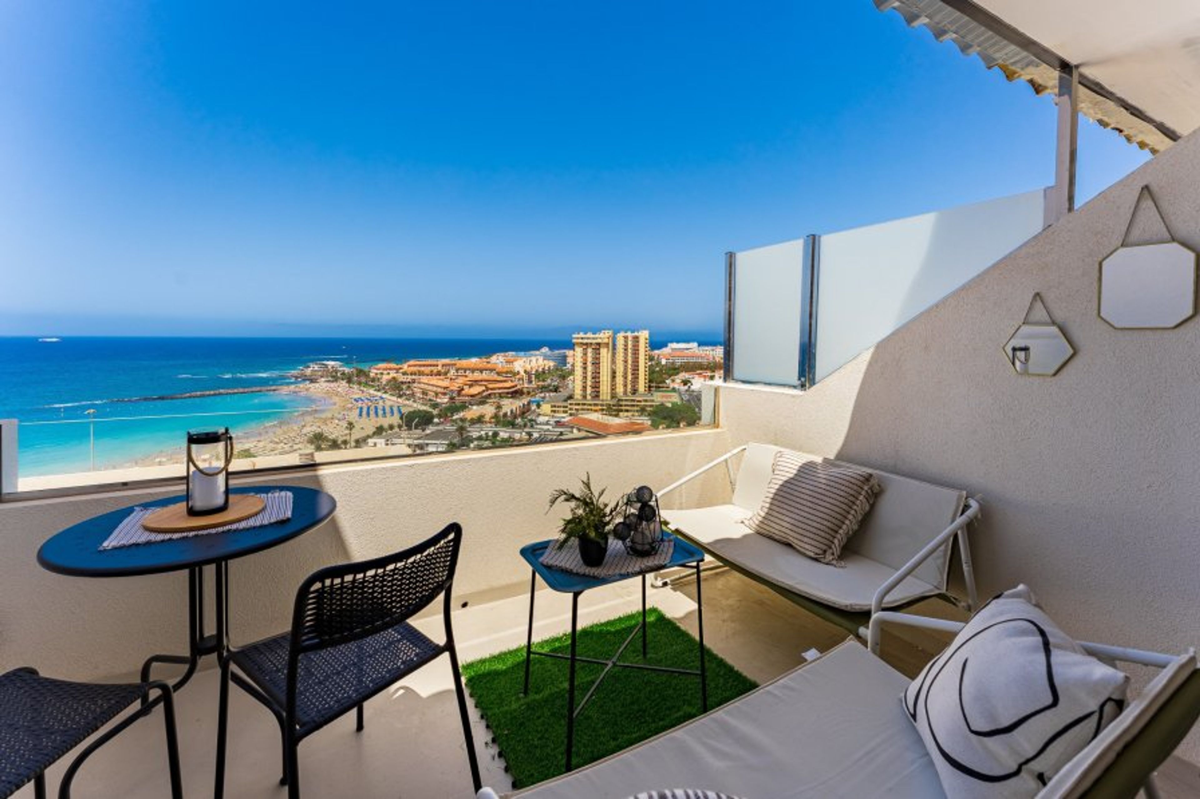 Spectacular apartment in second line to the sea in Los Cristianos. It is completely refurbished in summer 2022, tastefully decorated and furnished. It has a living room with a sofa bed, an open kitchen fully equipped with ceramic hob and electric oven, a dining table, a bedroom with extra large double bed with fitted wardrobe and an extra chest of drawers, a bathroom with shower, fantastic terrace with panoramic sea views.