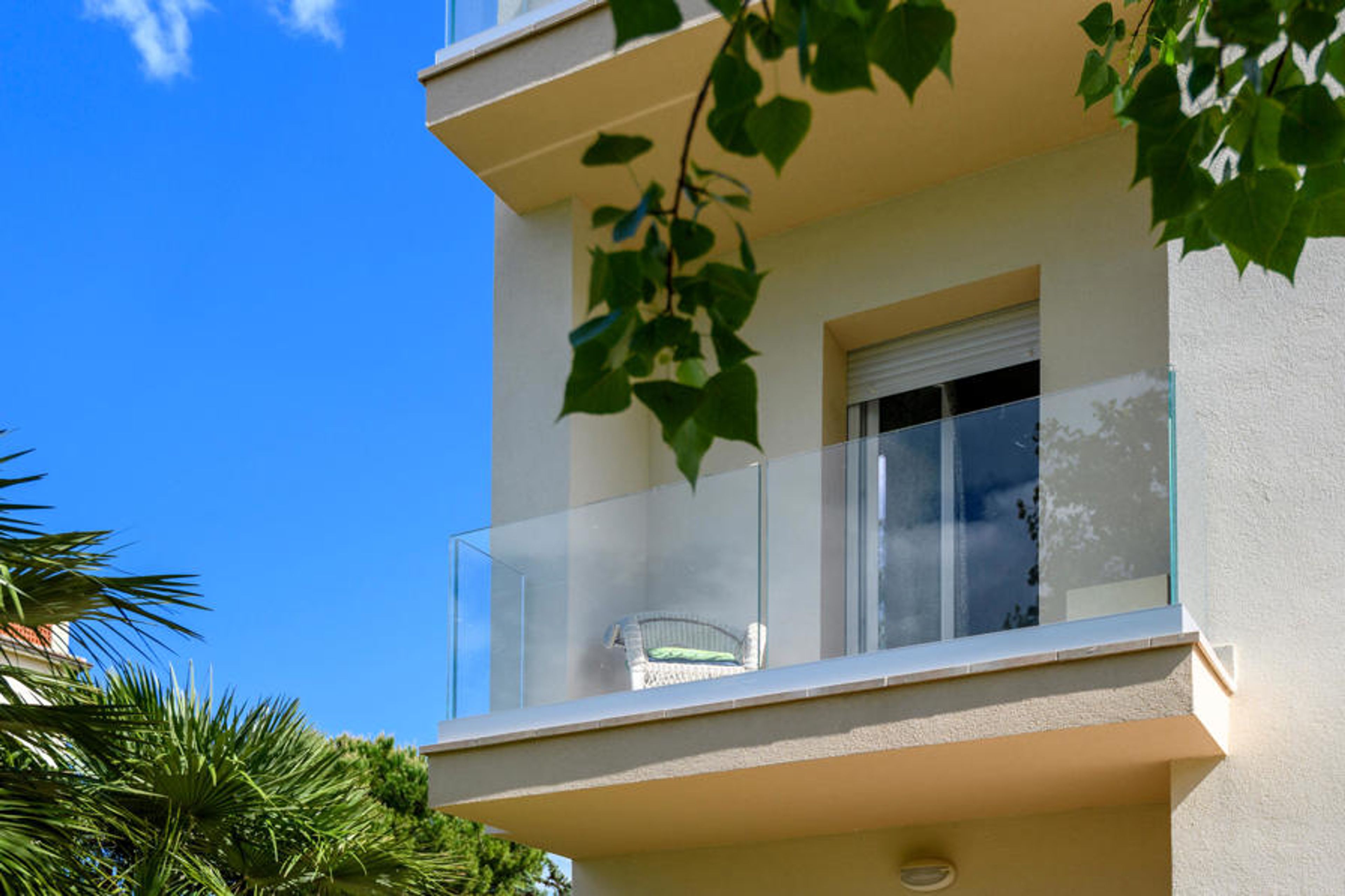 The practical apartment on the 2nd floor of an apartment building, which is only 100 meters from the sea, is your quiet home where you can relax after long days at the beach. The apartment is located in a street with little traffic, so it promises you quiet nights and everything you need for your vacation. Enjoy your morning coffee on the balcony overlooking the water and listen to the rustling leaves of the palm trees and trees of the garden.