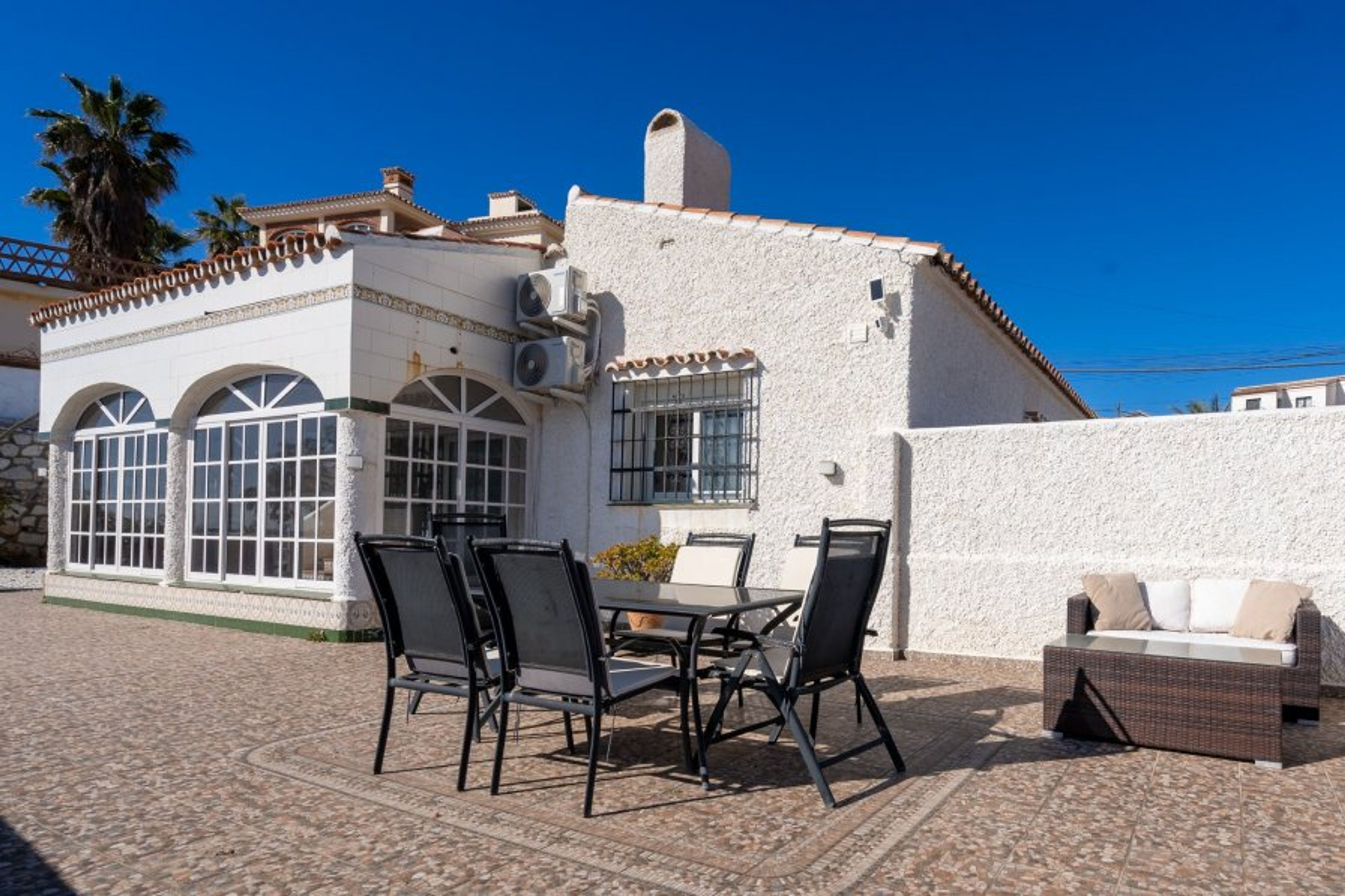 Only a short distance drive to La Cala de Mijas and Fuengirola you will find this house in El Faro, the house has a large garden/terrace for you to sit for Alfresco Dining with a BBQ and lovely relaxing sea views. The house also has a small roof terrace over looking the shimmering Mediterranean Sea.