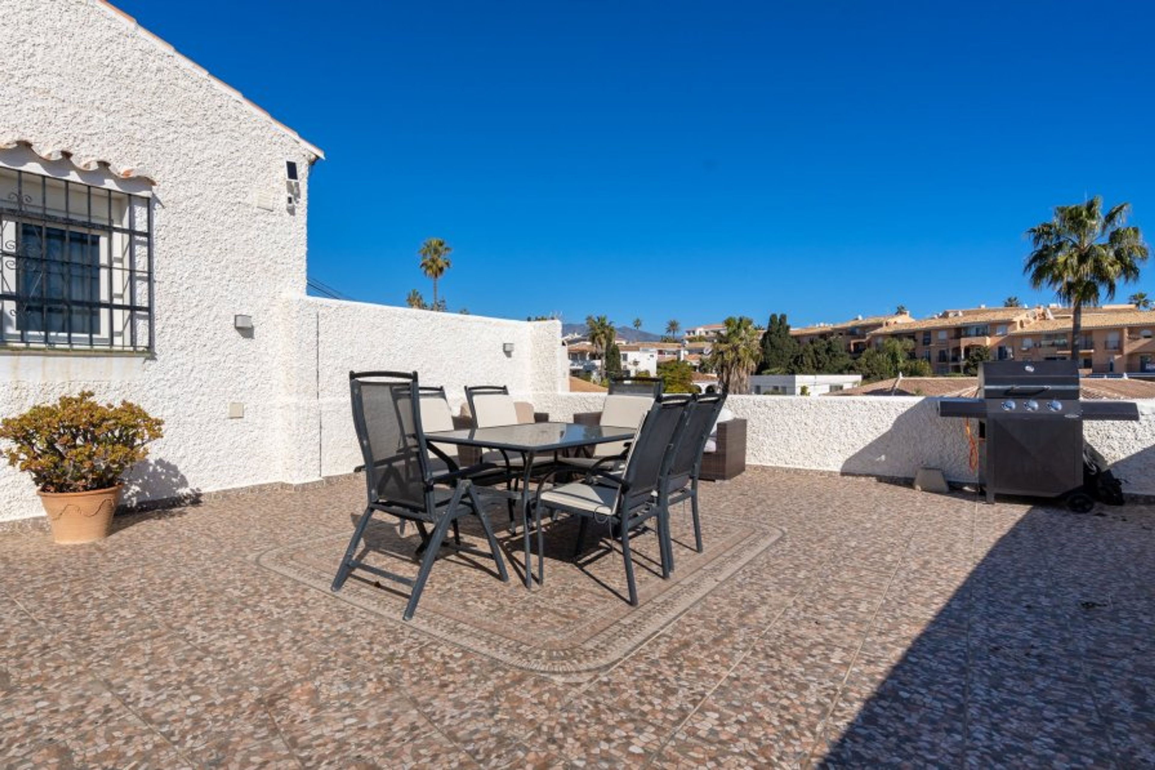 Whilst a car is recommended, it is only a very short walk to the bus stops taking you to La Cala de Mijas and beyond to Marbella or from the beach side of the road to Fuengirola. It is only a 250 meter walk to the nearest beach and about 300 meters to the nearest bar and restaurante.