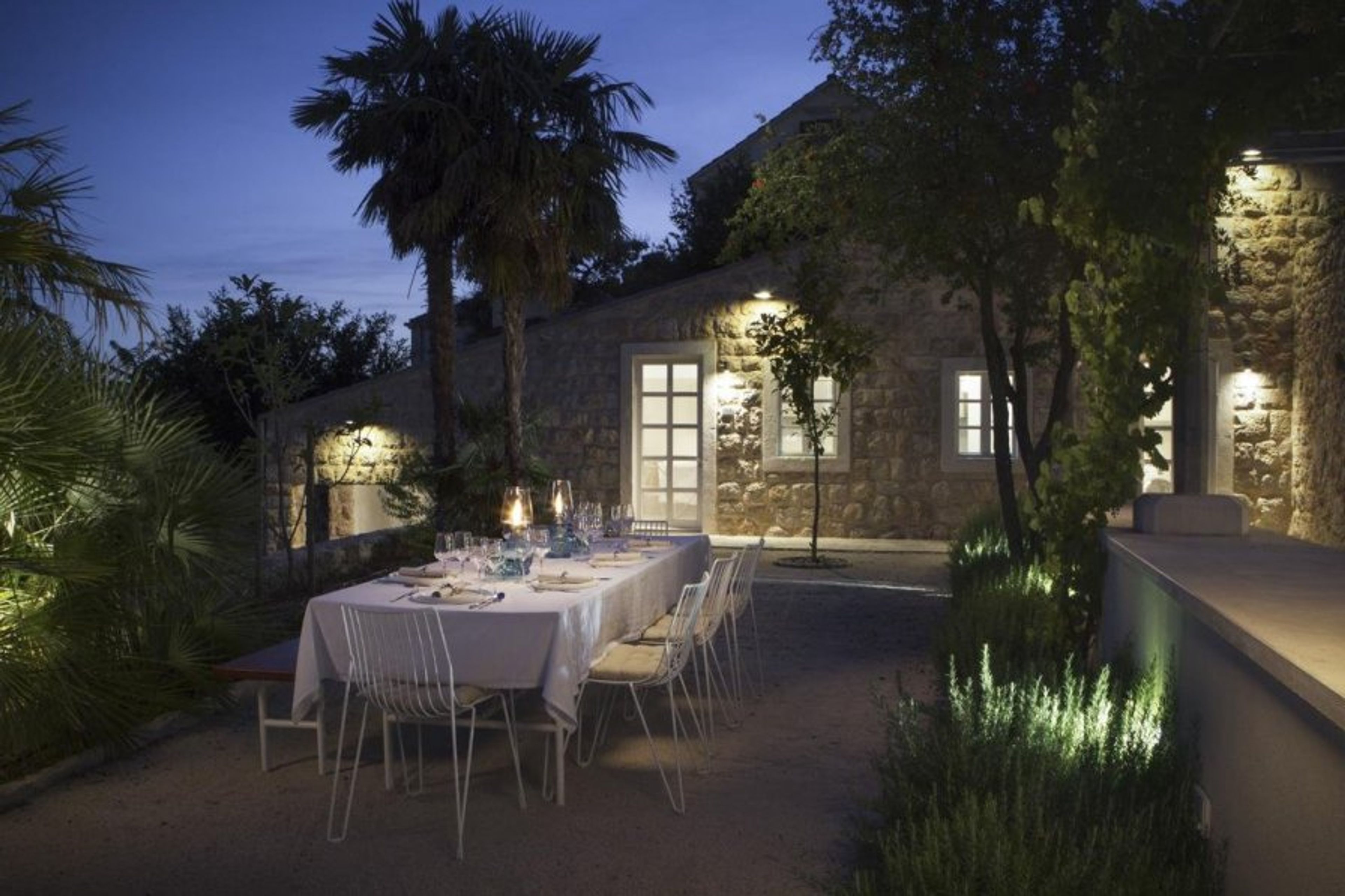 Explore the gardens with the fragrance of lavender in the air as you pass citruses, pomegranates, and vibrant bougainvillea. Gaze out over the elegant Cypress trees towards the Adriatic as you sunbathe on the grassed terraces, enjoy long lunches on the al-fresco dining terrace, dip into the pristine pool to cool down, and dine by candle-light in the enclosed Konoba, formerly a water cistern which has been cleverly converted to a convivial place to meet.