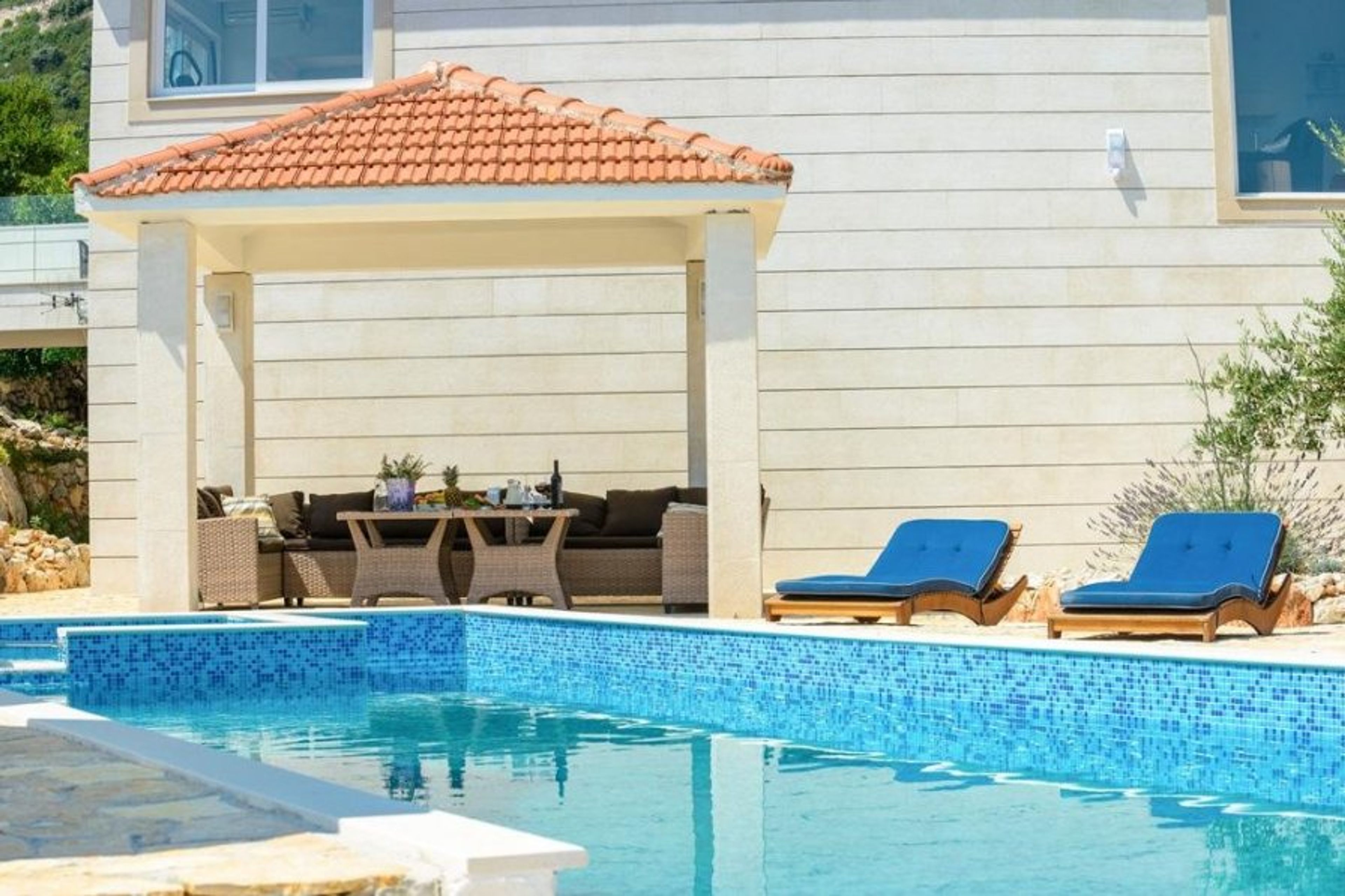 Guests can enjoy the morning sunshine while chilling in the marvellous pool, as well as observe mesmerising sunsets with a glass of wine in hand.