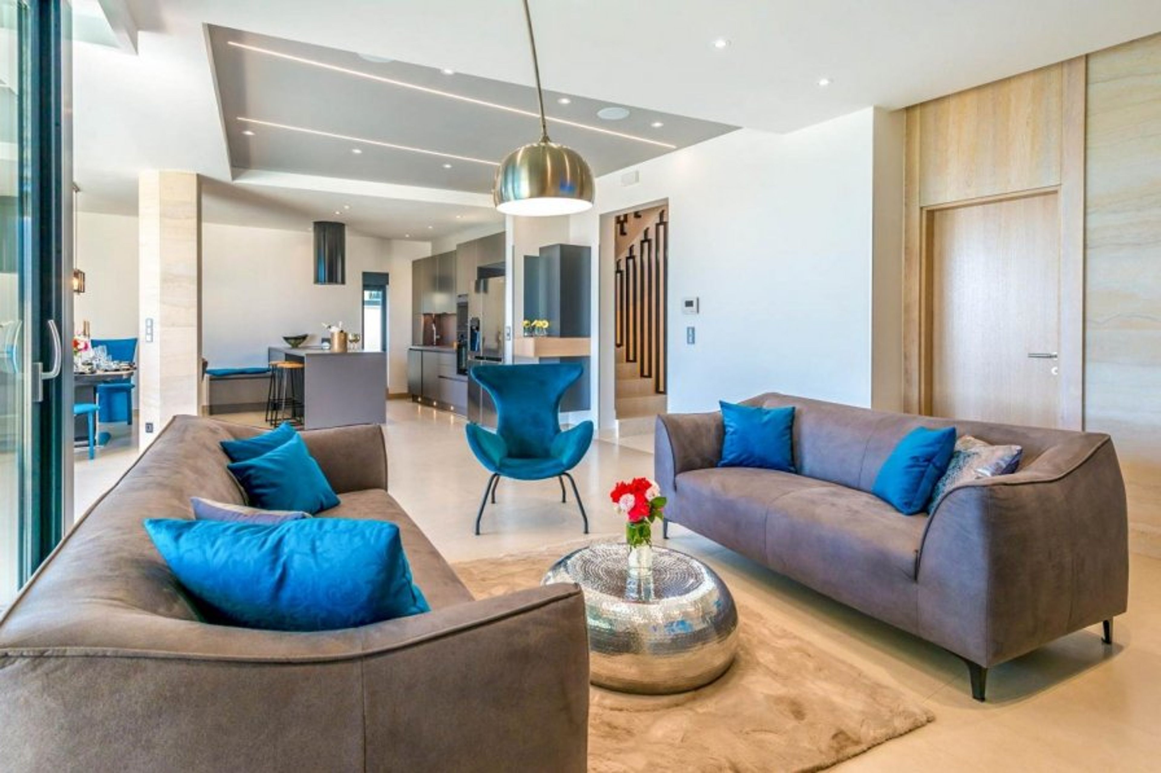 On the ground floor, there is a fully equipped kitchen with all the necessary appliances, an open-plan living room and dining area with direct access to the poolside area, and a home gym and game room, with table tennis and a pool table.