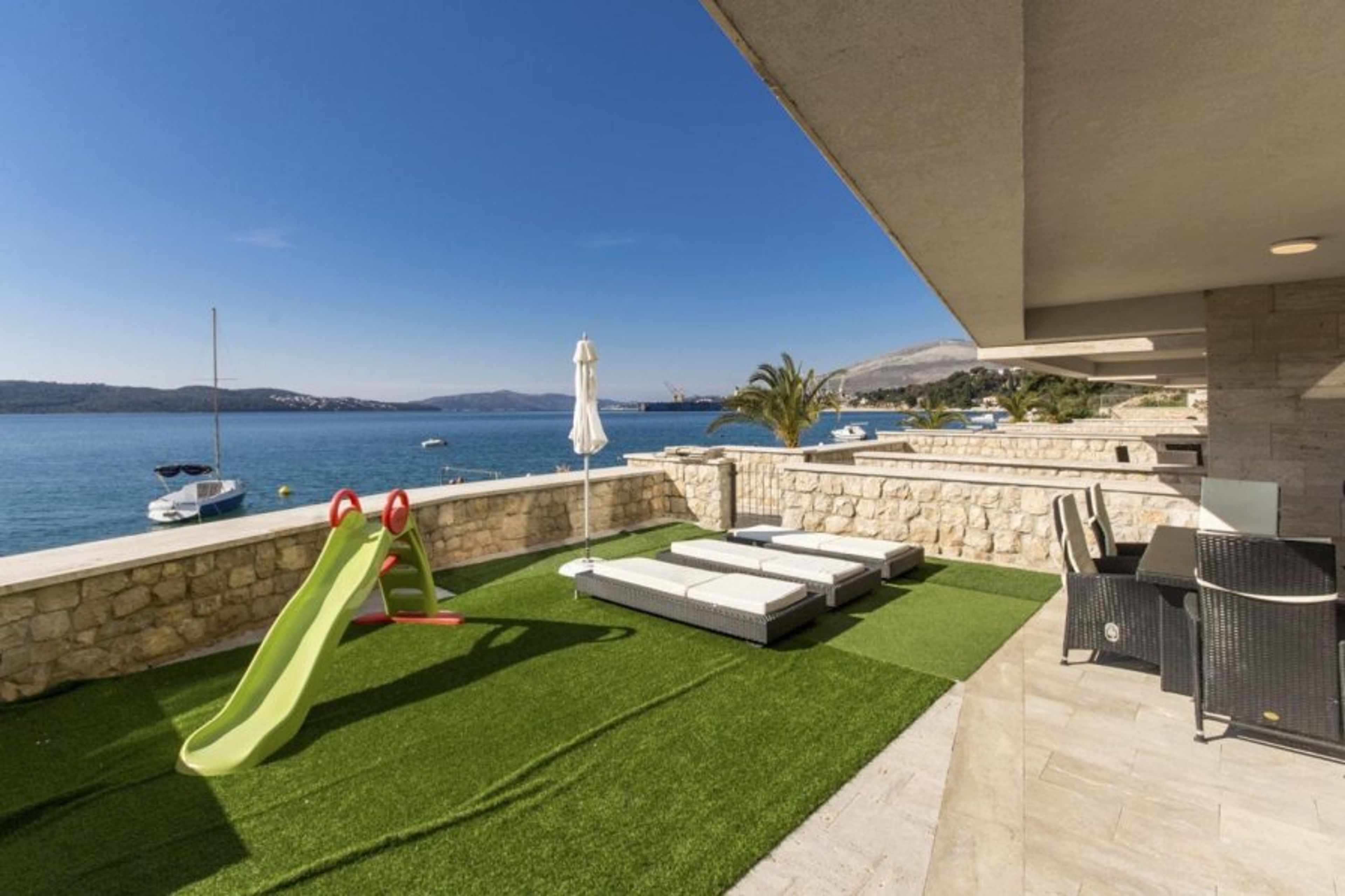 The unique location of this villa allows guests to explore the lovely island, as well as the historic port town of Trogir, which is just minutes away.