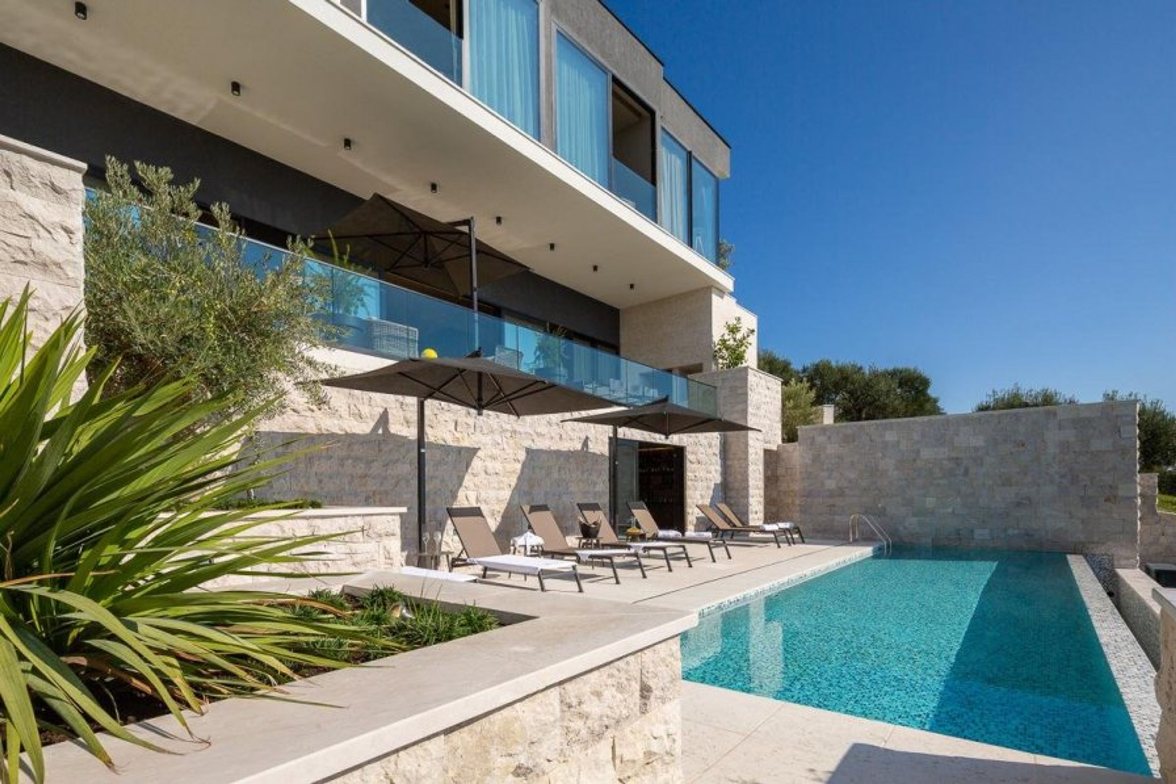 The villa overlooks the Adriatic Sea and boasts a spectacular infinity pool. There is a contemporary design throughout, with 4 bedrooms and 4 bathrooms, accommodating up to 8 guests.