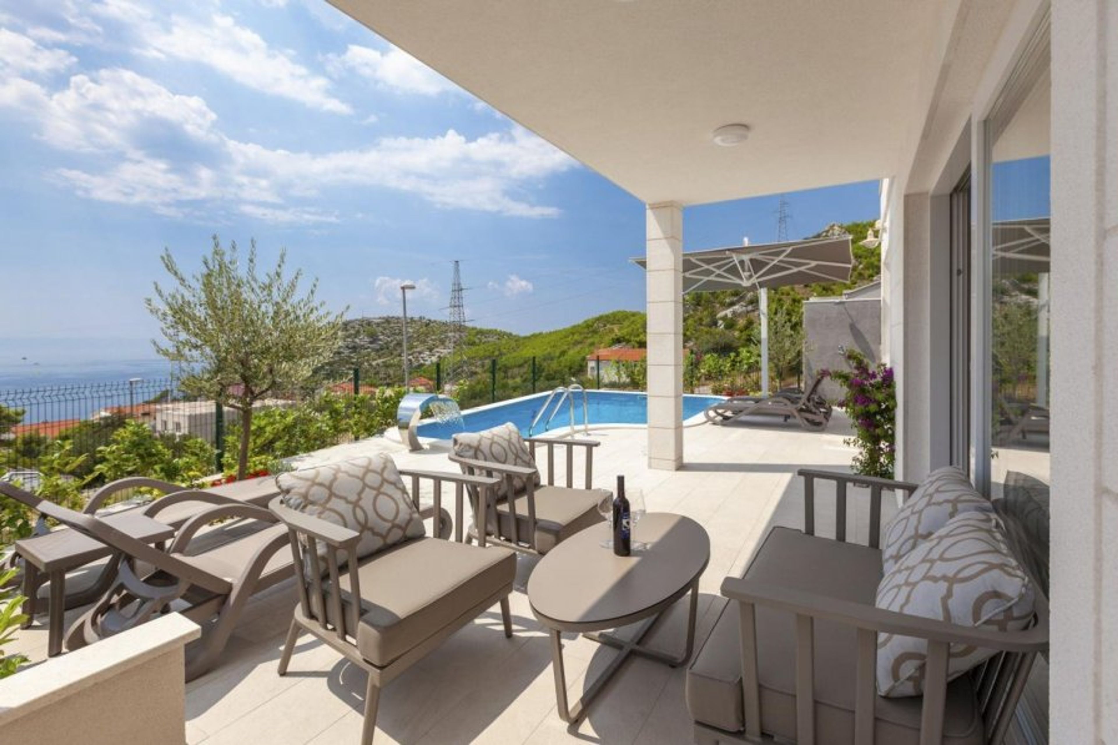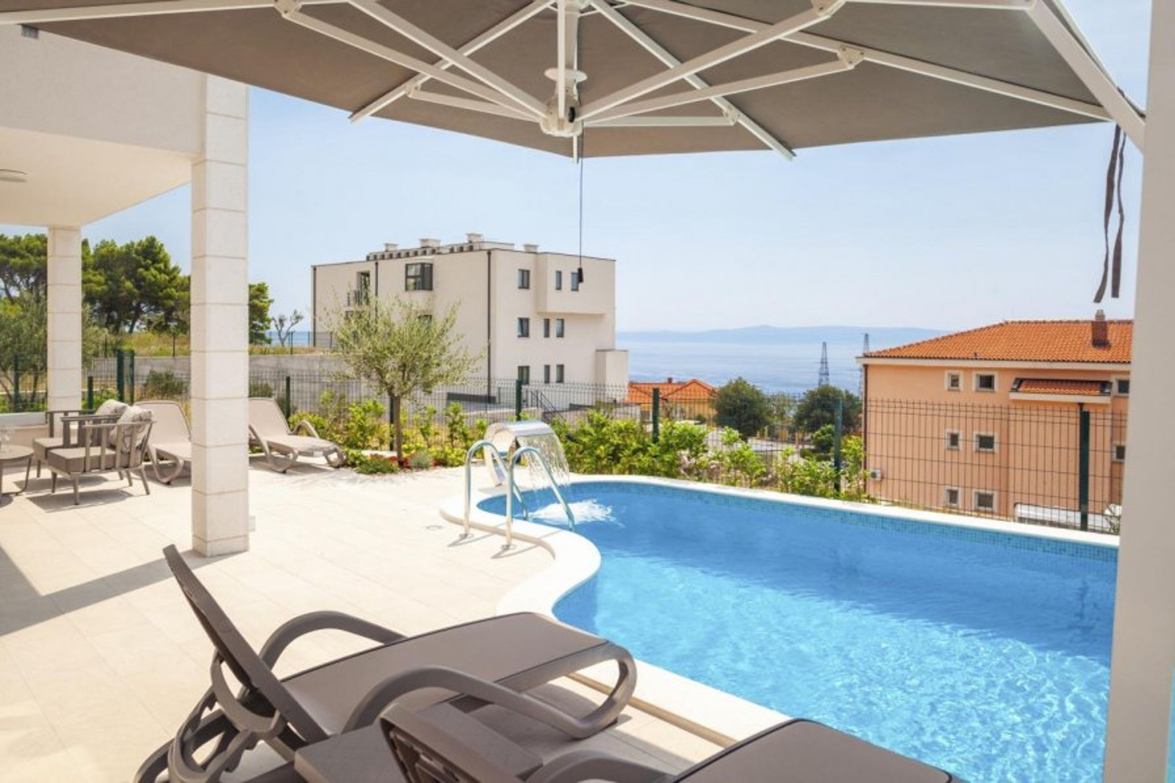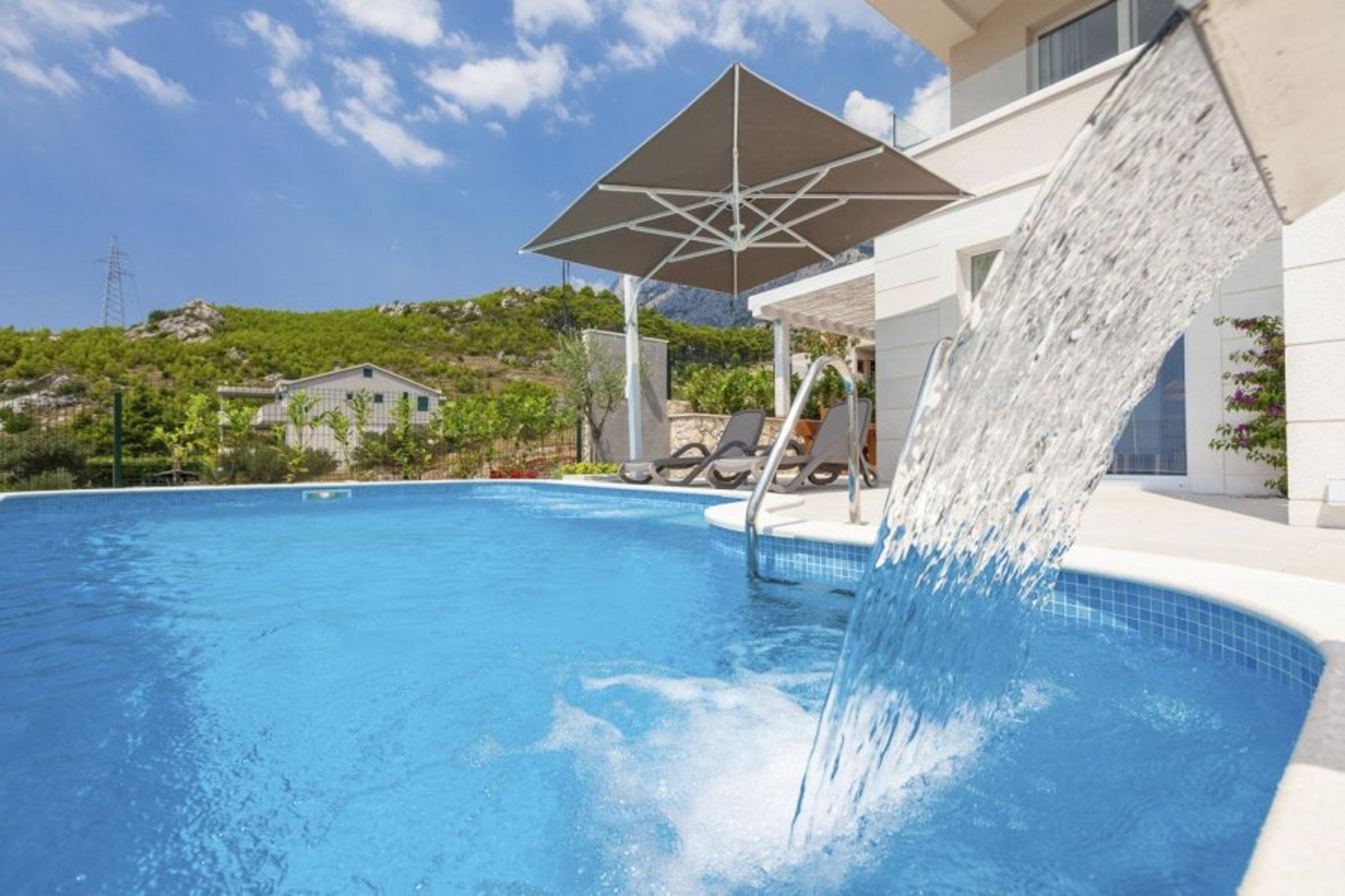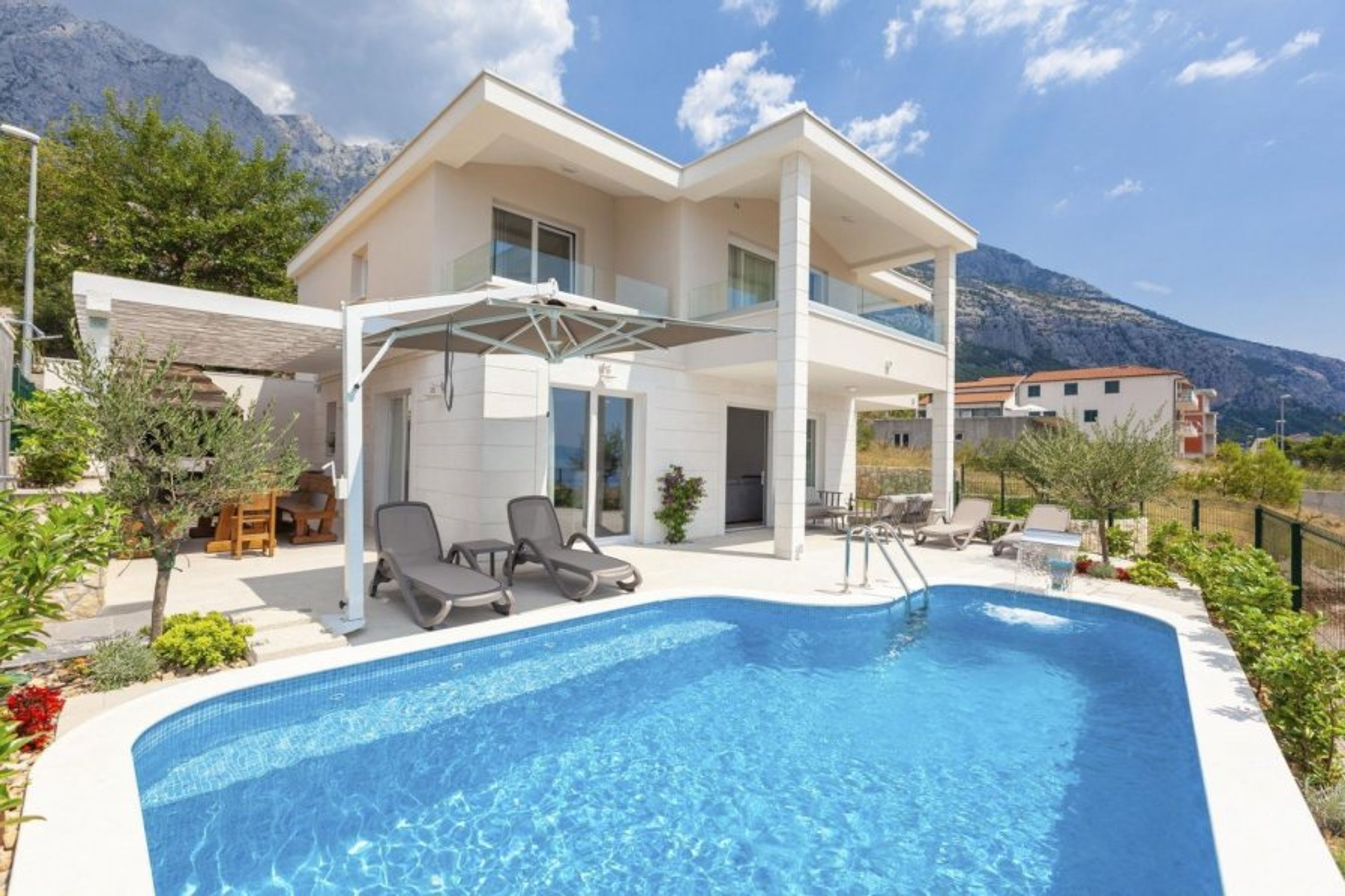 Cosmic Villas is delighted to present this beautiful, modern villa, located in the wonderful port town of Makarska, right at the foot of the Biokovo mountain.