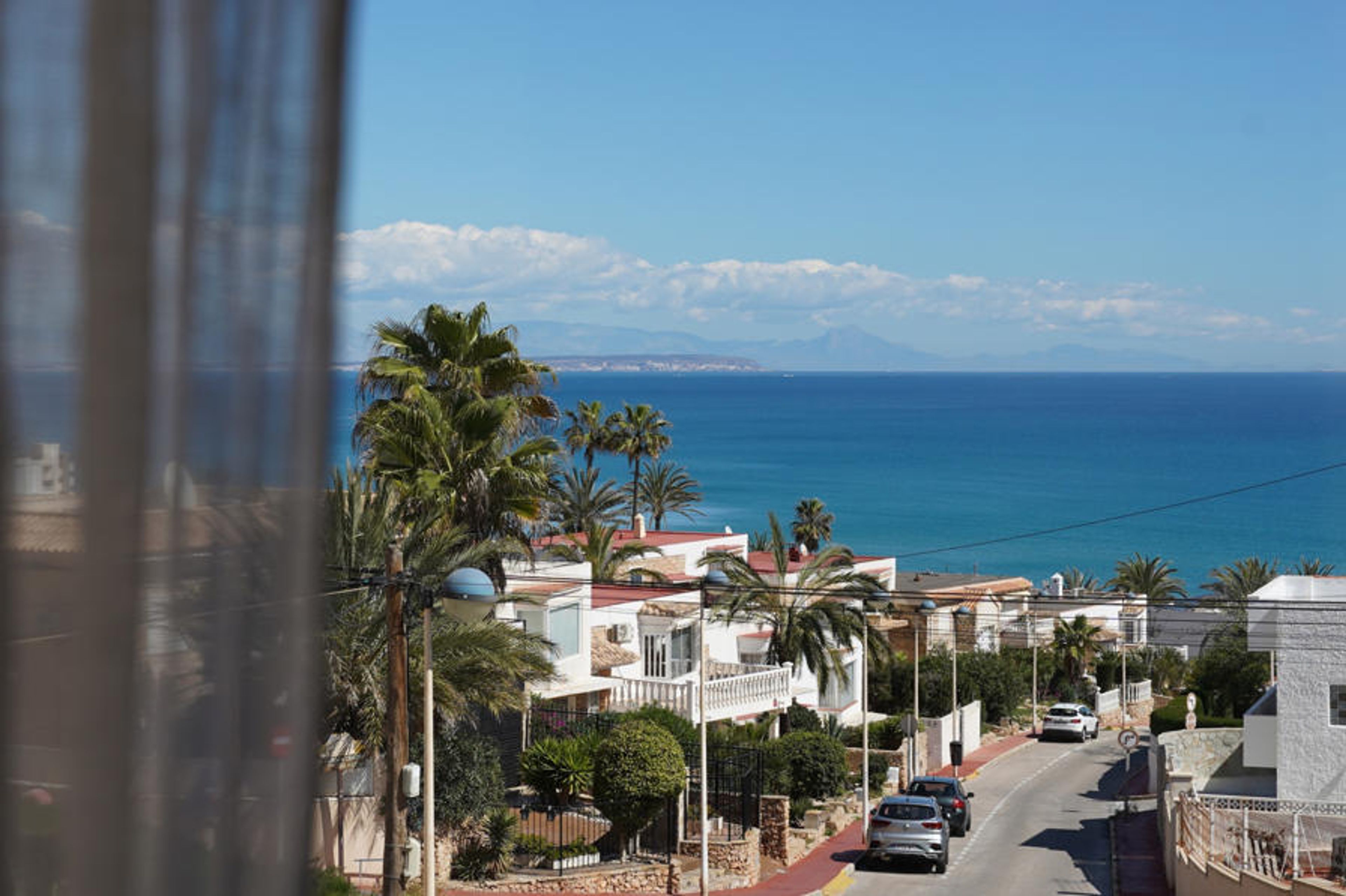 The beautiful bungalow with 2 floors and barbecue area and solarium with sea views, located in Torrevieja, in the Torrelamata neighborhood.
