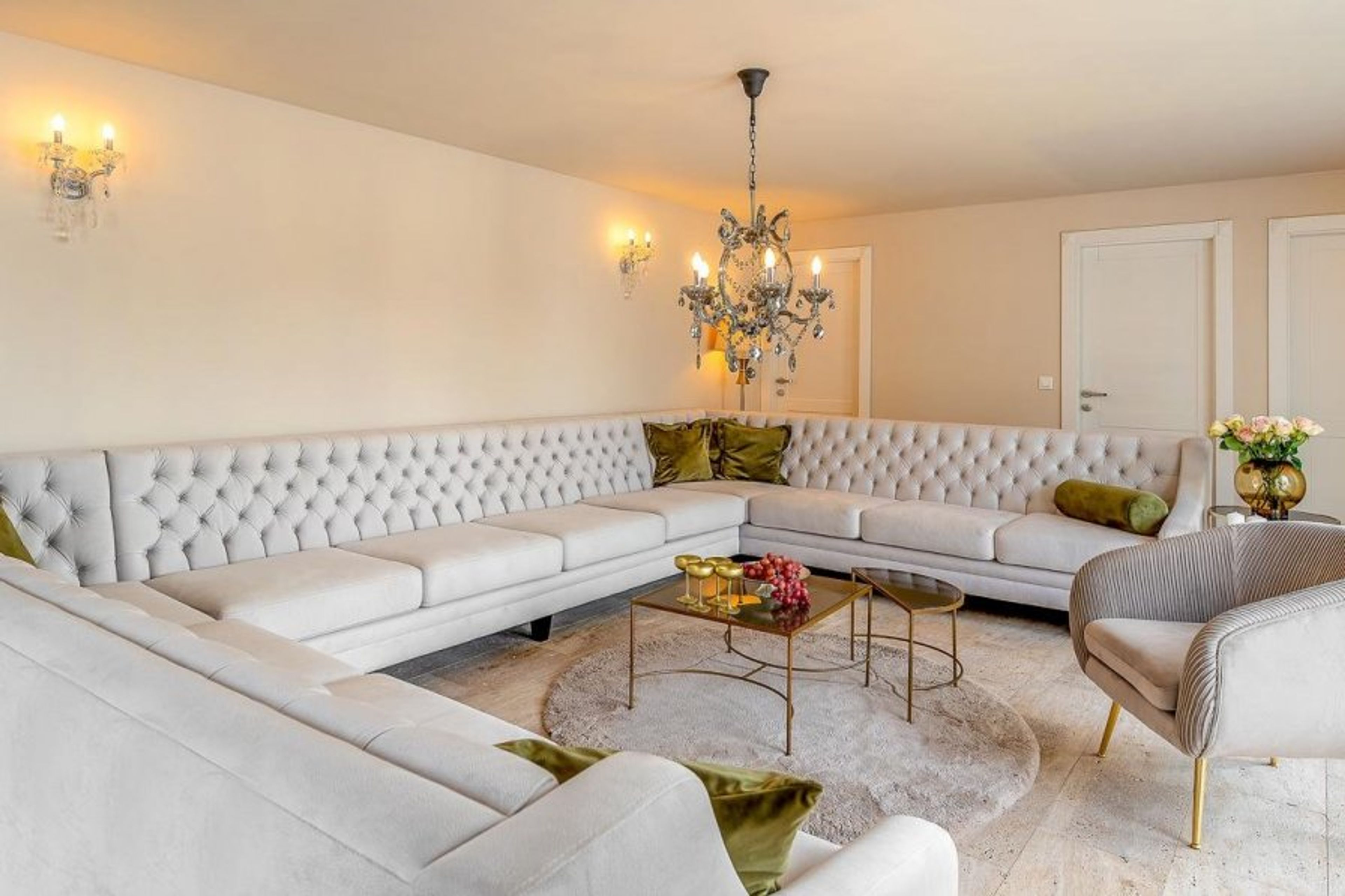 The villa was recently constructed of beige stone and features simply stunning interior-designed fixtures and fittings, most notably the numerous sparkling crystal chandeliers that adorn almost every room in the house.