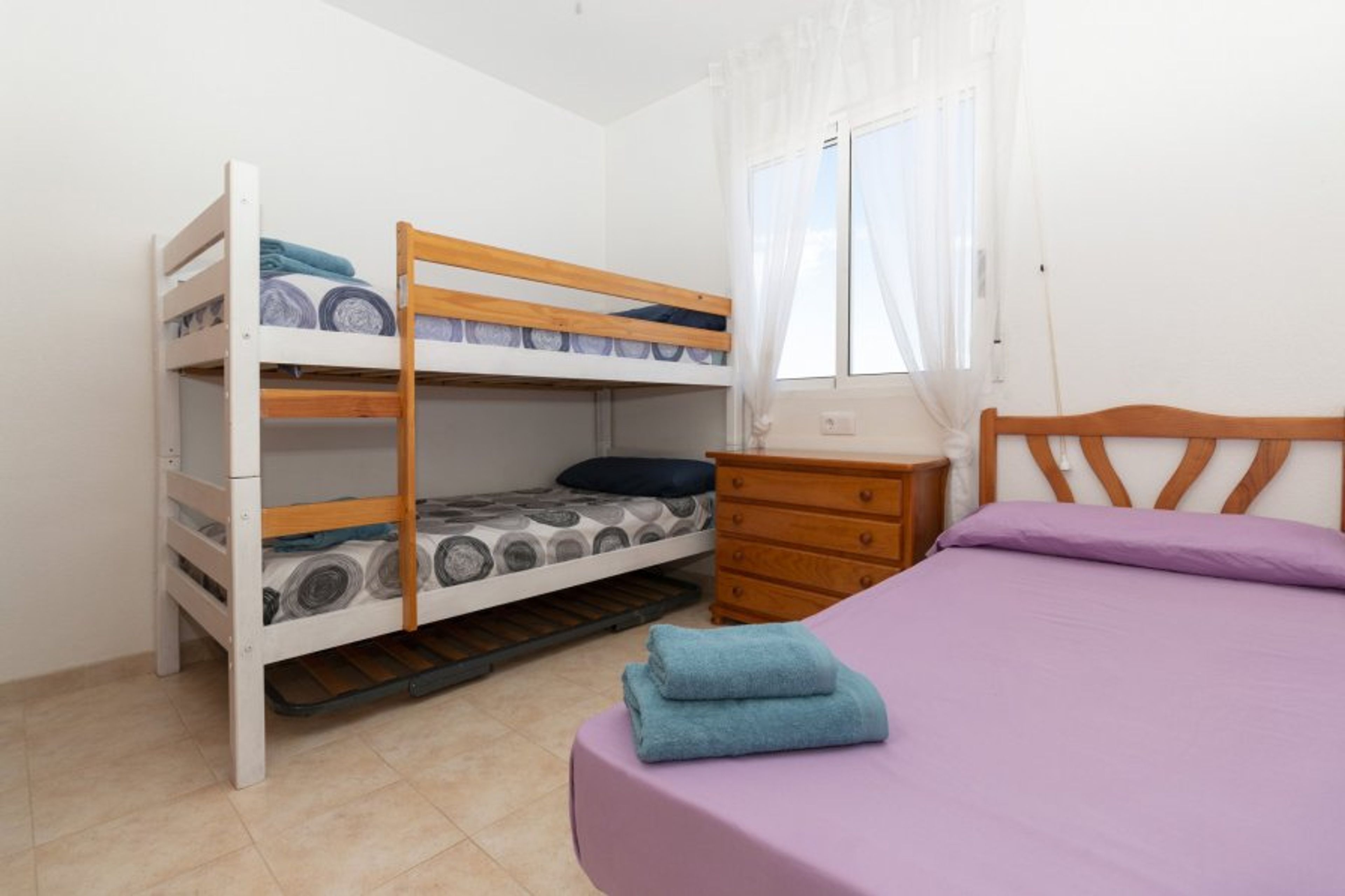 We offer you this wonderful penthouse in La Zenia that has a very nice private solarium, where you can enjoy open views and why not, a barbecue. The home has 3 bedroom(s) and capacity for 7 people (max. 6 adults). The Accommodation has 80 m², is cozy and exterior. The location is unbeatable. The property is located 100 m from Consum supermarket, 700 m from Centro comercial Zenia Boulevard supermarket, 800 m from La Zenia Beach sand beach, 850 m from Playa de Cala Capitan sand beach, 950 m from Playa de La Zenia - Cala Cerrada sand beach, 1 km from Playa Flamenca Beach sand beach, 1 km from Cabo Roig Beach sand beach, 3 km from Villamartin Plaza city, 4 km from Real Club de Golf Campoamor golf course, 6 km from Campo de golf Las Colinas golf course, 9 km from Parque Jardín de las Naciones nature reserve, 10 km from Aquopolis Torrevieja water park, 10 km from Estación de Autobuses de Torrevieja bus station, 11 km from Parque de Atracciones de Paseo, Torrevieja, Alicante amusement park / theme park, 12 km from Laguna Rosa lake, 51 km from Aeropuerto de Alicante – Elche Miguel Hernández airport, 55 km from Aeropuerto internacional Región de Murcia airport, 59 km from Estación Tren Alicante train station. The house is situated in a family-friendly neighborhood close to a shopping area and restaurants. The accommodation is equipped with the following items: garden furniture, 20 m² terraces, barbecue, iron, internet (Wi-Fi), hair dryer, air conditioning in the living room, communal+children's swimming pool, communal heated swimming pool, parking space on the street , where you can usully find quite easy a free space , 4 fans, 1 TV. In the induction independent kitchen, refrigerator, microwave, oven, freezer, washing machine, dishes/cutlery, kitchen utensils, coffee machine, toaster and kettle are provided.