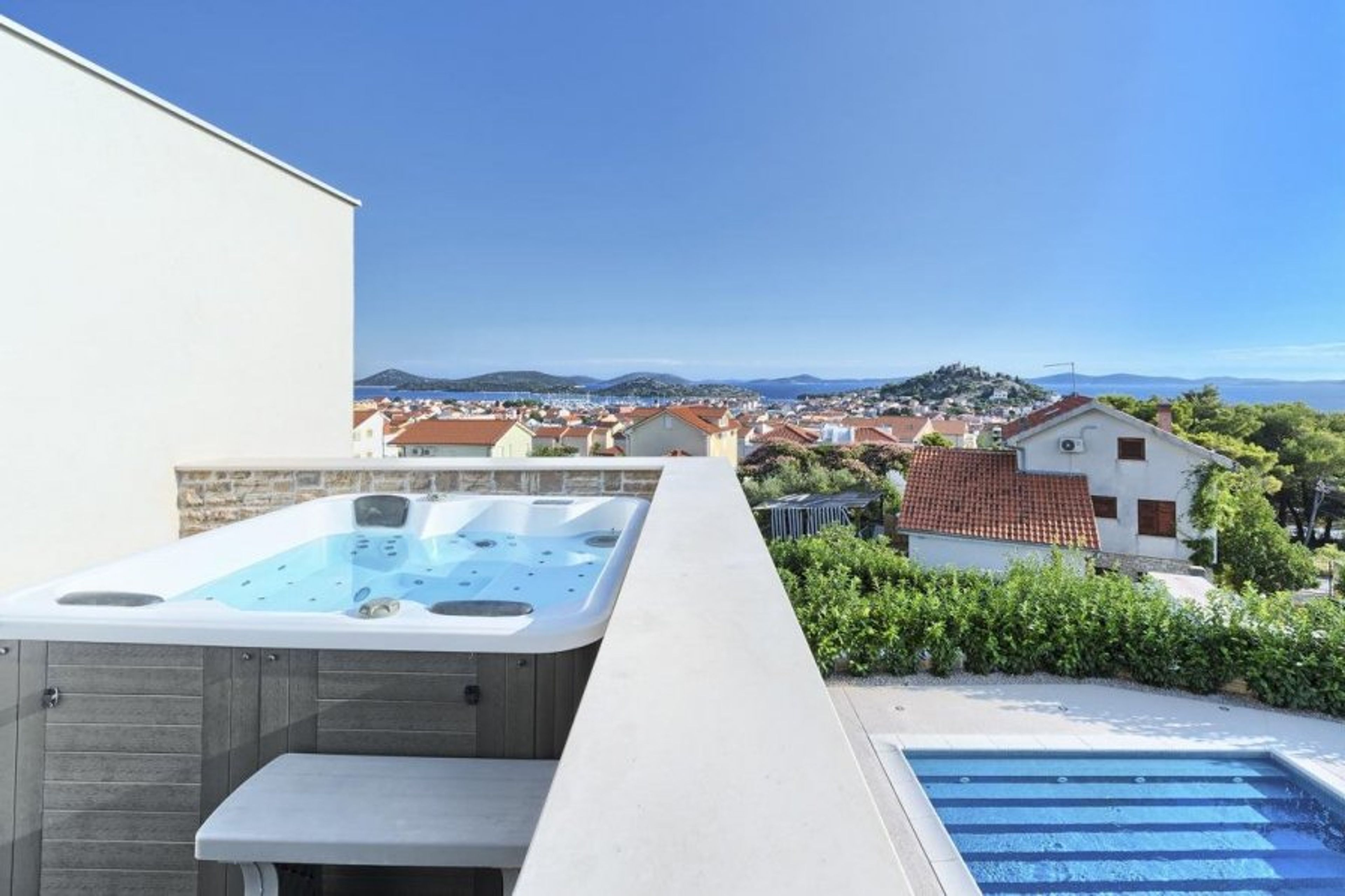 The villa is neatly nestled between the gorgeous hills of Tribunj and the Adriatic Sea.