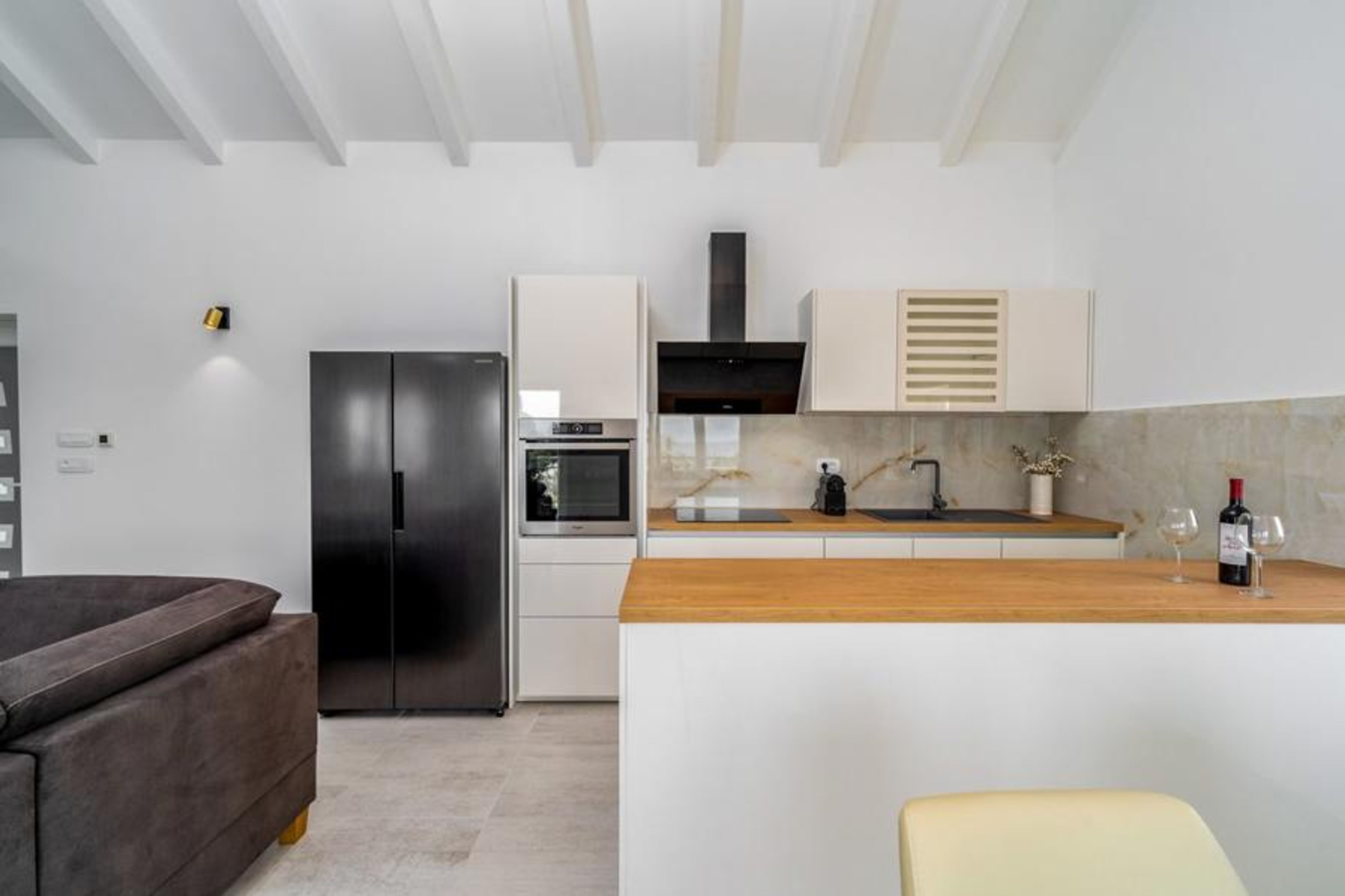 Inside, the main villa features an open-plan living space with a vaulted ceiling, a modern kitchen with high-end appliances, and a smart dining area. There are four beautifully appointed bedrooms across two levels, including a mezzanine twin room and a separate lower-ground apartment with a private entrance, ideal for grandparents or teens seeking privacy. The villa also offers two chic bathrooms and an additional toilet.