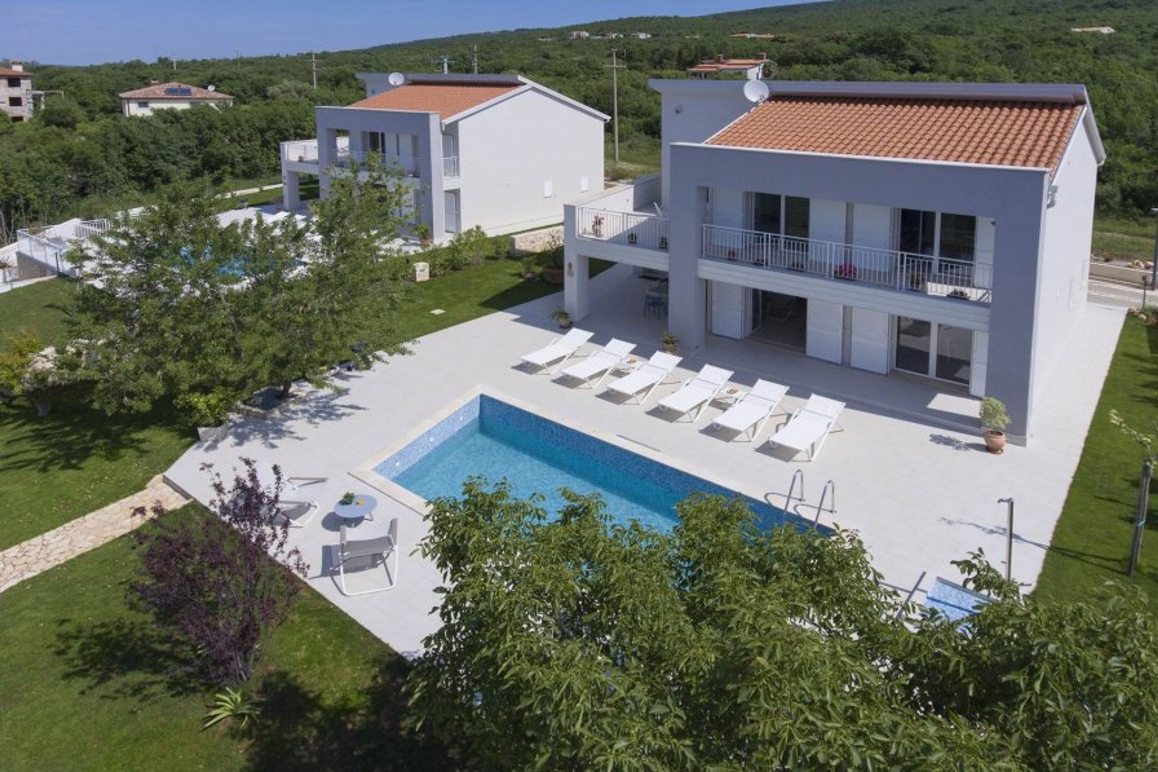 Outside is a private swimming pool with sun loungers, where you can soak up the sun after a refreshing dip or simply enjoy the panoramic views.