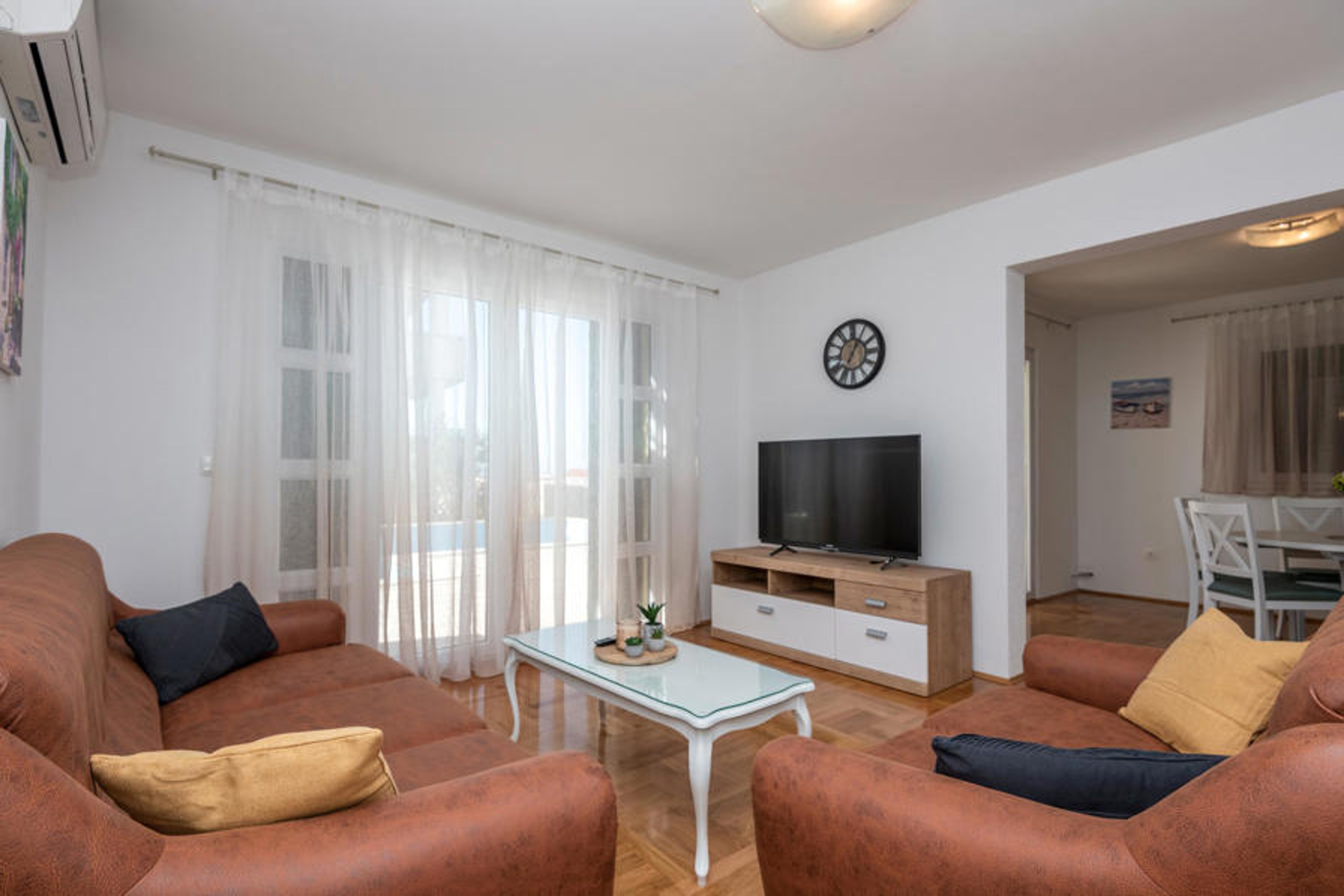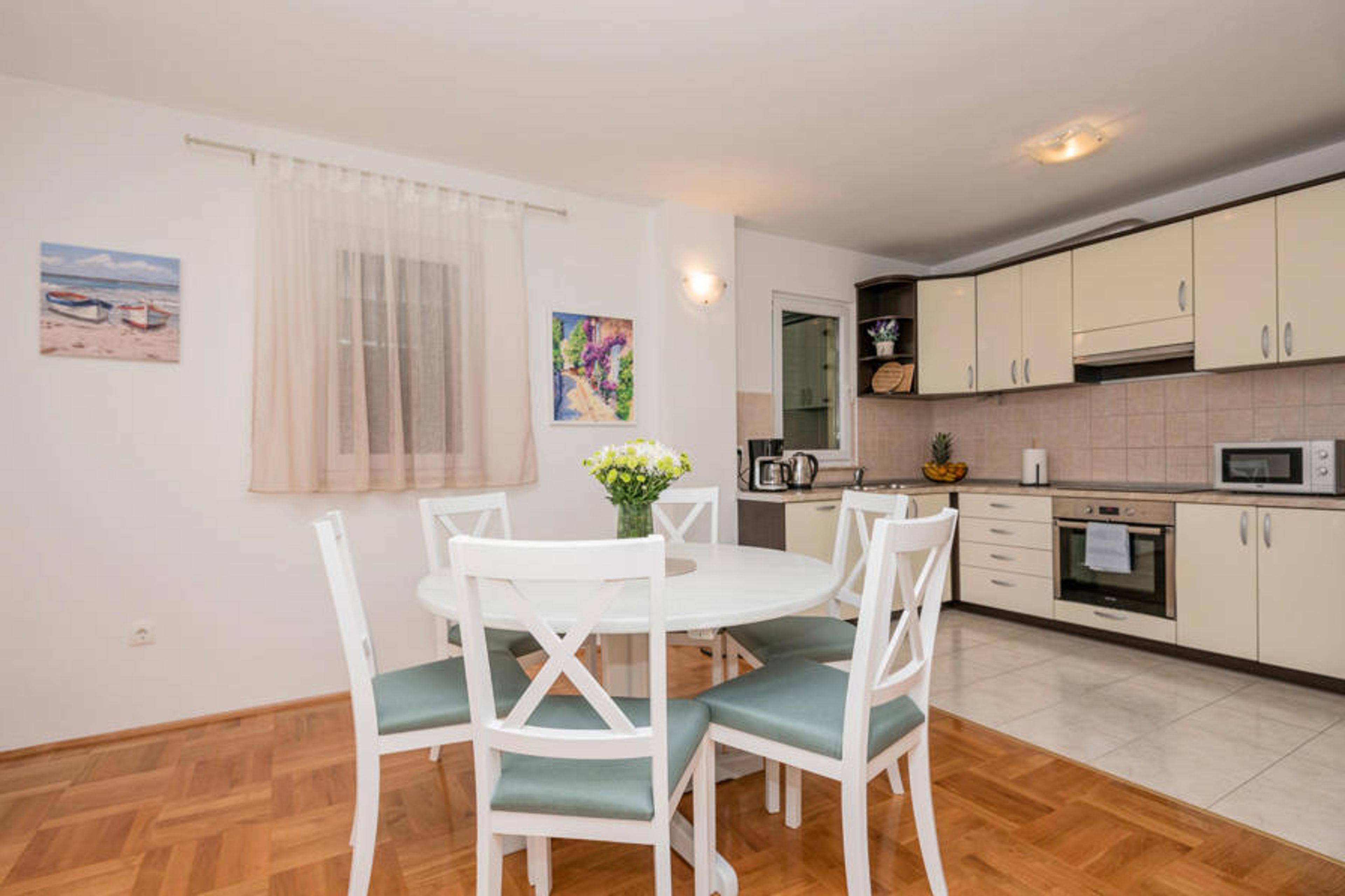 A beautiful and modern holiday home awaits you in Makarska. You will be staying on the ground floor of this beautiful house and will feel right at home in the comfortable rooms. Thanks to the bedrooms and bathrooms, you can enjoy your privacy and relax at night during your family holiday. Escape your hectic everyday life and spend your morning on the sunny terrace with a hearty breakfast. Then relax on the sun loungers and read a good book while your children play in the water.