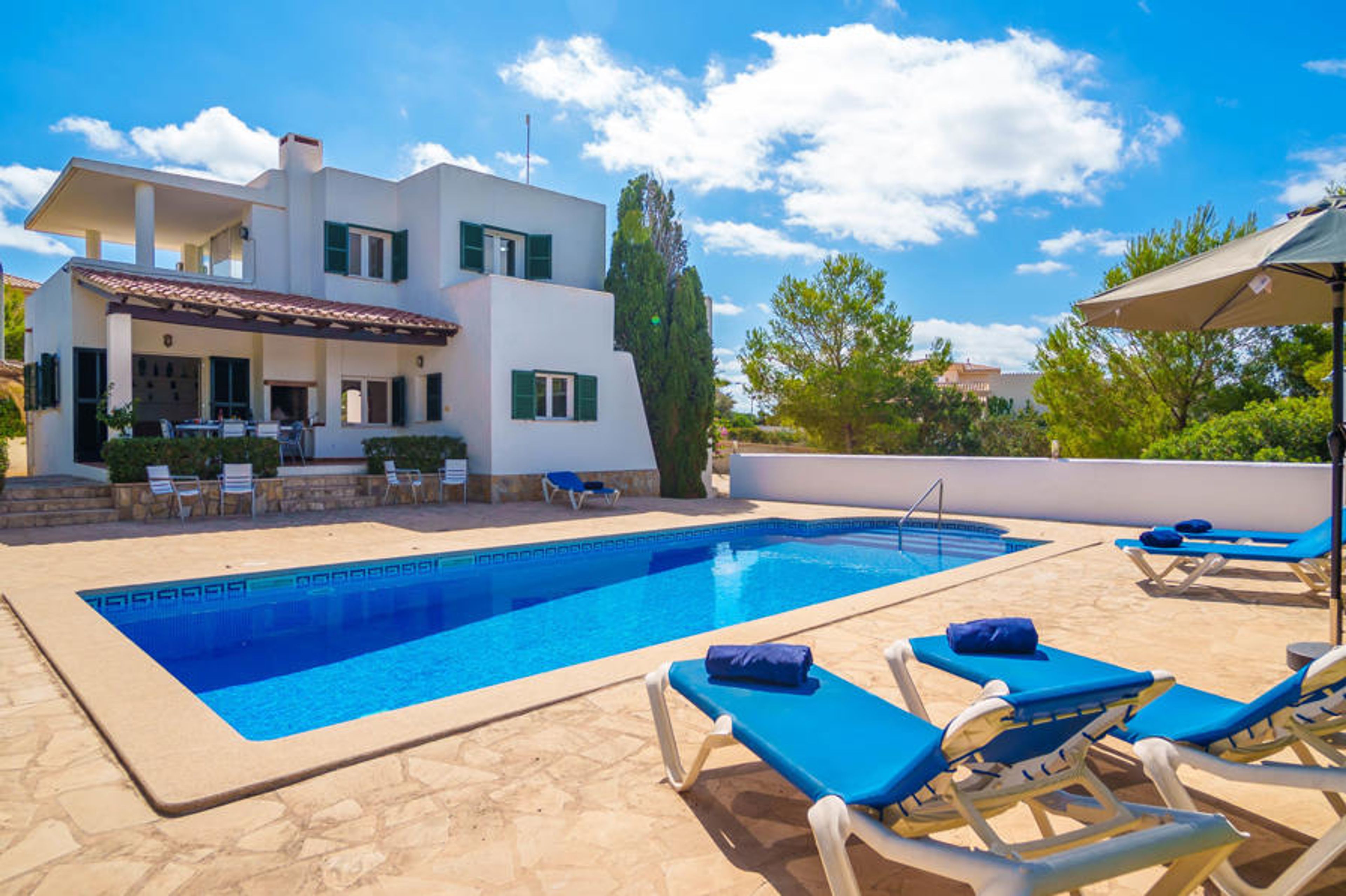 Cala Murada: Very large, beautiful villa "Murada Lisboa". In the resort, in a quiet, sunny position residential area (villas), 120 m from the sea, 500 m from the beach. Private: natural state property, natural garden, courtyard, swimming pool angular (9 x 5 m, depth 110 - 200 cm, seasonal availability: 01.Apr. - 31.Oct.). Outdoor shower, patio, arbour, pergola, garden furniture, barbecue, pool maintenance by the owner/gardener. In the house: internet access, WiFi, storage room for bicycles, air conditioning, burglar alarm system, washing machine. Parking at the house on the premises, single garage. Supermarket 2.4 km, restaurant 1.8 km, bar 1.8 km, 25 minute walk to the centre, bus stop "Platja Cala Murada (33075)" 1.7 km, sandy beach "Platja Cala Murada" 350 m, rocky beach "Cala Murada". Sports harbour 11 km, golf course (18 hole) 11 km, walking paths from the house, cycle lane 500 m. Nearby attractions: Portocolom - Cala D'Or - Portopetro, Felanitx 17 km, Rafa Nadal Museum Manacor 21 km, Cala Domingos,Cala Antena, Cala Bota 7 km, Colonia St Jordi - Es Trenc 41 km, Palma de Mallorca City 68 km. Hiking paths: Serra de Tramuntana 90 km, Ruta Cala Murada - S'Algar- Portocolom. Please note: car recommended. Object suitable for 8 adults. The owner does not accept any youth groups. Airfield 63 km from the property. Neighbourhood highly sensitive to noise. Quietness and good behaviour expected.